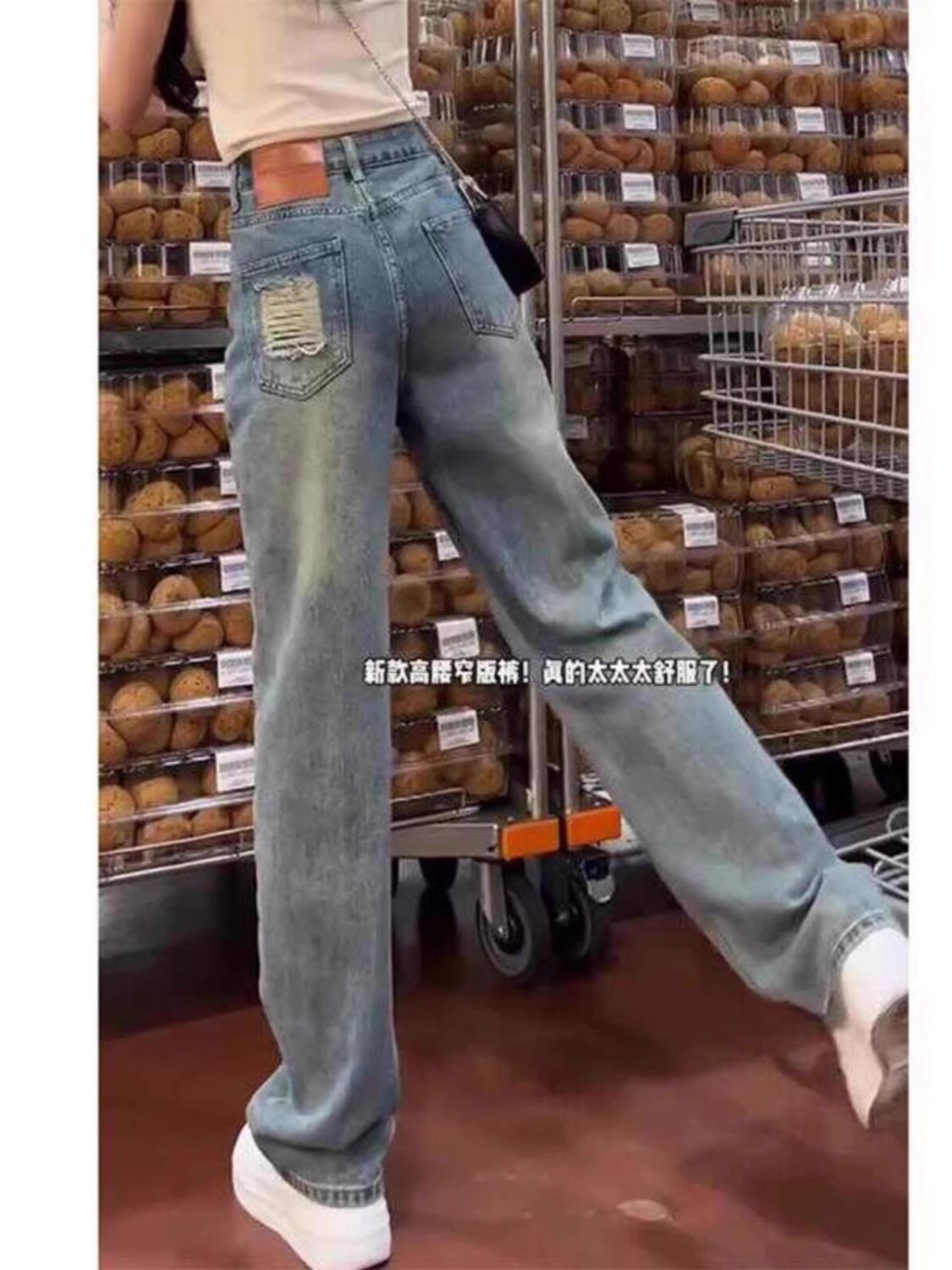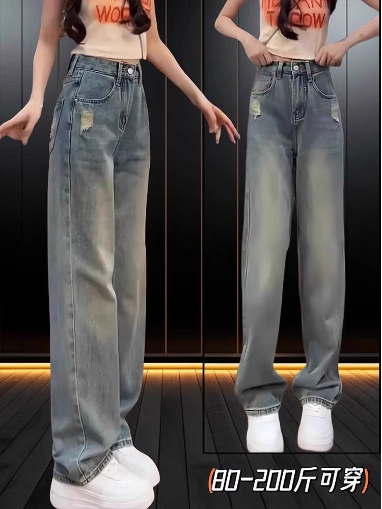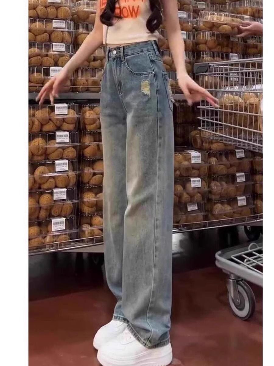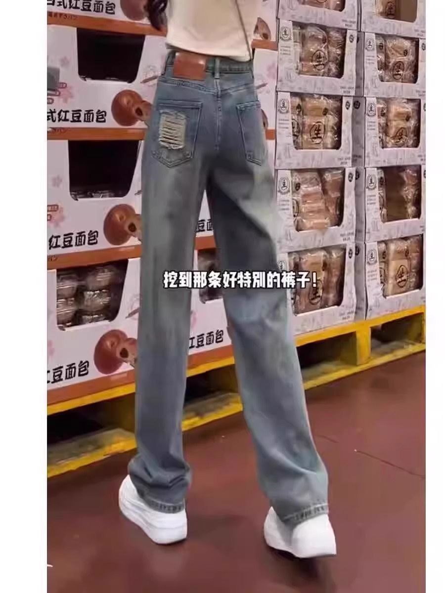 좁은 직선 다리 청바지 여성의 봄 2025 높은 허리 새로운 패션 느슨한 슬리밍 작은 넓은 다리 바지스토어 가기
