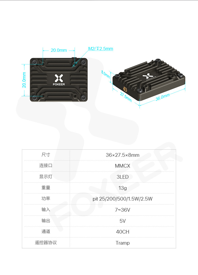 FOXEER 5.8G 2.5w FPV 고출력 40CH 장거리 비행 Pit mmcx