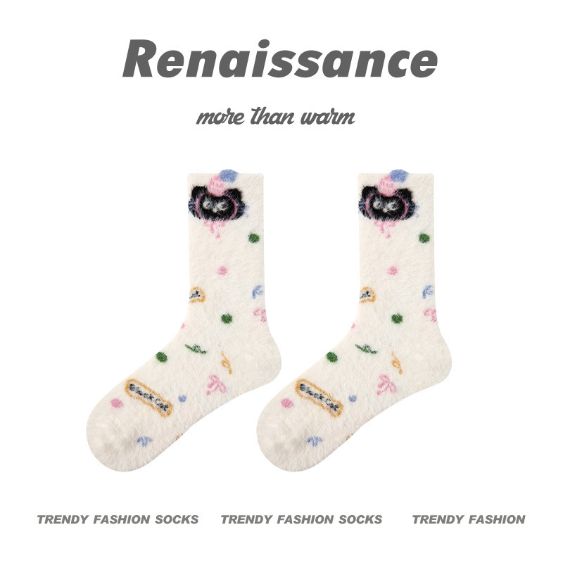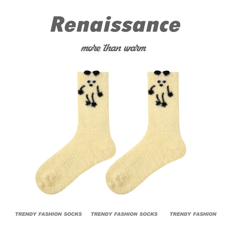 르네상스 오리지널 기모 가을과 겨울 올매치 Ins 트렌디 한 모방 밍크 스크럽 어린이를위한 강아지 중간 길이 양말스토어 가기