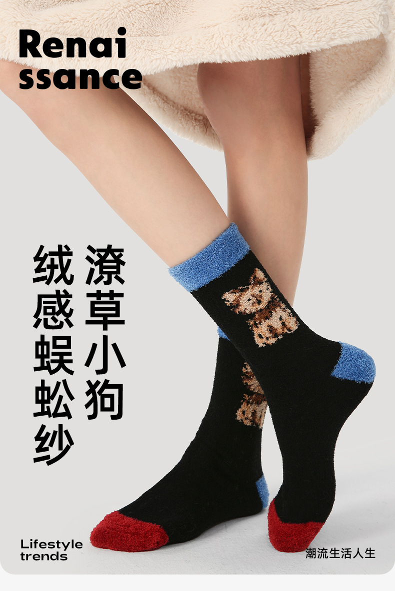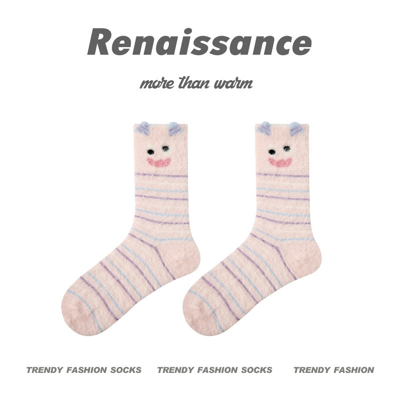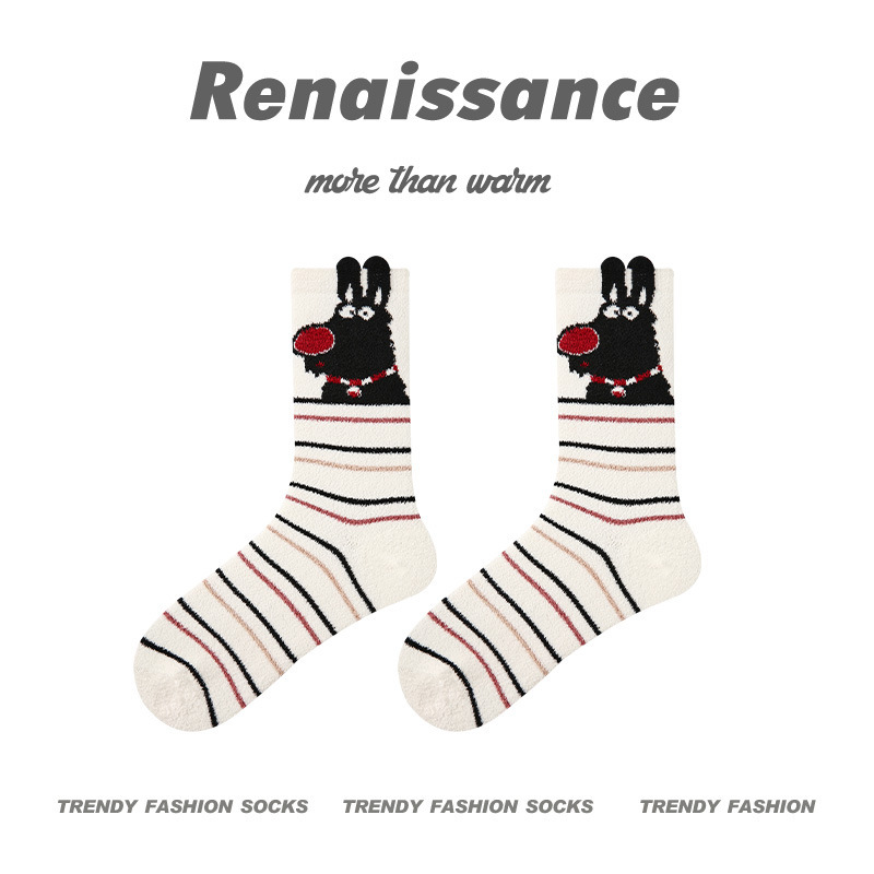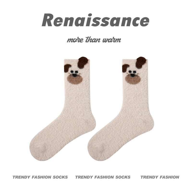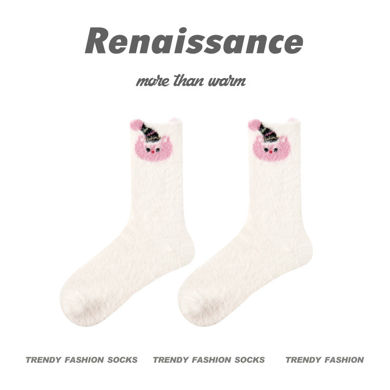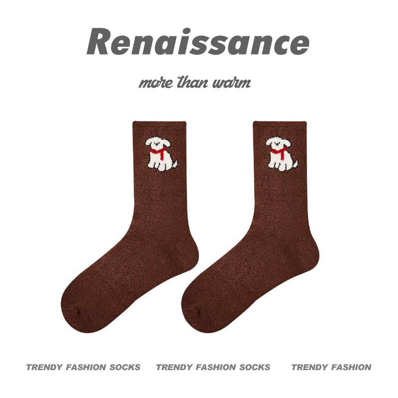 르네상스 오리지널 기모 가을과 겨울 올매치 Ins 트렌디 한 모방 밍크 스크럽 어린이를위한 강아지 중간 길이 양말