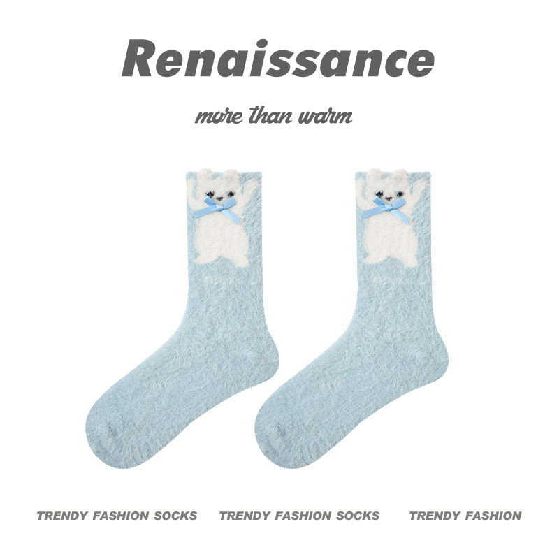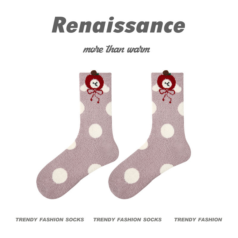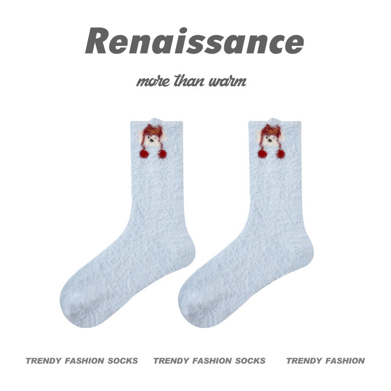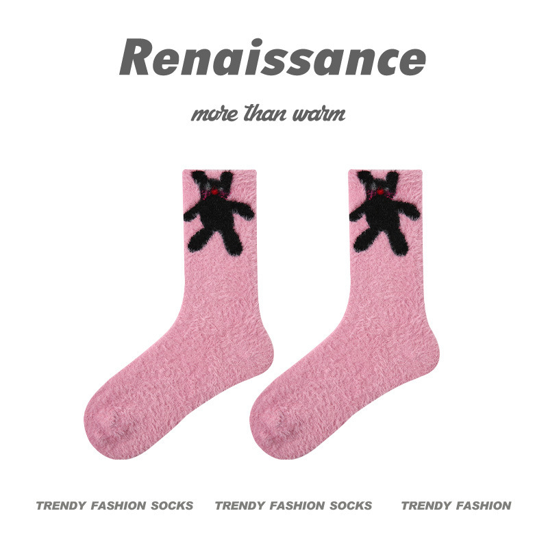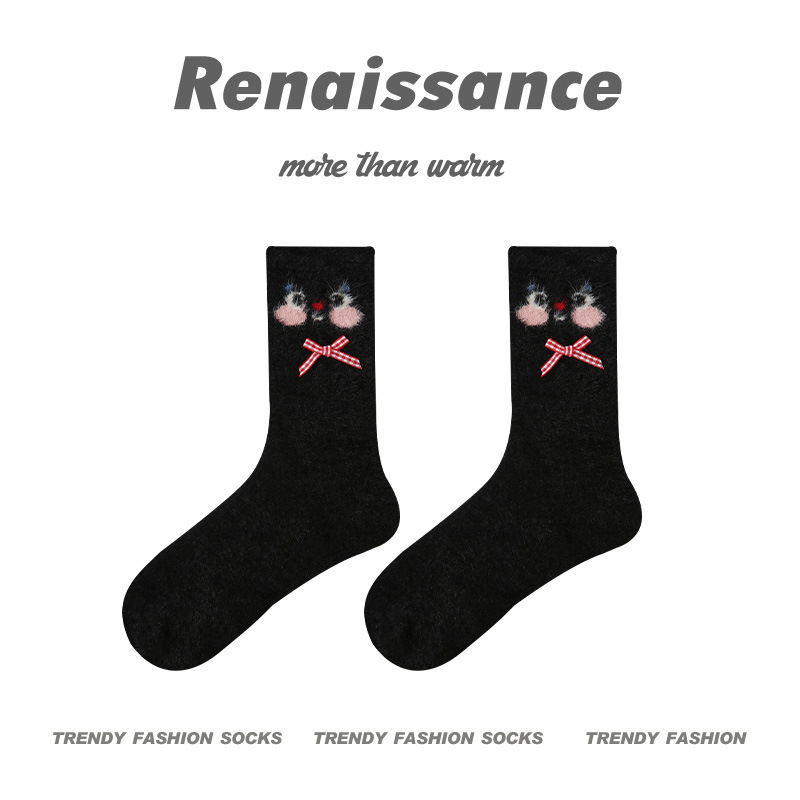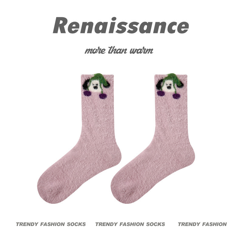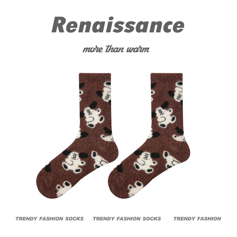 르네상스 오리지널 기모 가을과 겨울 올매치 Ins 트렌디 한 모방 밍크 스크럽 어린이를위한 강아지 중간 길이 양말