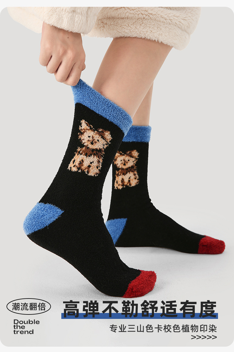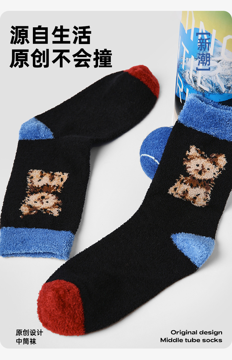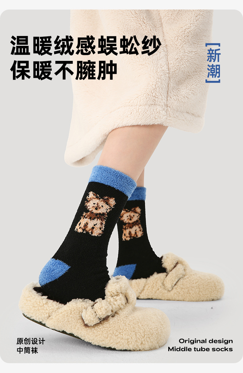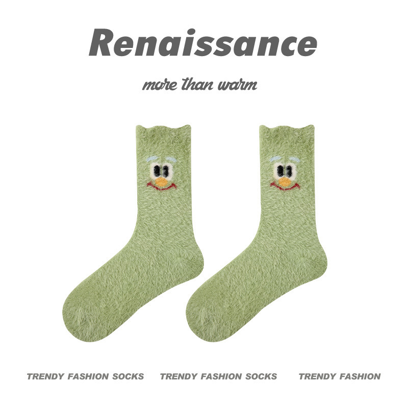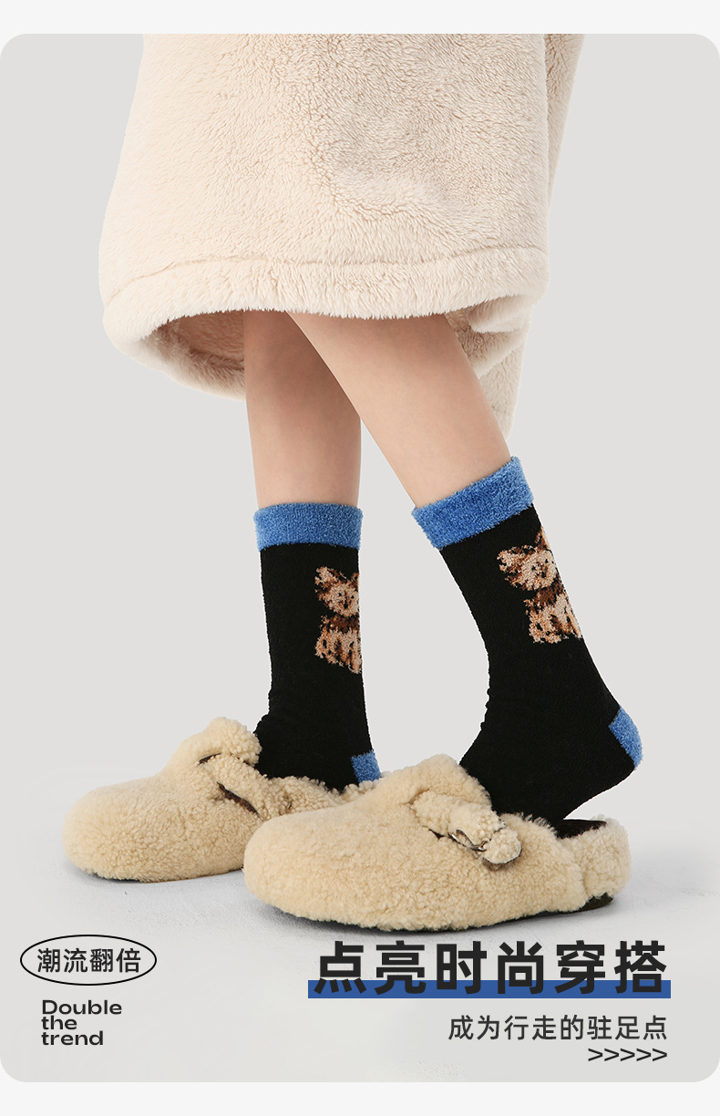 르네상스 오리지널 기모 가을과 겨울 올매치 Ins 트렌디 한 모방 밍크 스크럽 어린이를위한 강아지 중간 길이 양말