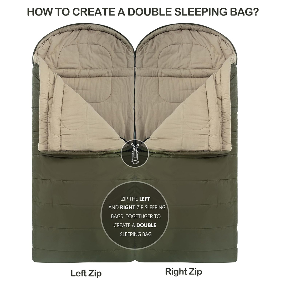 공장 아마존 핫코튼 라이닝 방수 성인 야외 침낭은 서로 피부 친화적 인 부드러운 캠핑 등산과 일치 할 수 있습니다.
