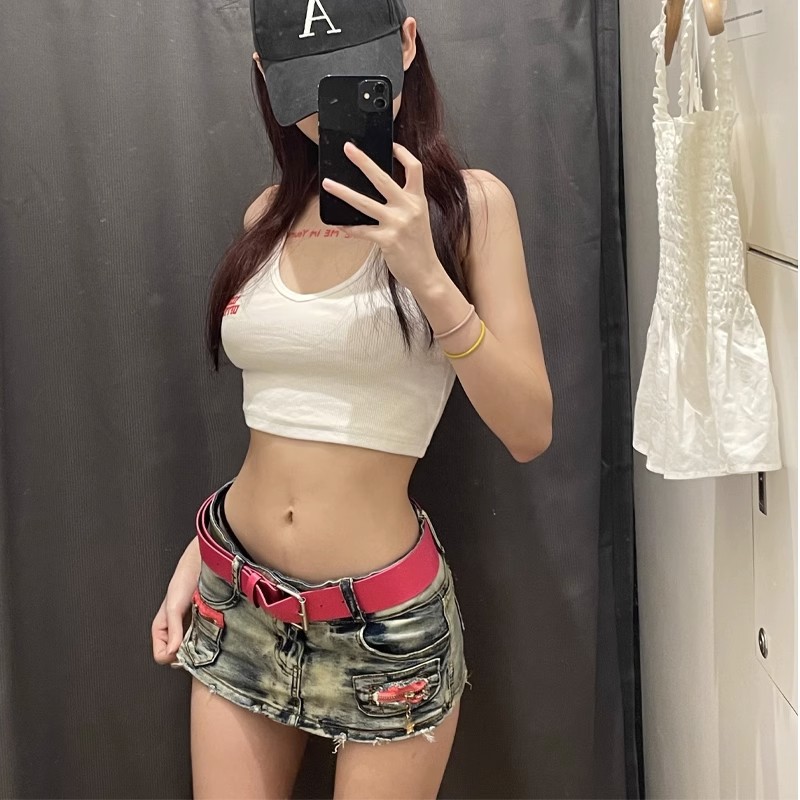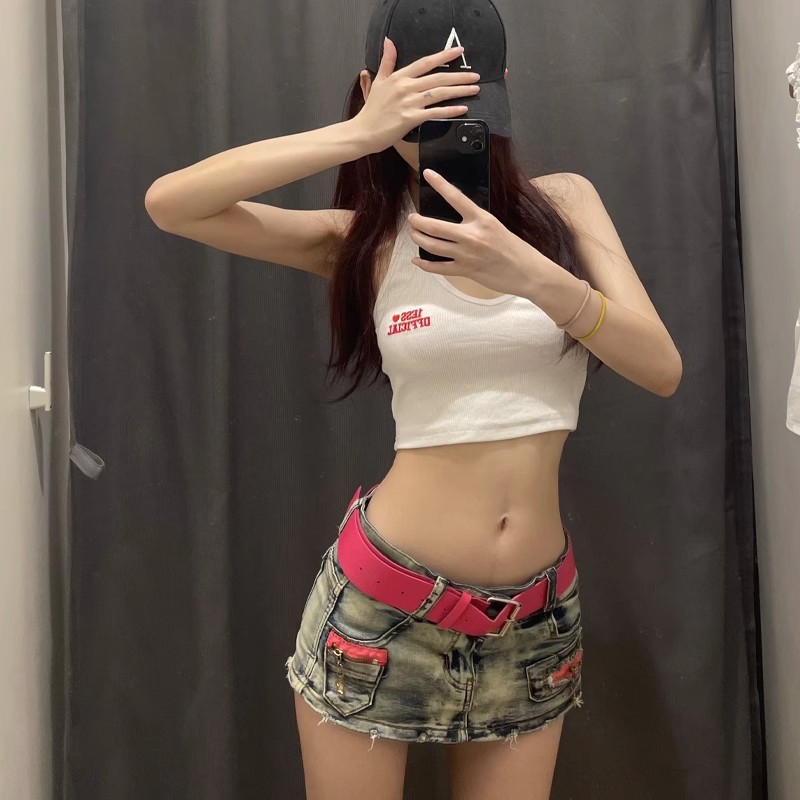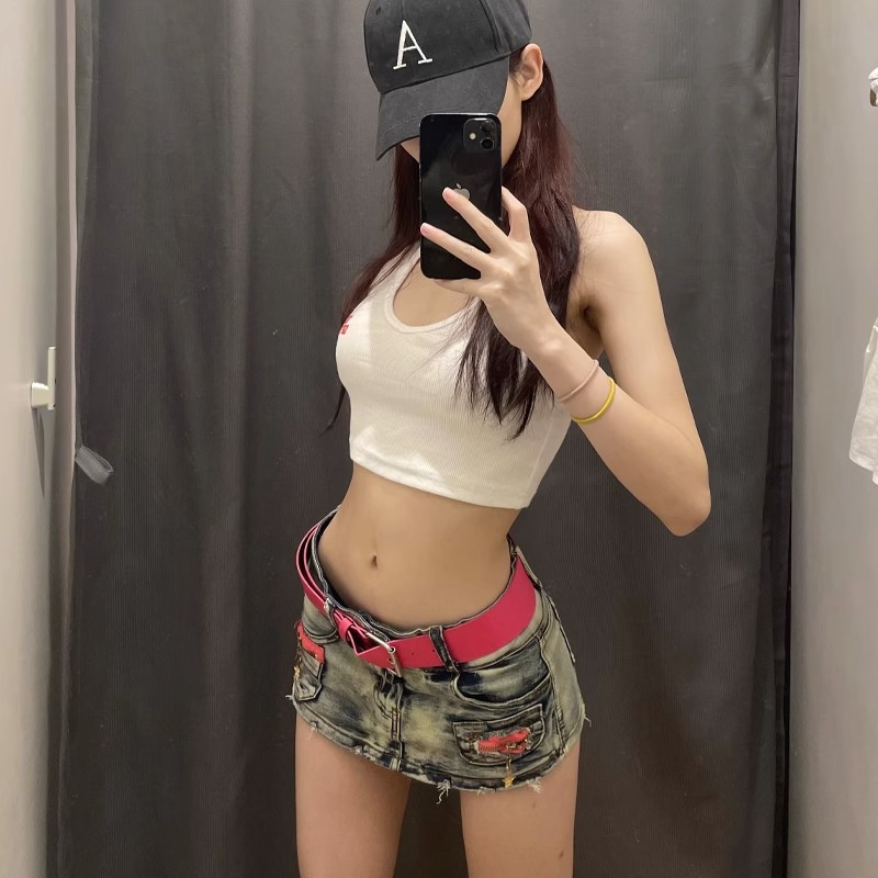 미국 스타일 하이 스트리트 스파이스 소녀 y2k 낮은 허리 데님 짧은 치마 여성 세척 오래 된 슬림 핏 안티 워킹 힙합 스커트 바지스토어 가기