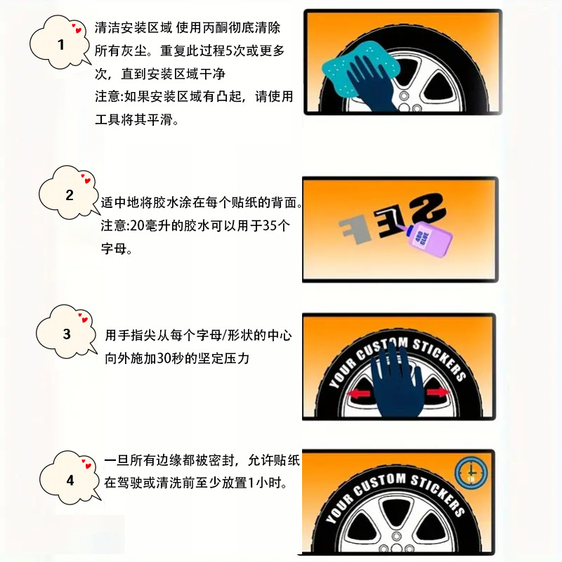 국경 간 소스 PVC 자동차 4 륜 타이어 편지 스티커 DIY 타이어 수정 결합 타이어 스티커스토어 가기
