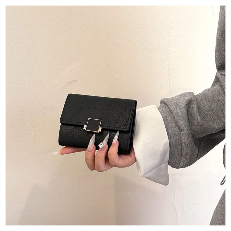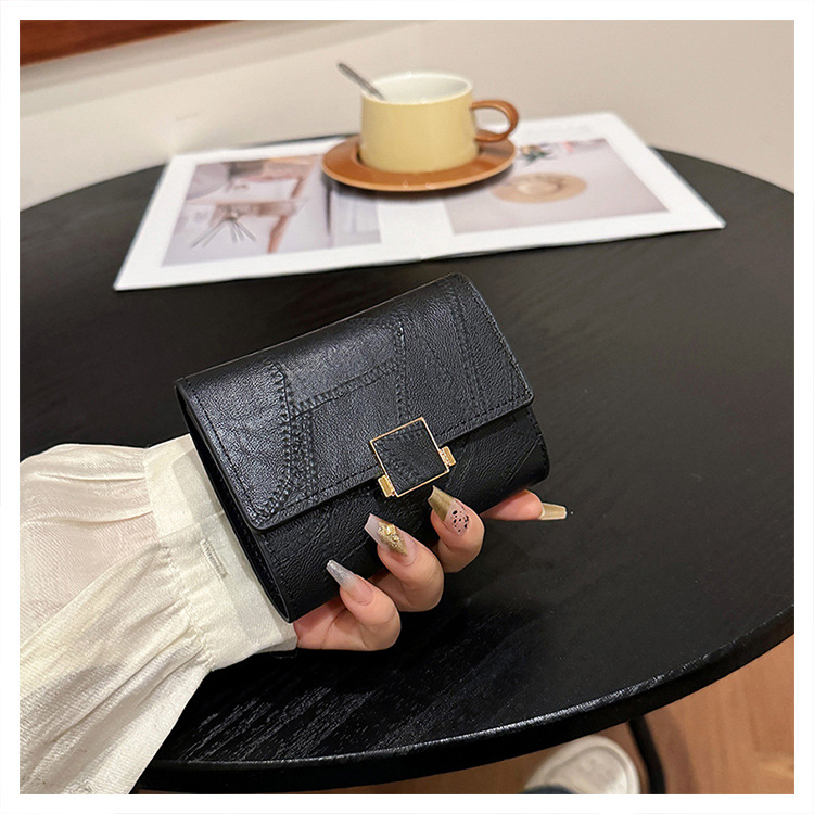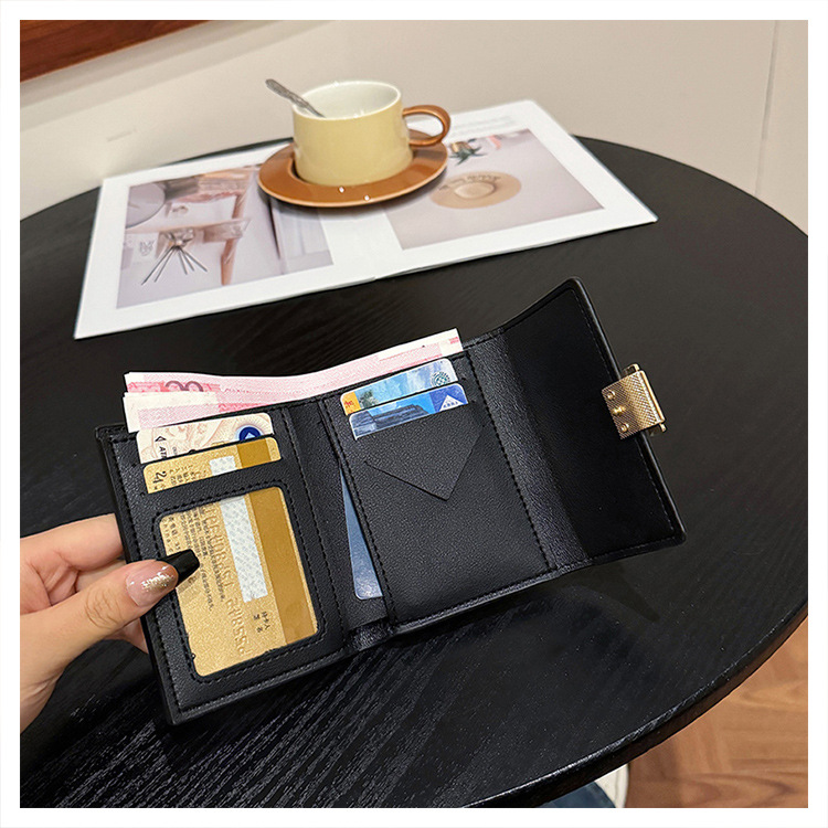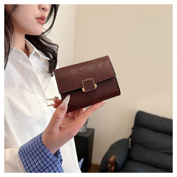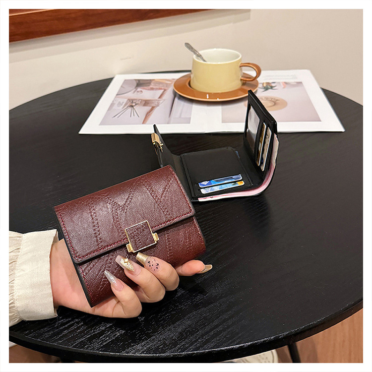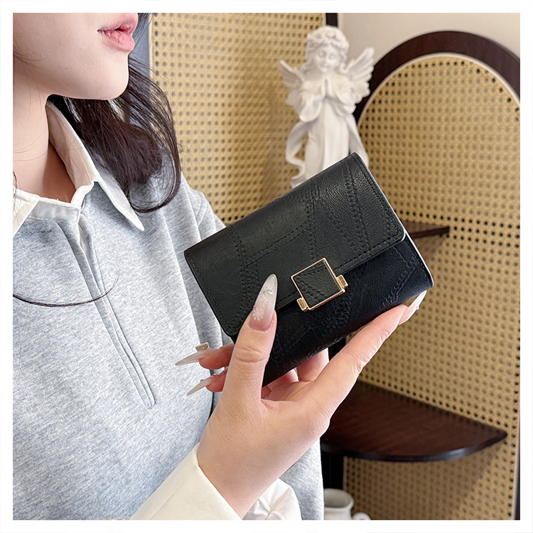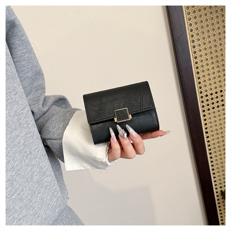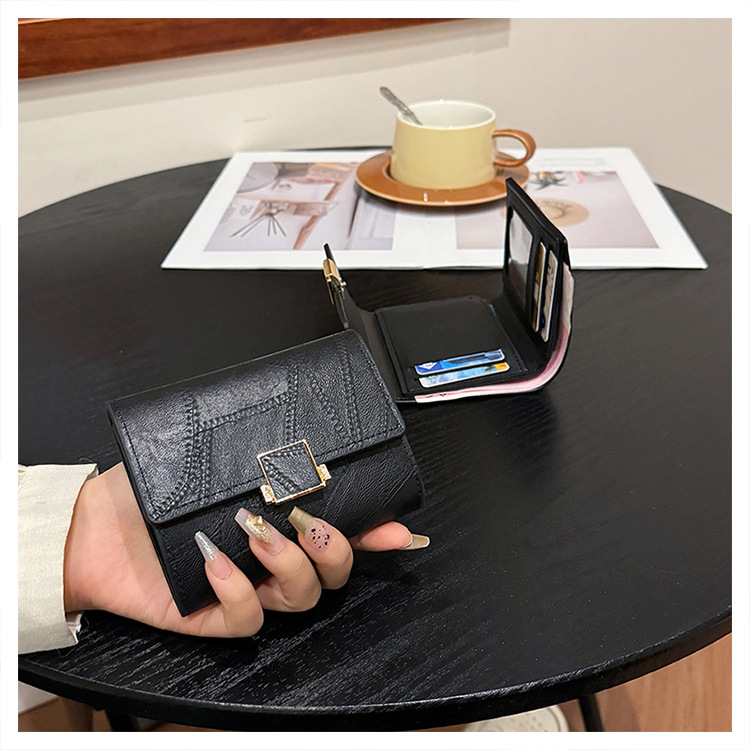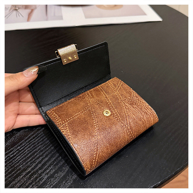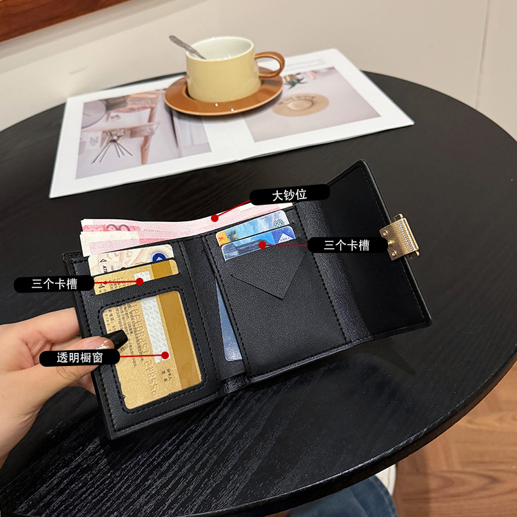 Ins 스타일 지갑 여성의 짧은 2025 새로운 유럽과 미국 스타일 작은 샤넬 스타일 바느질 얇은 접이식 멀티 카드 지갑 카드 가방스토어 가기