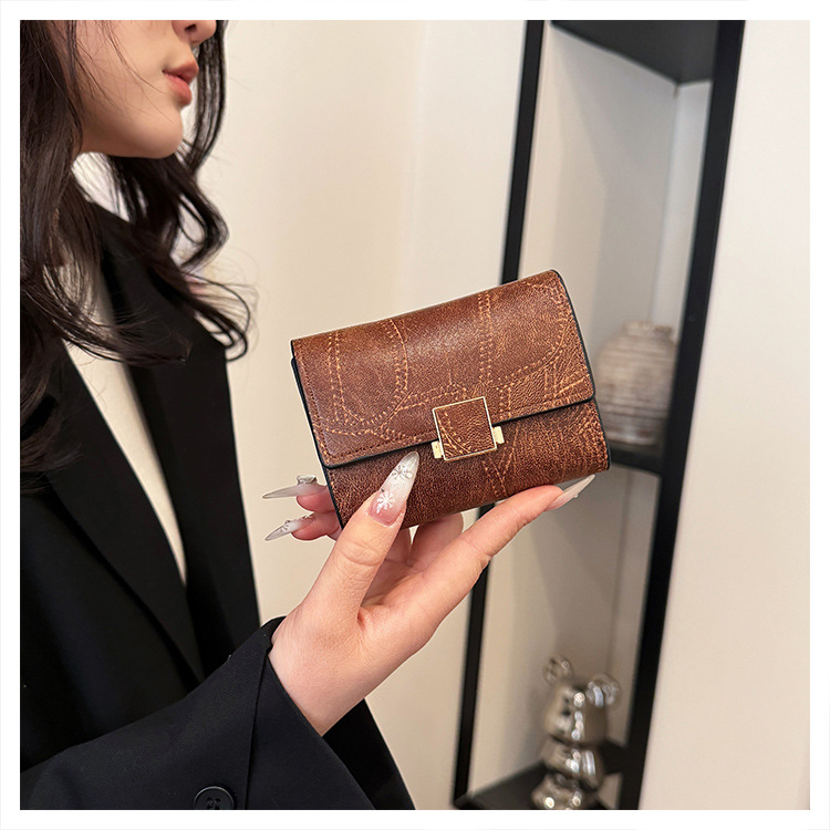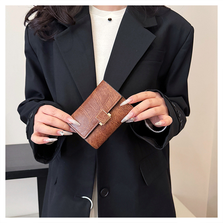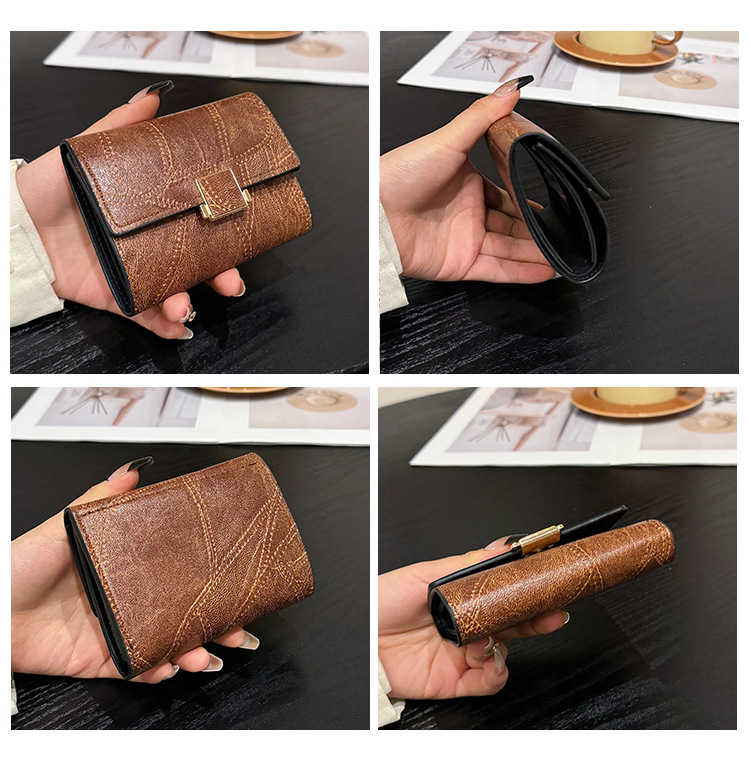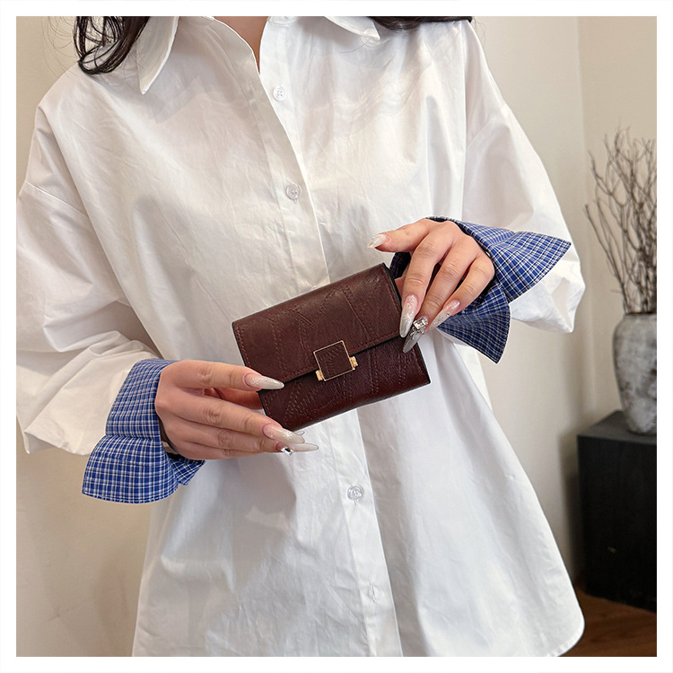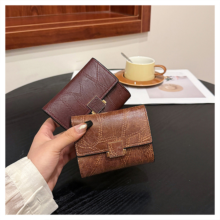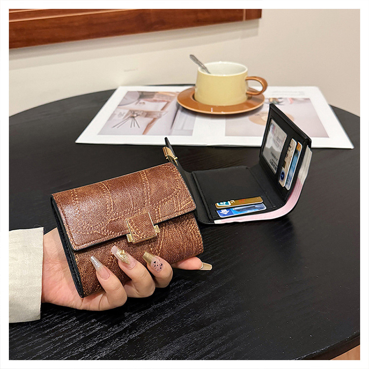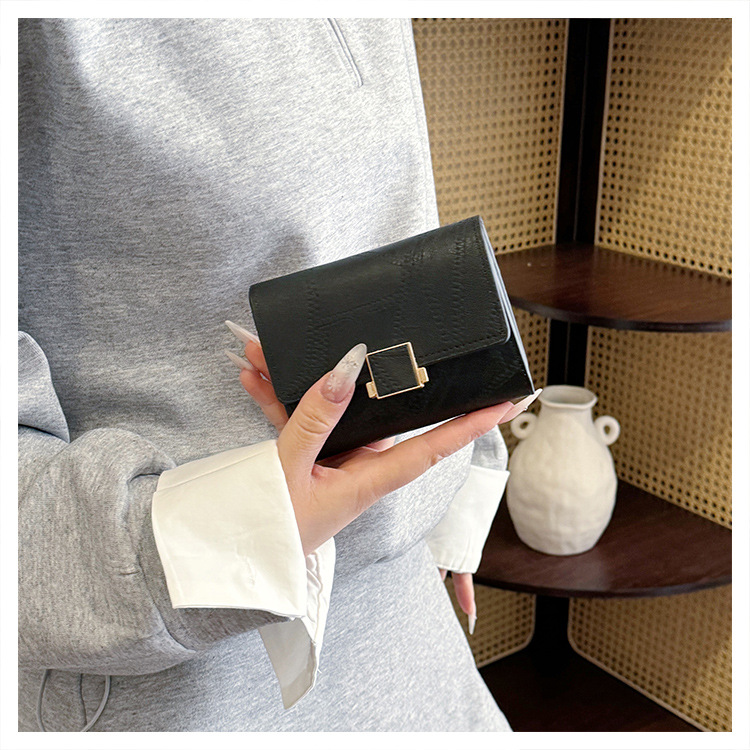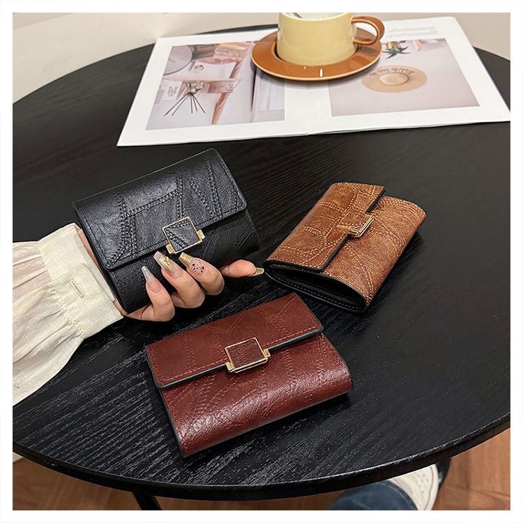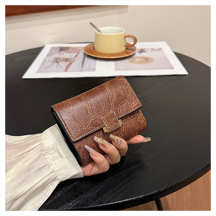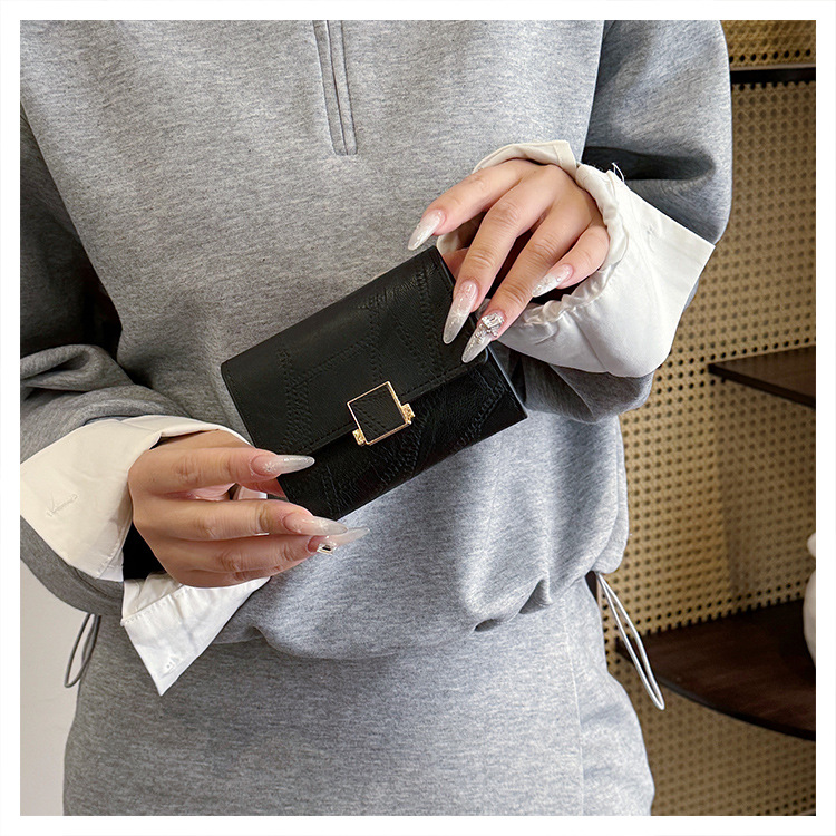 Ins 스타일 지갑 여성의 짧은 2025 새로운 유럽과 미국 스타일 작은 샤넬 스타일 바느질 얇은 접이식 멀티 카드 지갑 카드 가방스토어 가기