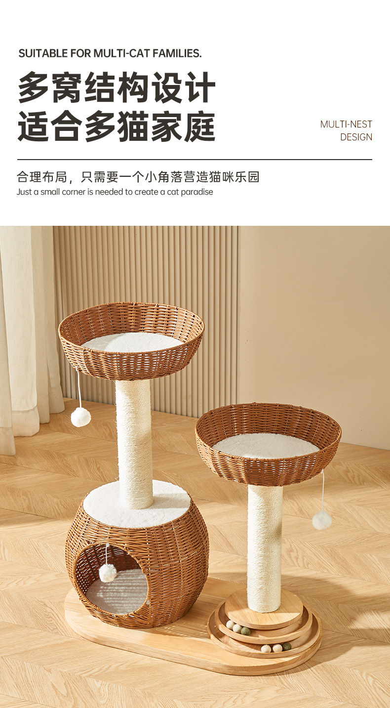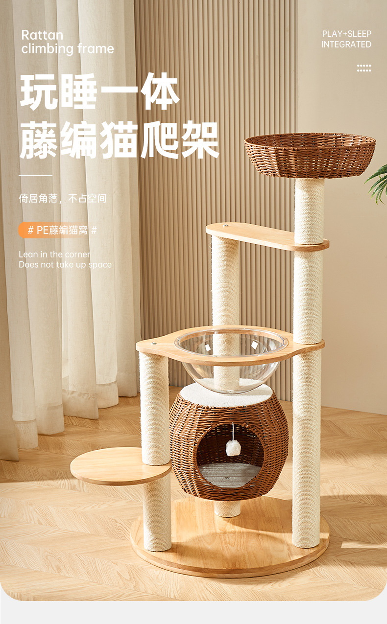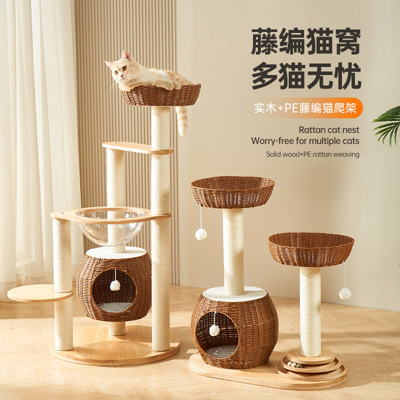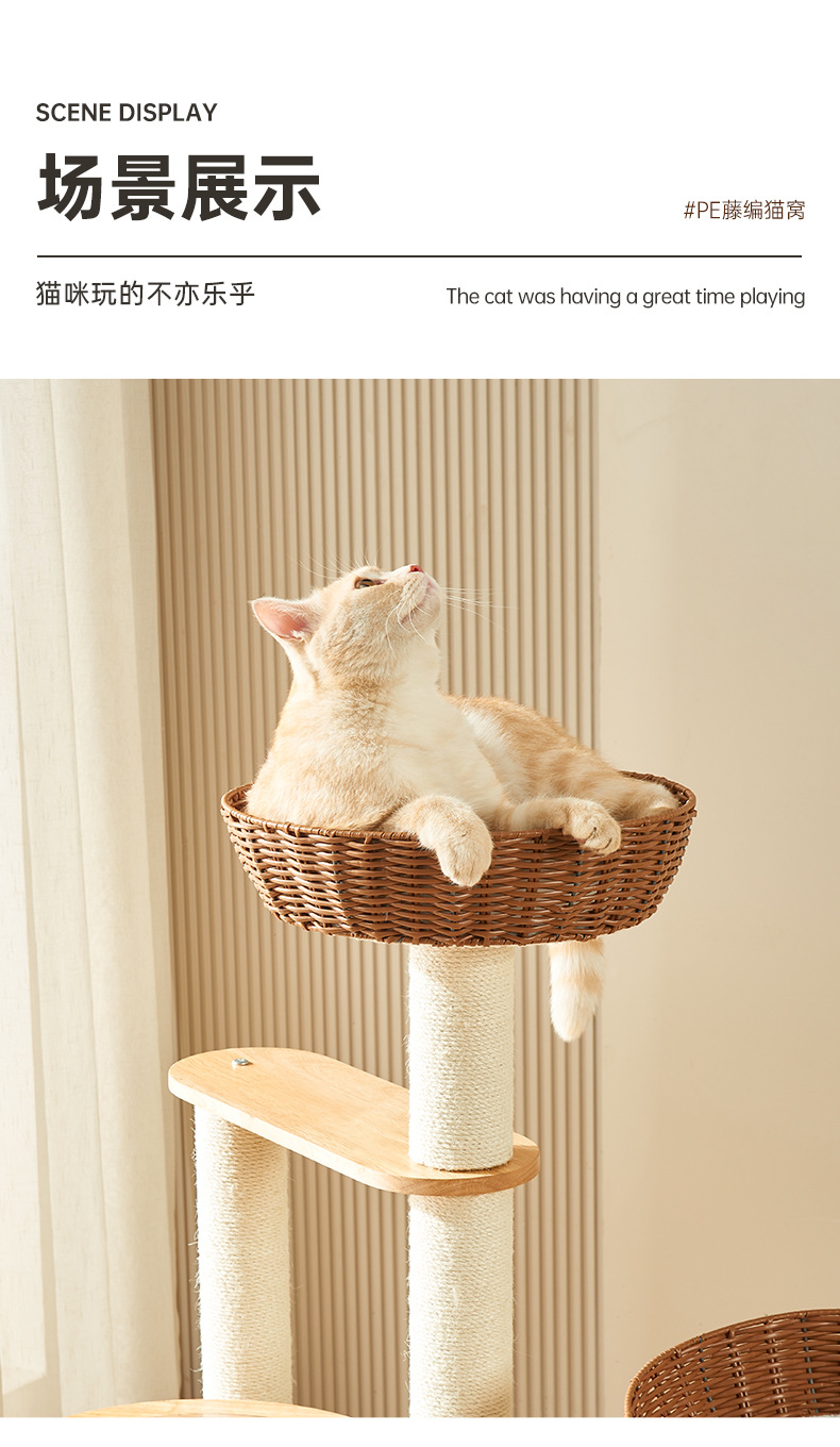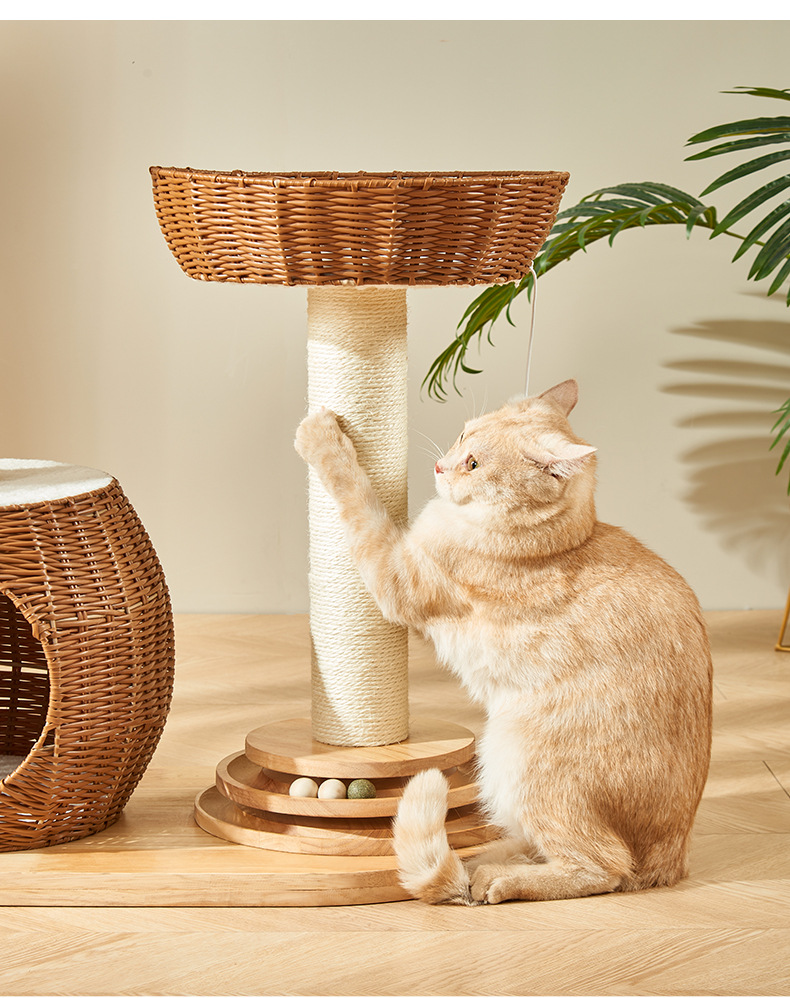 고양이 클라이밍 프레임과 고양이 집이 결합된 PE 라탄 고양이 트리, 고양이 놀이대, 애완용품, 대마 기둥, 긁힘 방지, 부스러기 잘 안뜨는, 사계절 사용 가능