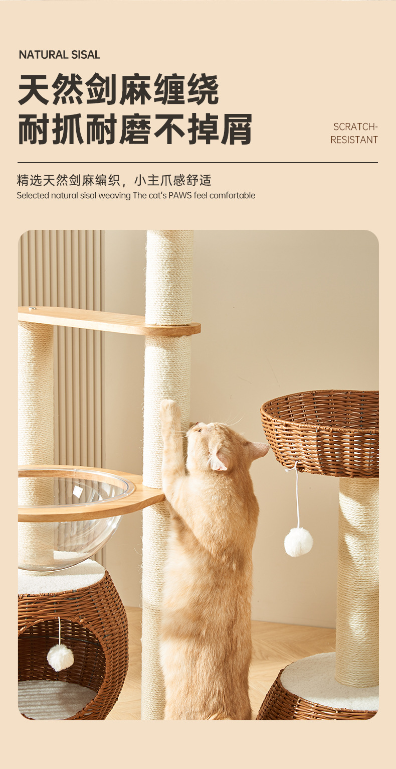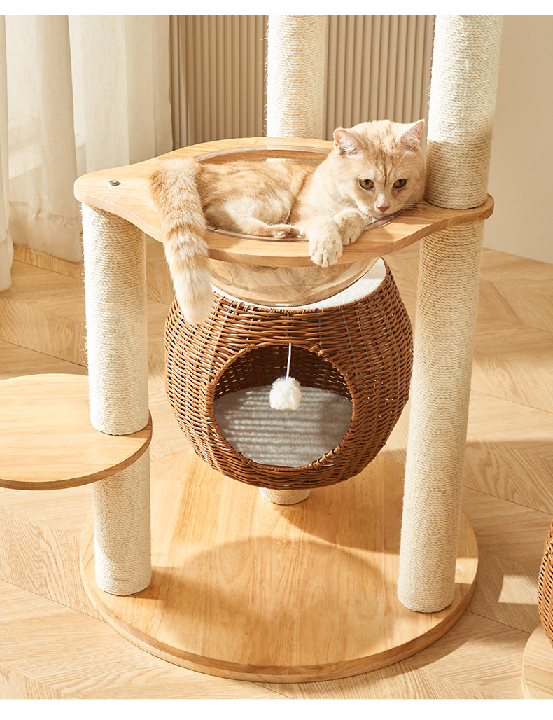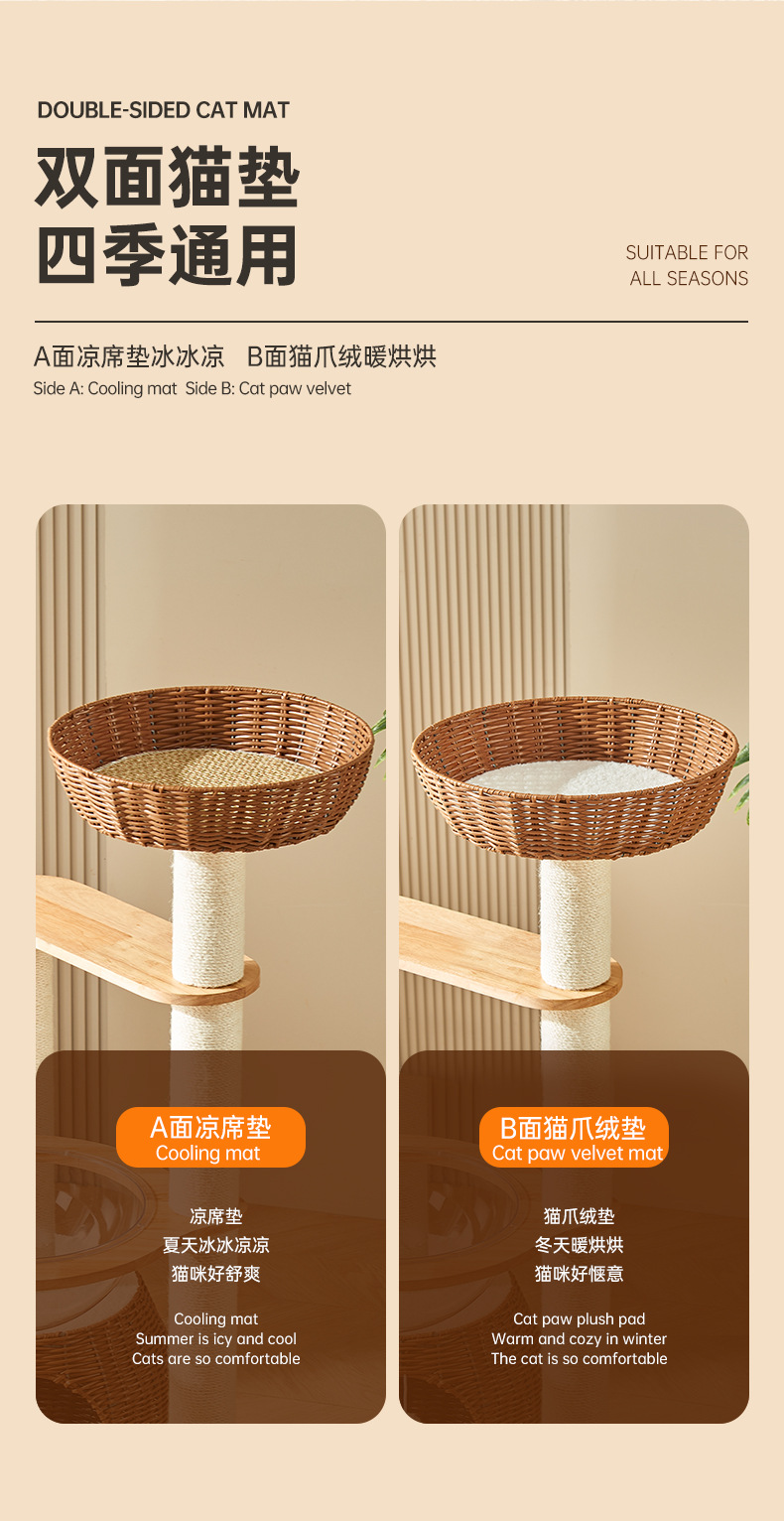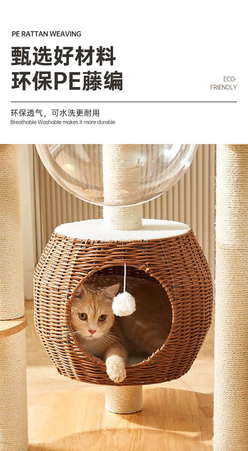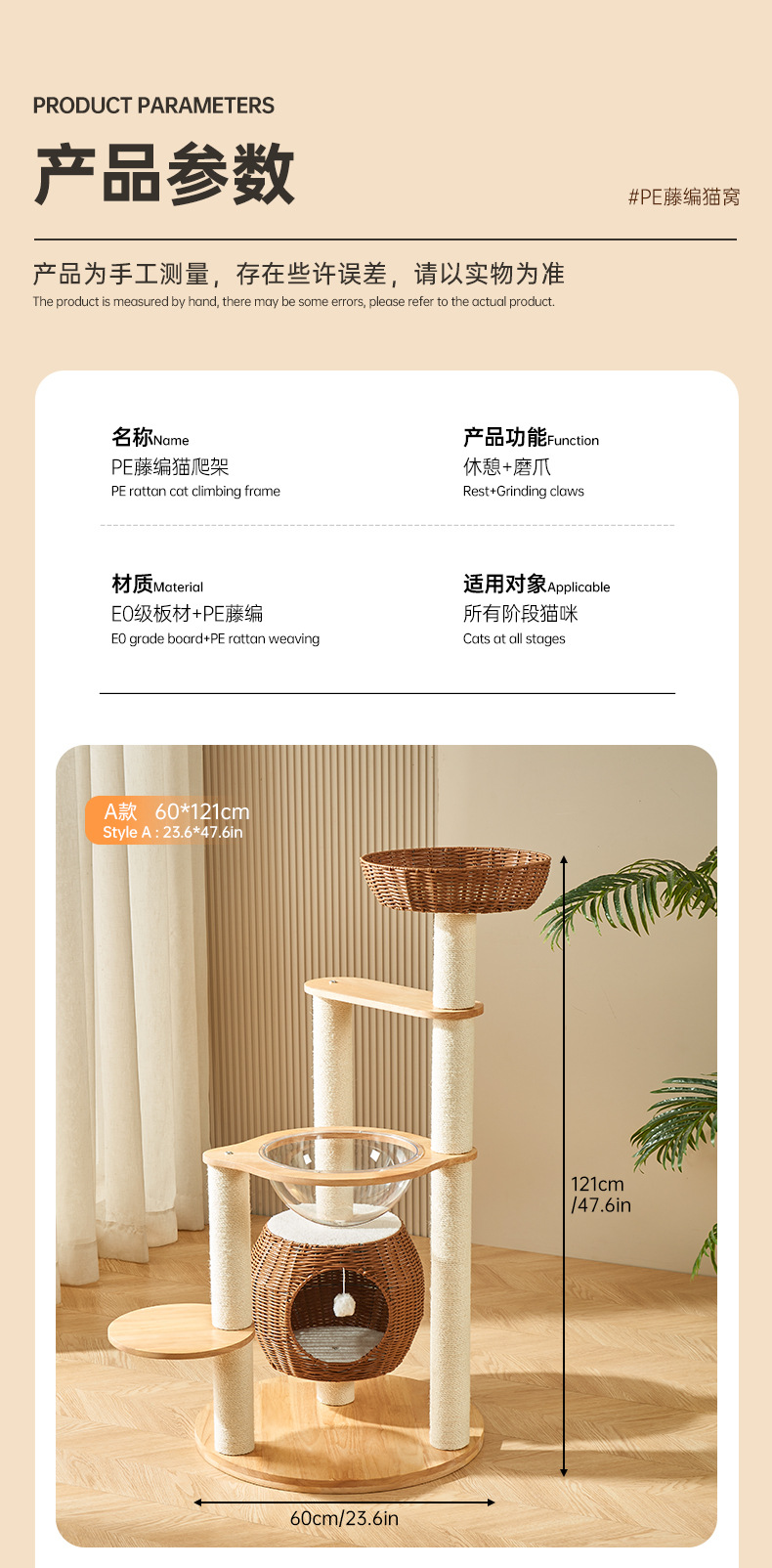 고양이 클라이밍 프레임과 고양이 집이 결합된 PE 라탄 고양이 트리, 고양이 놀이대, 애완용품, 대마 기둥, 긁힘 방지, 부스러기 잘 안뜨는, 사계절 사용 가능