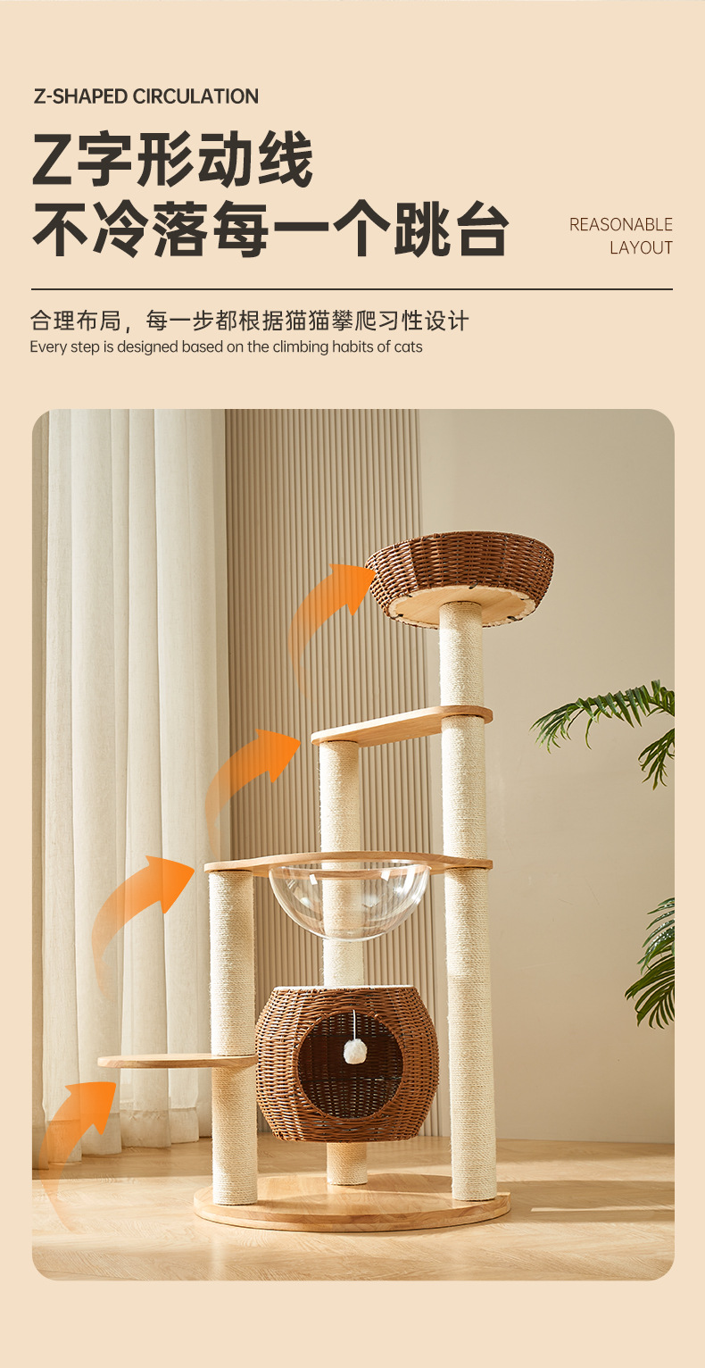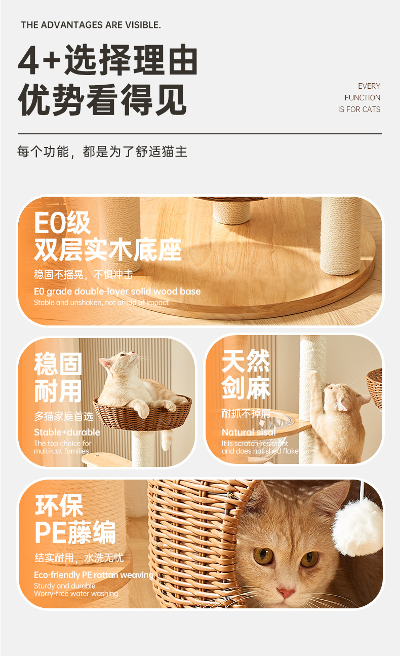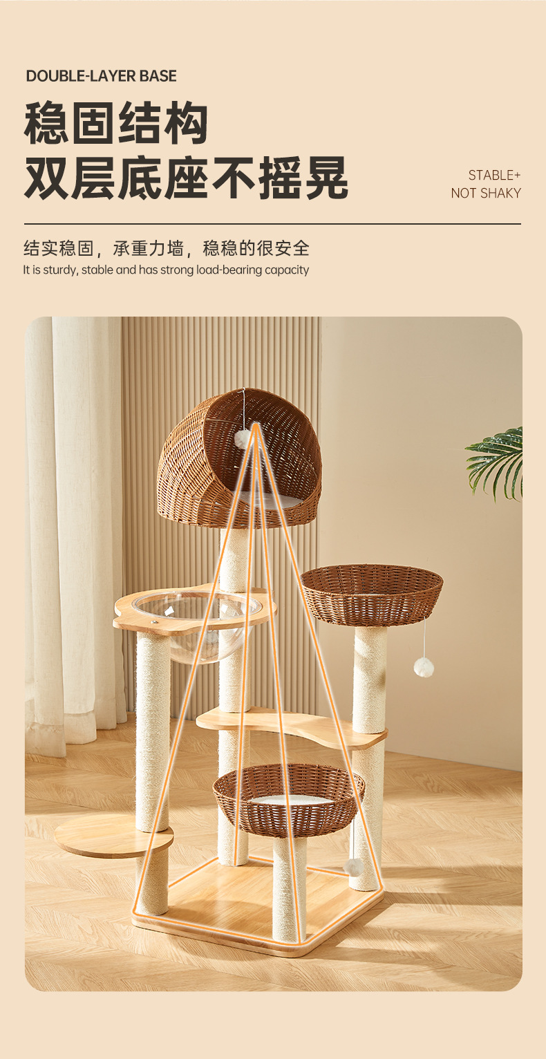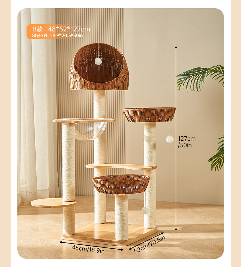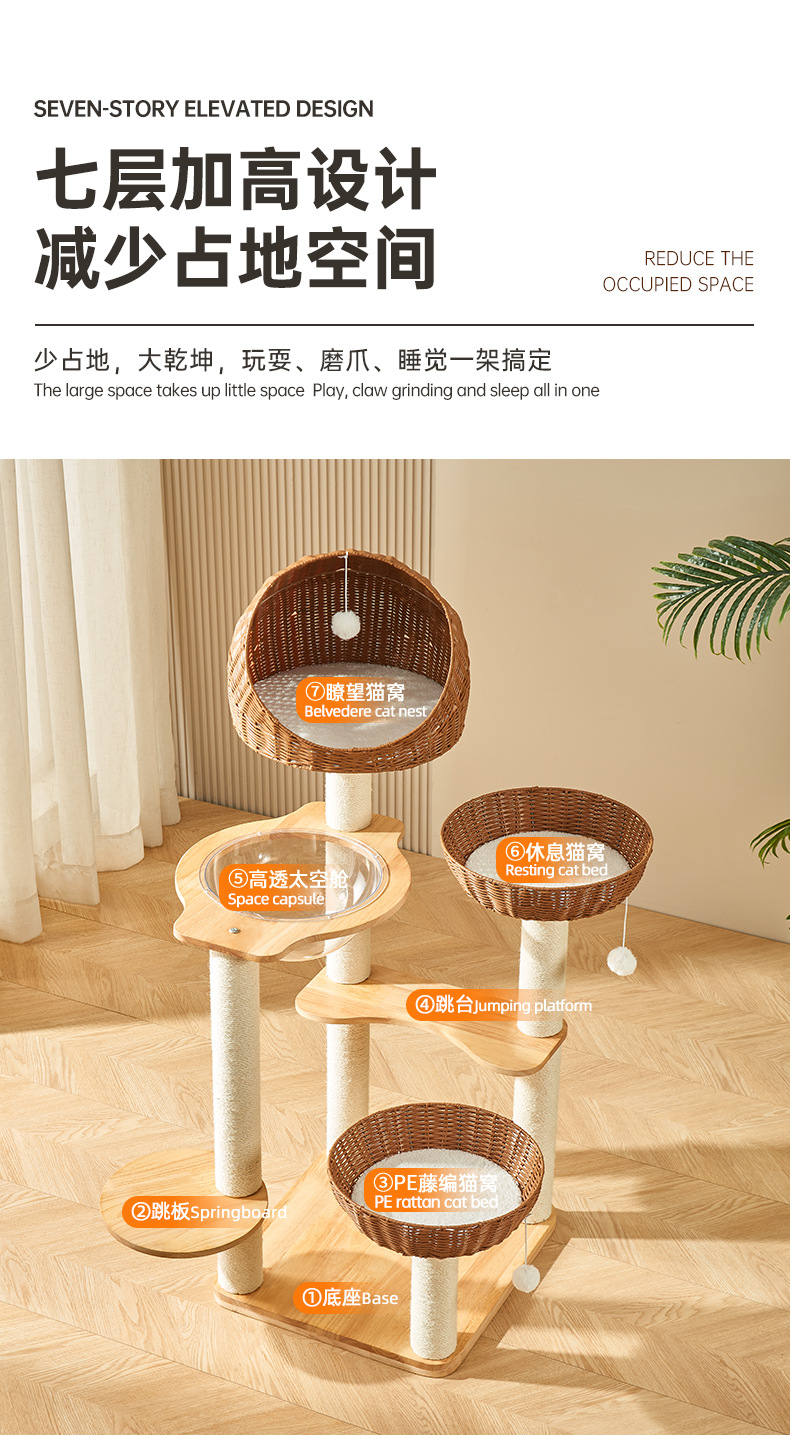 고양이 클라이밍 프레임과 고양이 집이 결합된 PE 라탄 고양이 트리, 고양이 놀이대, 애완용품, 대마 기둥, 긁힘 방지, 부스러기 잘 안뜨는, 사계절 사용 가능