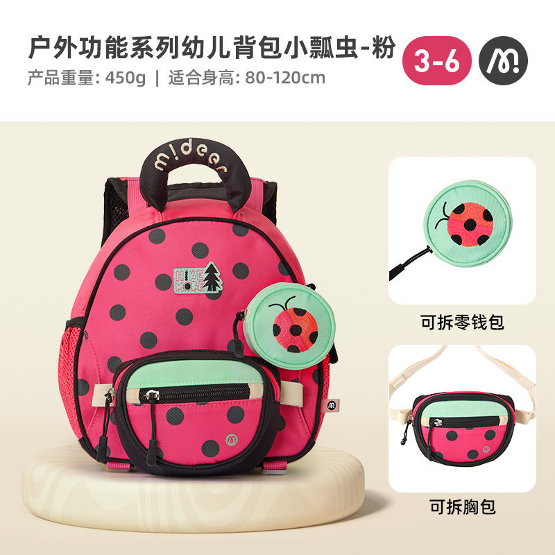 • 【신규 색상 출시】 S 사이즈: 꼬마 무당벌레 - 핑크 【동전 지갑 + 탈부착 가능한 가슴 포켓 포함】