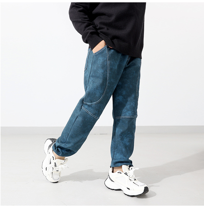 가을 신상 한국 스타일 아동 캐주얼 바지, 중대형 아동용 염색 스포츠 팬츠, 남아용 모기 방지 바지 도매스토어 가기