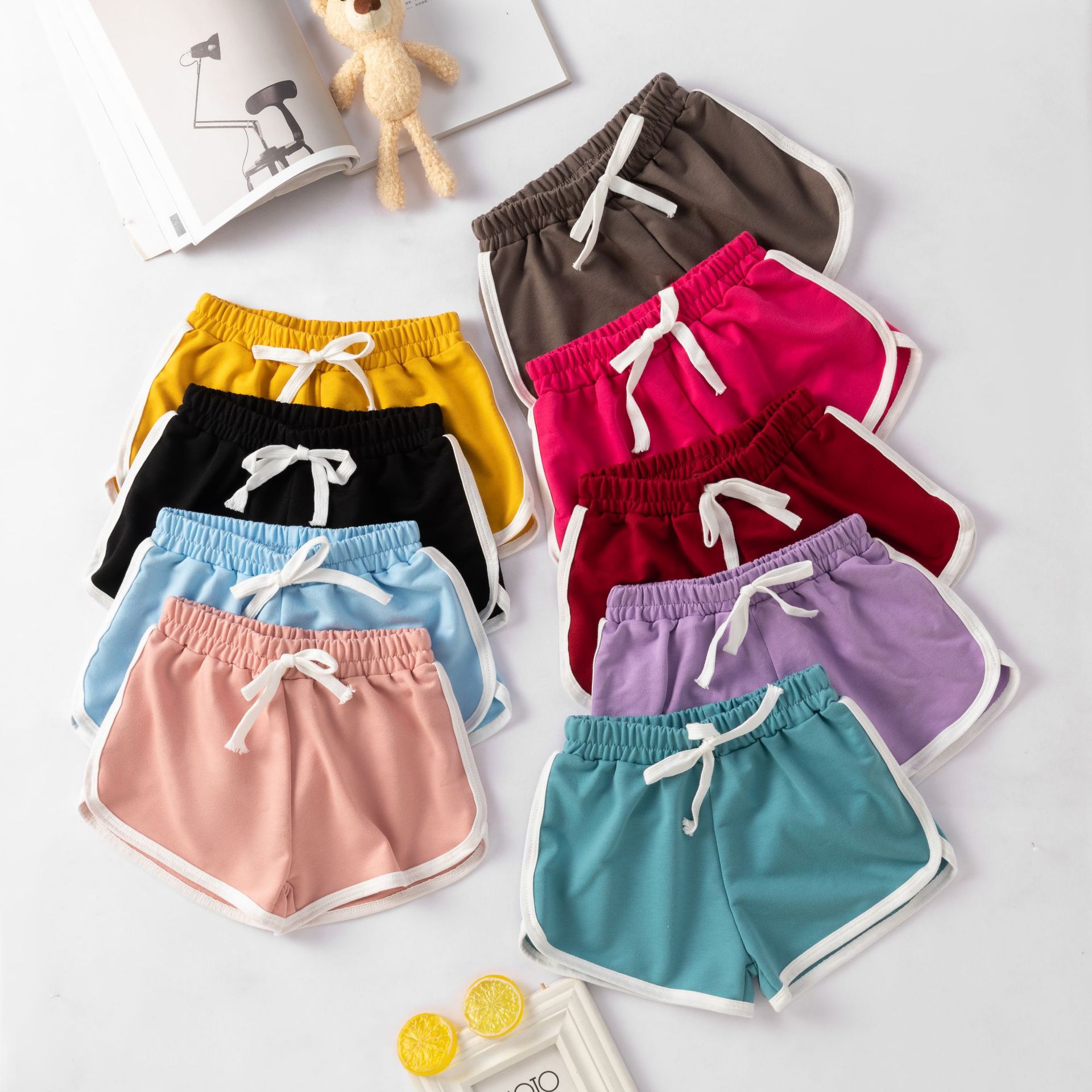 국경 간 신제품 어린이 면화 달리기 반바지 유럽과 미국 소녀 모조 드로우 스트링 돌고래 반바지 여름 해변 바지스토어 가기
