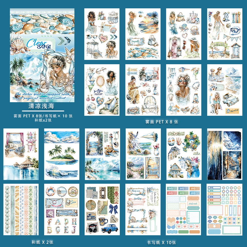 국경을 넘는 특별 판매, 새로운 커팅 필름 스티커북, 20매, 다이어리 소재 스티커, 무광 다이어리 PET 스티커북스토어 가기
