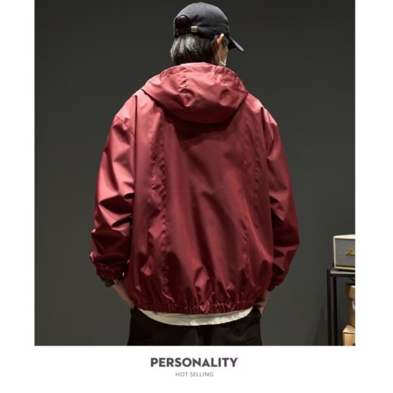 빨간 충전 옷 재킷 남자의 봄과 가을 유행 브랜드 남성복 플러스 뚱뚱한 플러스 새로운 남성 가을 방수 등산 옷