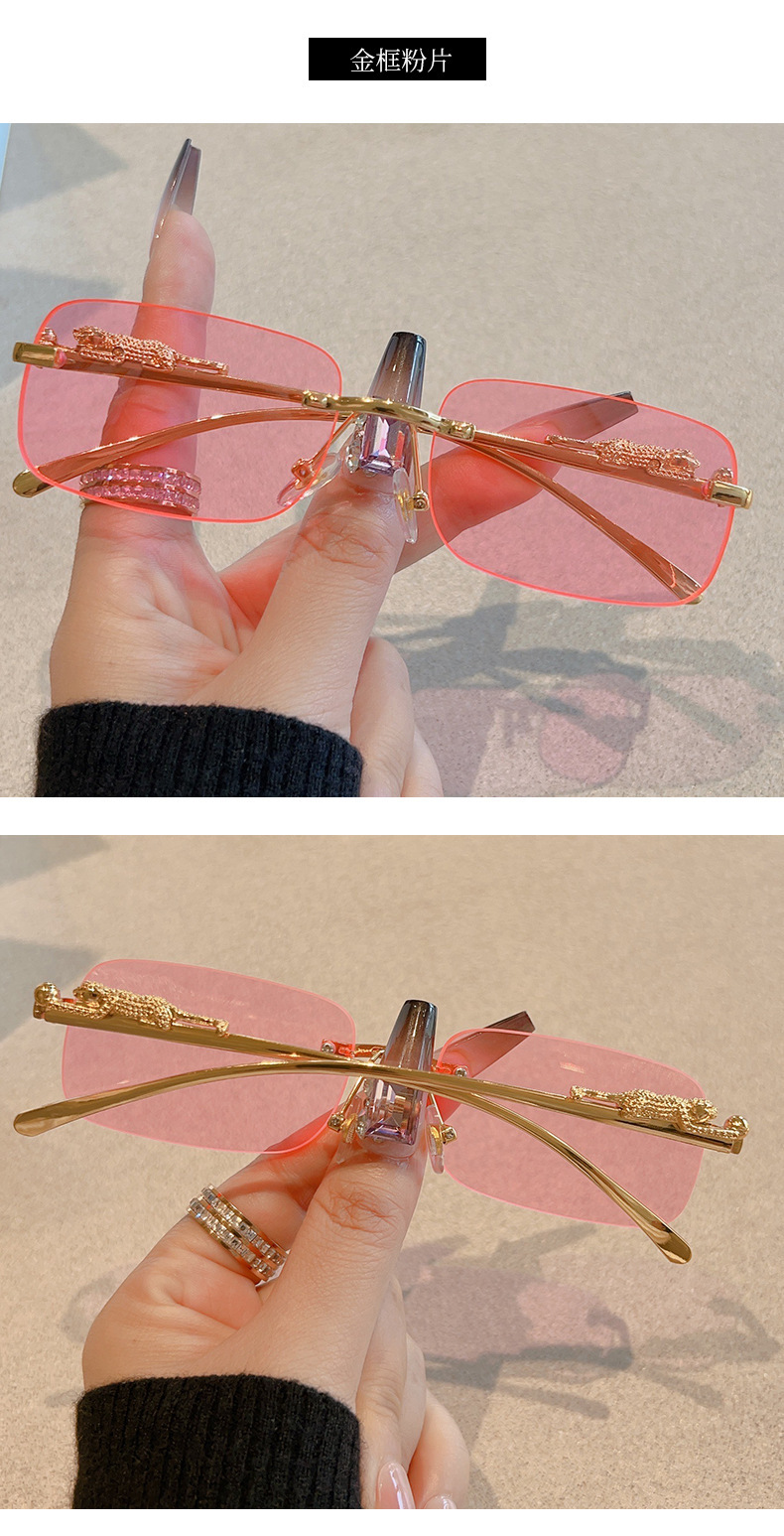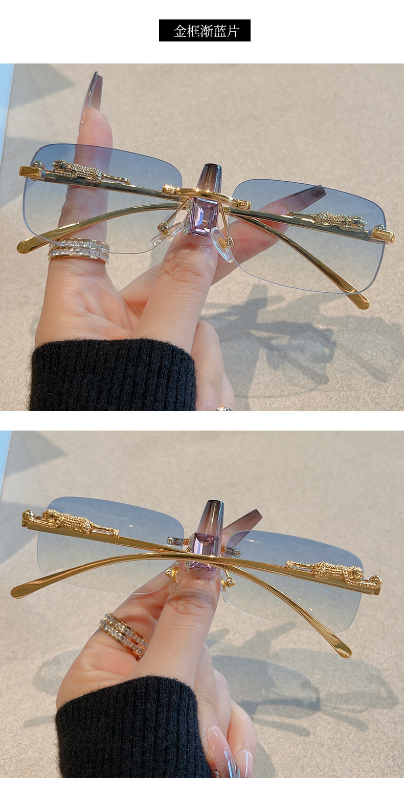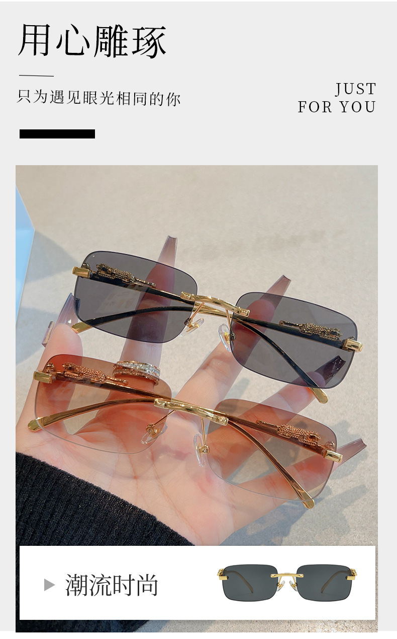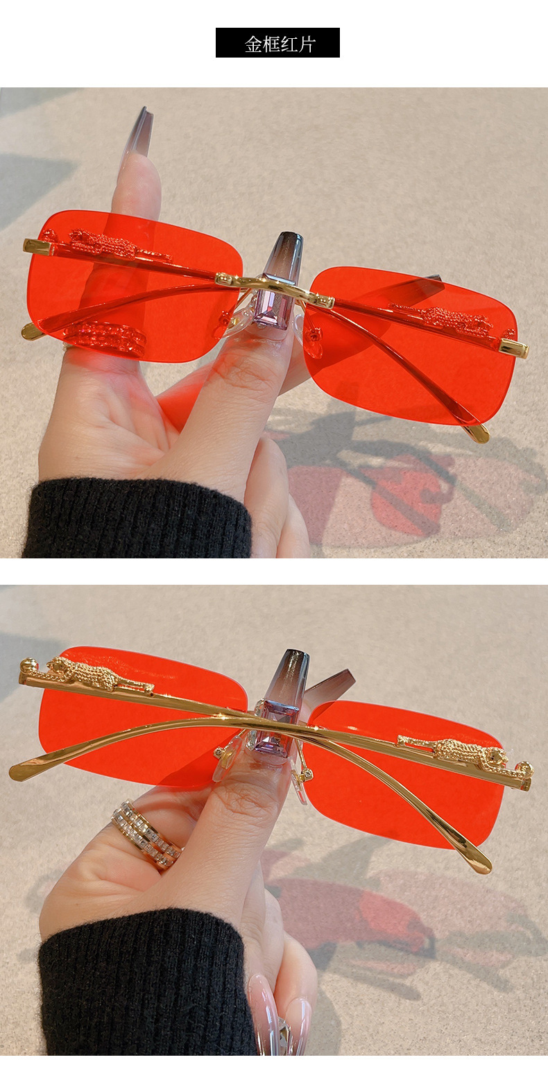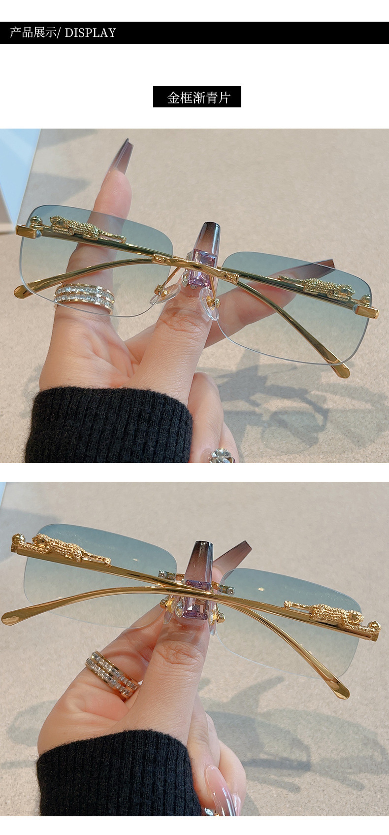국경을 넘는 새로운 프레임없는 사각형 치타 장식 선글라스 남성과 여성 복고풍 트렌드 표범 머리 금속 선글라스 도매스토어 가기
