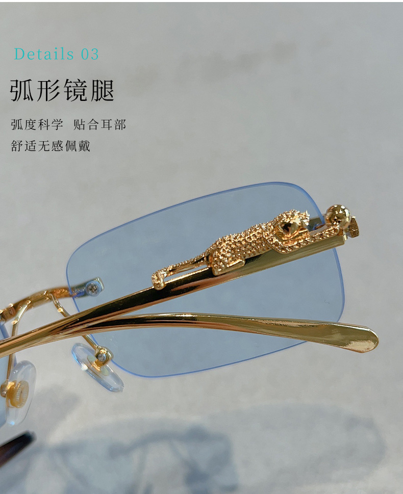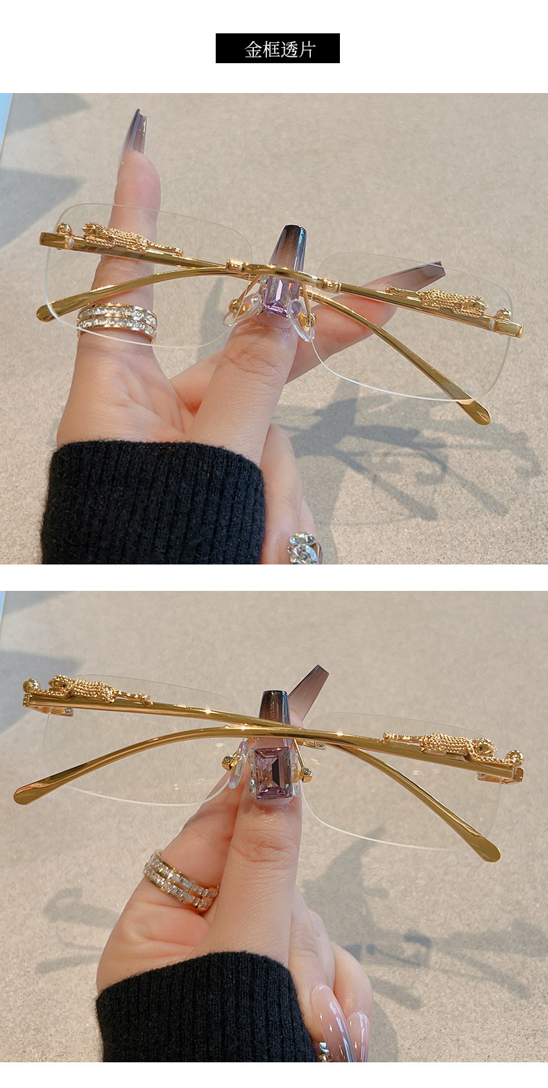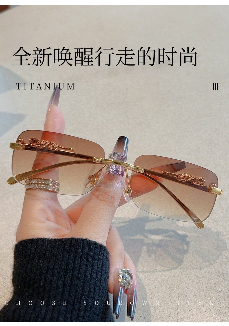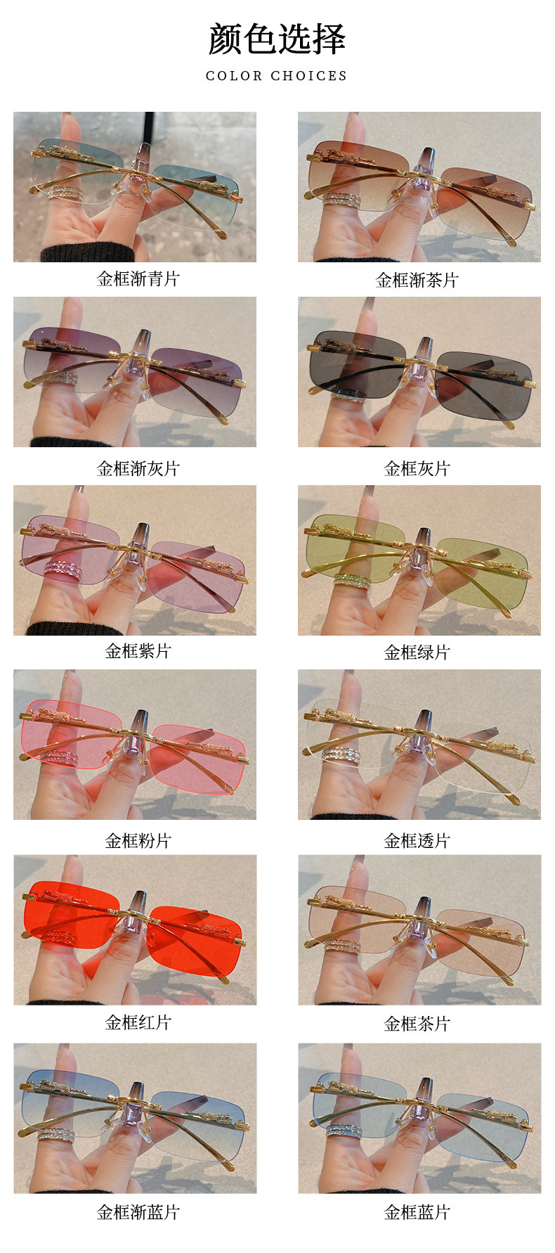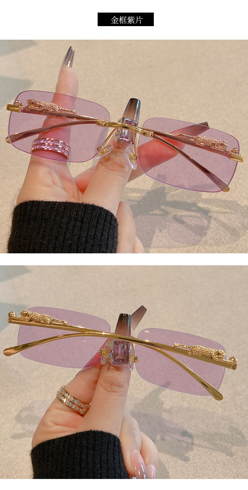 국경을 넘는 새로운 프레임없는 사각형 치타 장식 선글라스 남성과 여성 복고풍 트렌드 표범 머리 금속 선글라스 도매스토어 가기