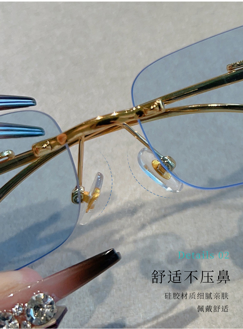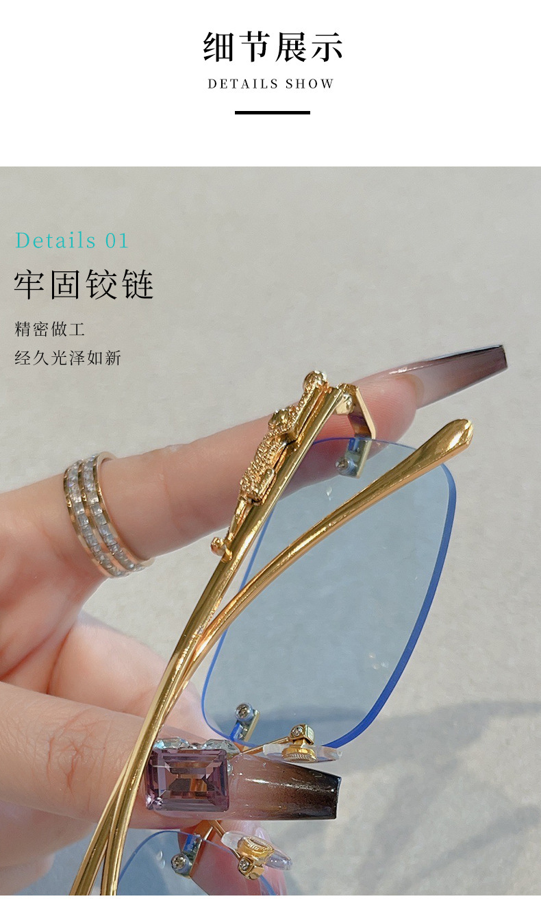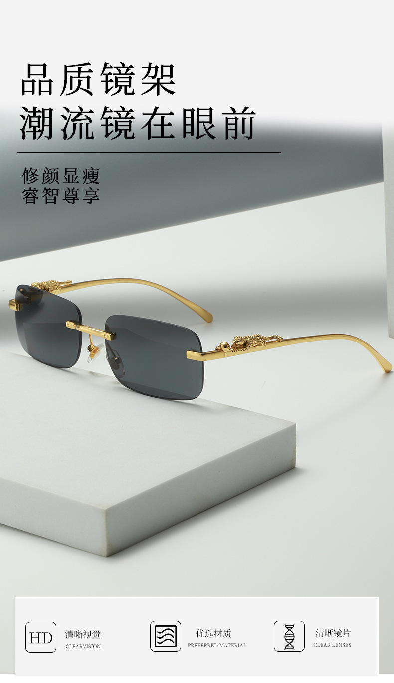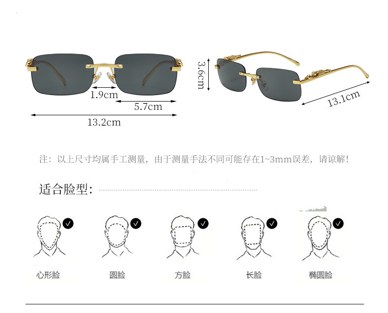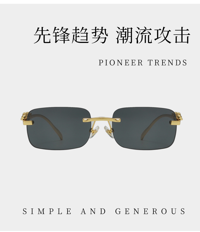 국경을 넘는 새로운 프레임없는 사각형 치타 장식 선글라스 남성과 여성 복고풍 트렌드 표범 머리 금속 선글라스 도매