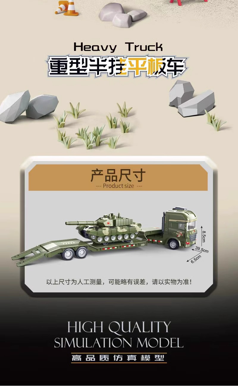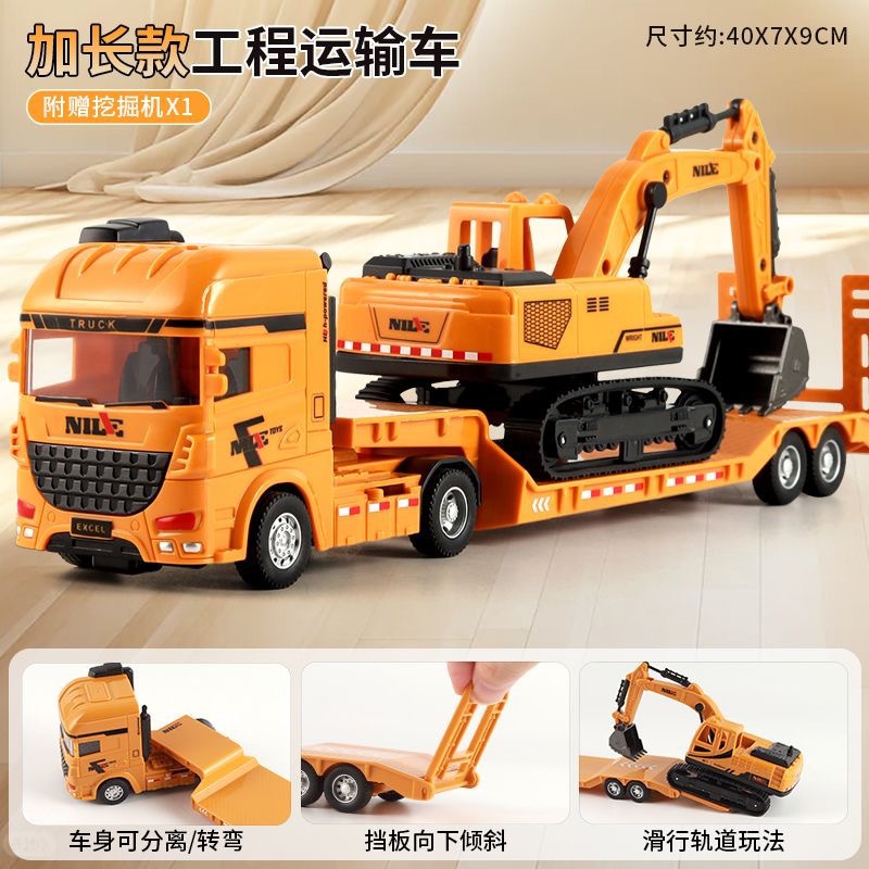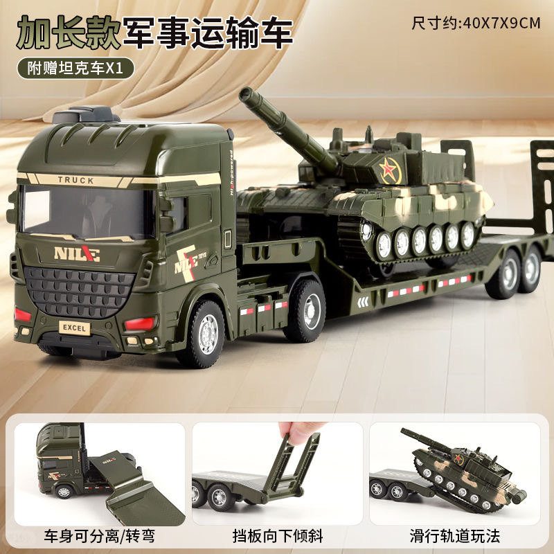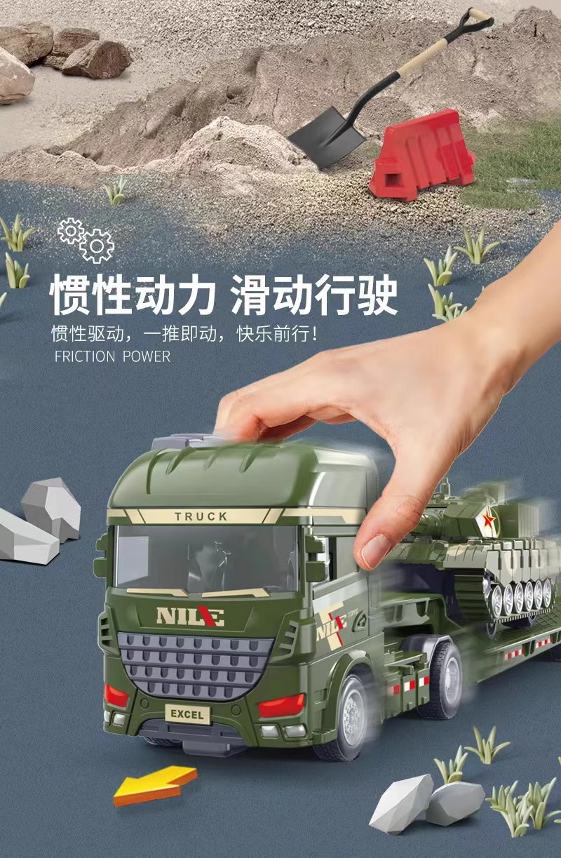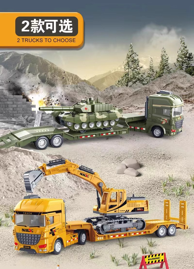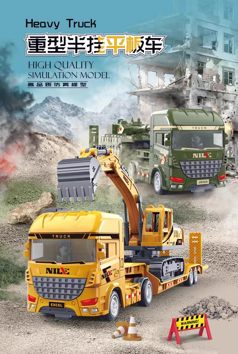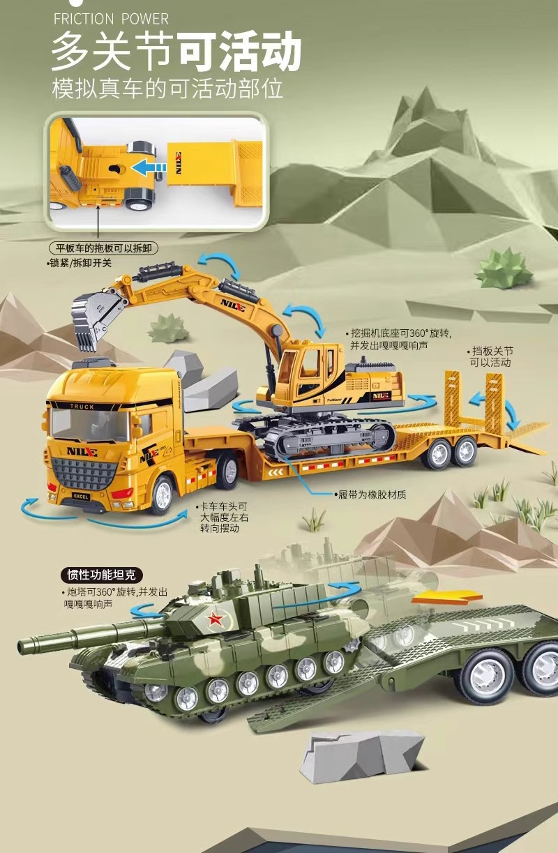 대형 플랫 운송 트럭 세미 트레일러 트레이 자동차 어린이 관성 장난감 자동차 엔지니어링 차량 굴착기 군용 차량