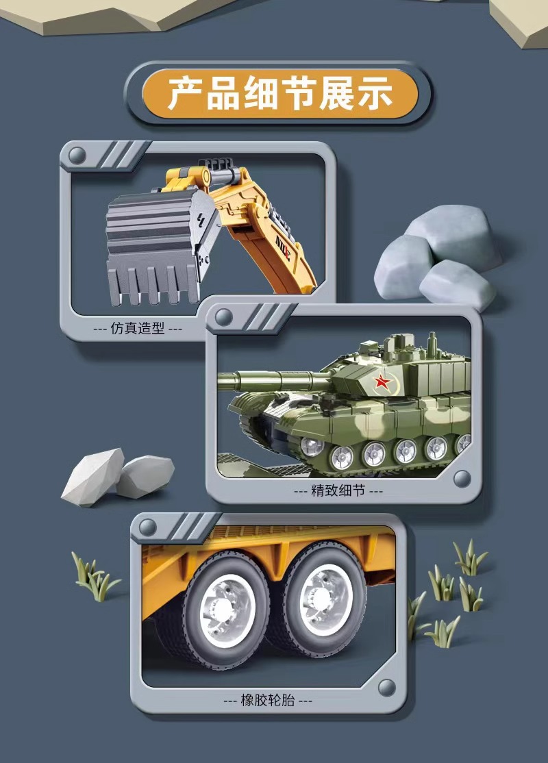 대형 플랫 운송 트럭 세미 트레일러 트레이 자동차 어린이 관성 장난감 자동차 엔지니어링 차량 굴착기 군용 차량스토어 가기