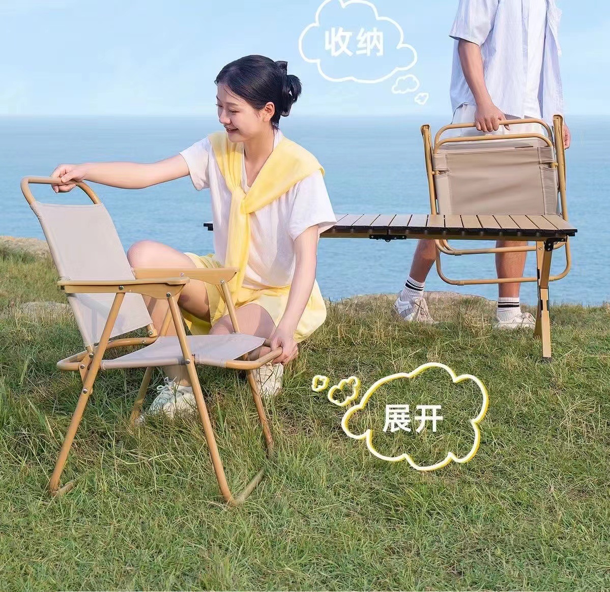 라운드 튜브 커밋 의자 탄소 강철 접이식 의자 해변 캠핑 의자 Stall 발코니 캐주얼 라이트 휴대용 캠핑 의자스토어 가기
