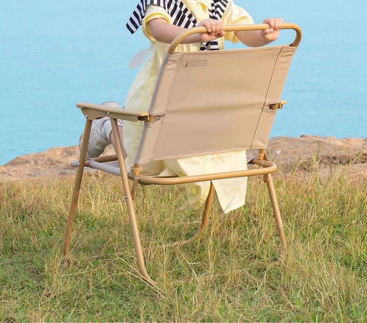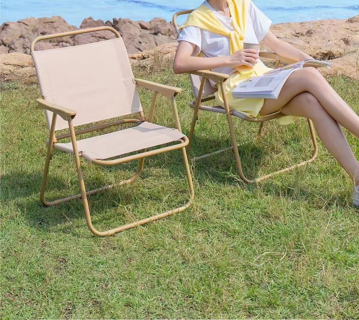 라운드 튜브 커밋 의자 탄소 강철 접이식 의자 해변 캠핑 의자 Stall 발코니 캐주얼 라이트 휴대용 캠핑 의자