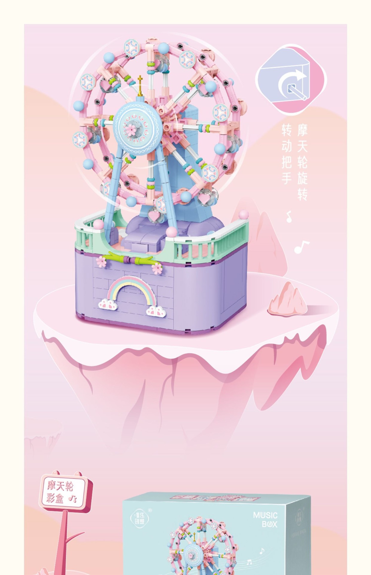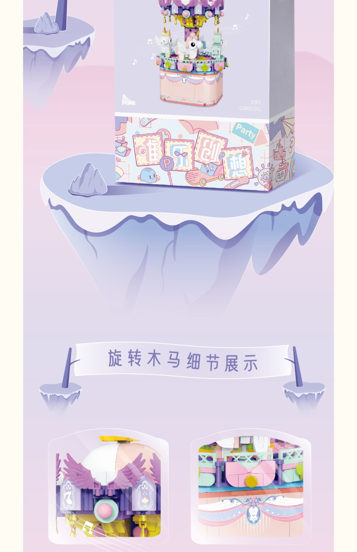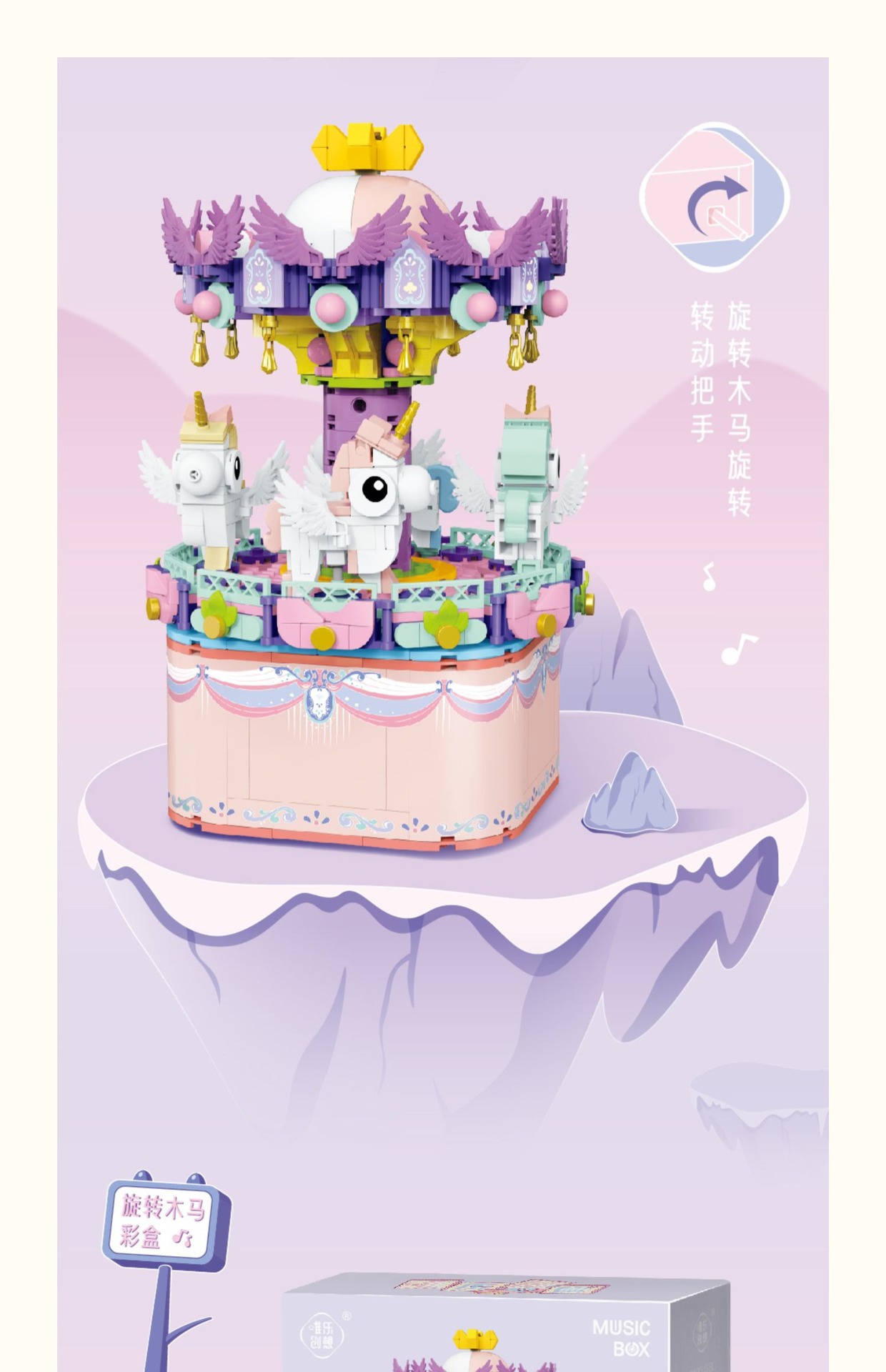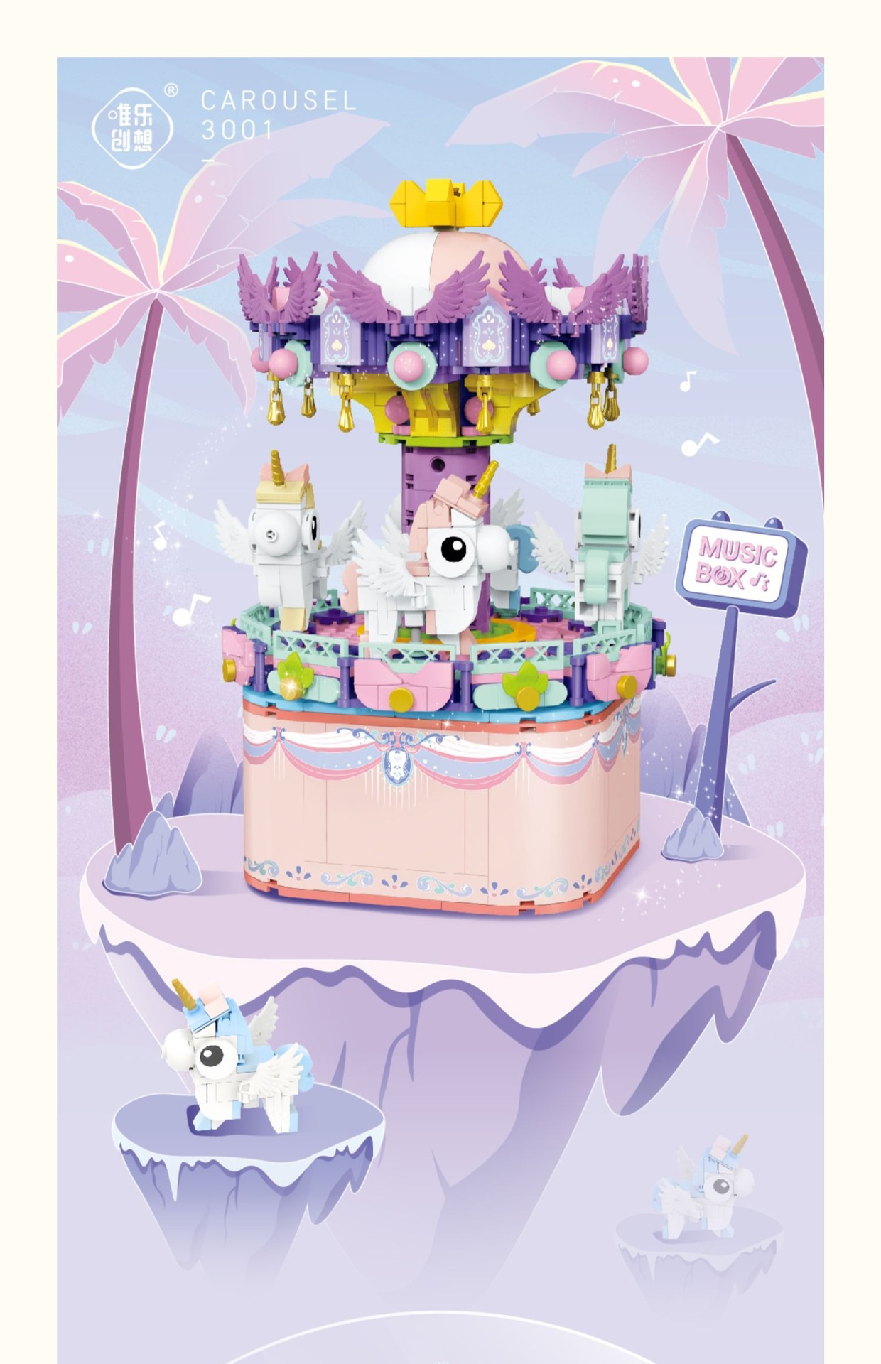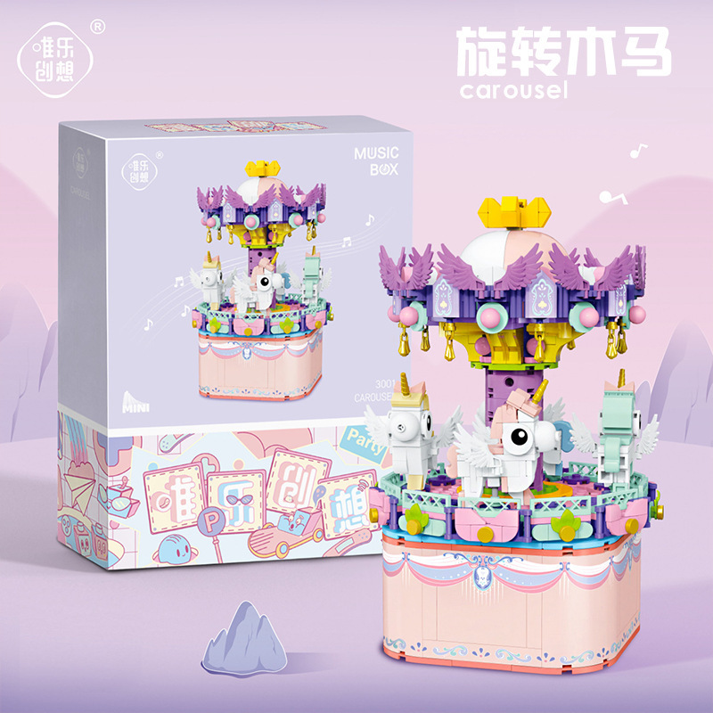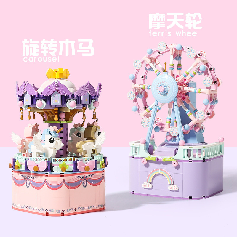 작은 입자 회전 목마 관람차 조립 된 건물 블록 장난감 모델 어린이 데스크탑 음악 상자 소녀 선물스토어 가기