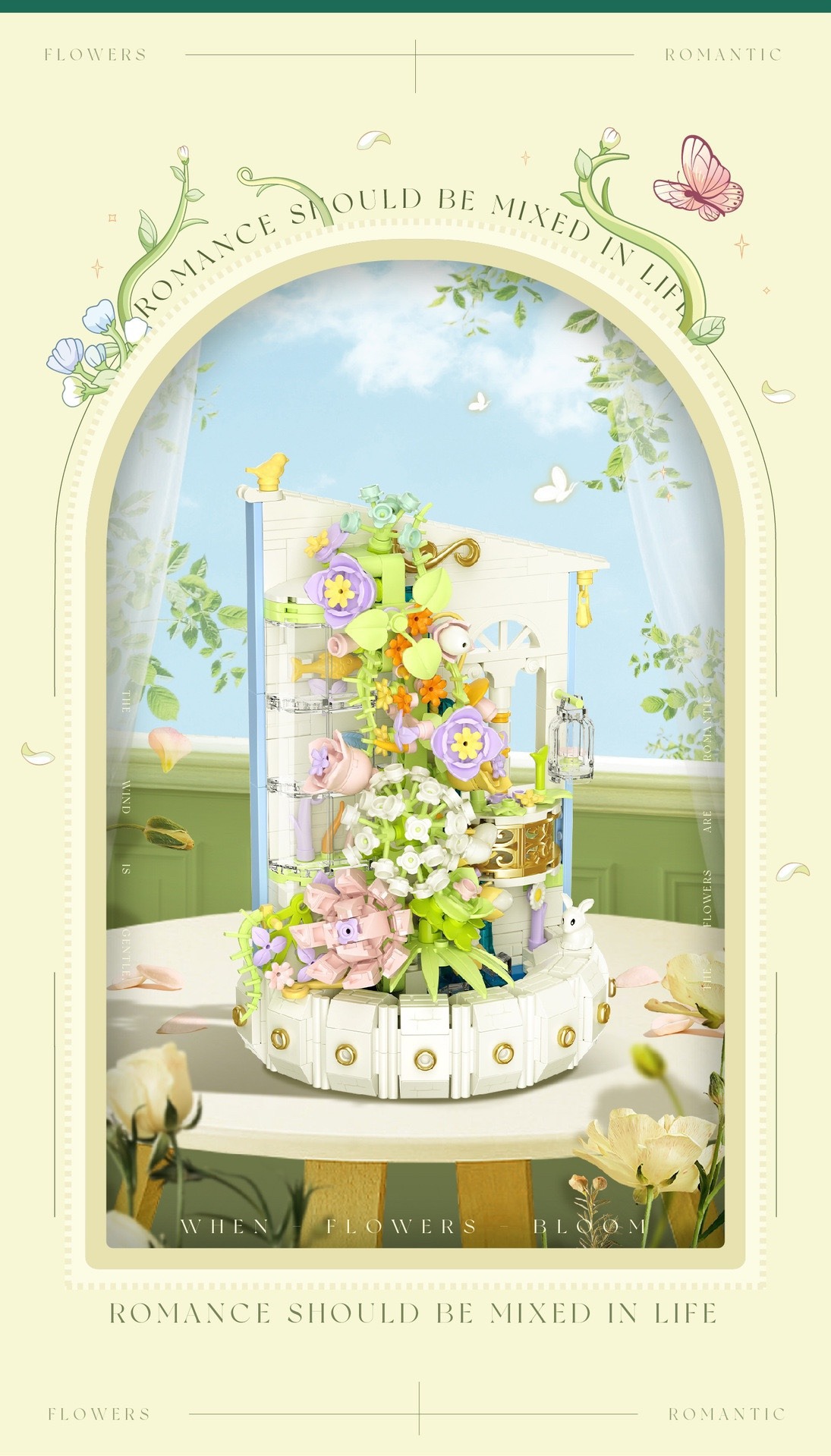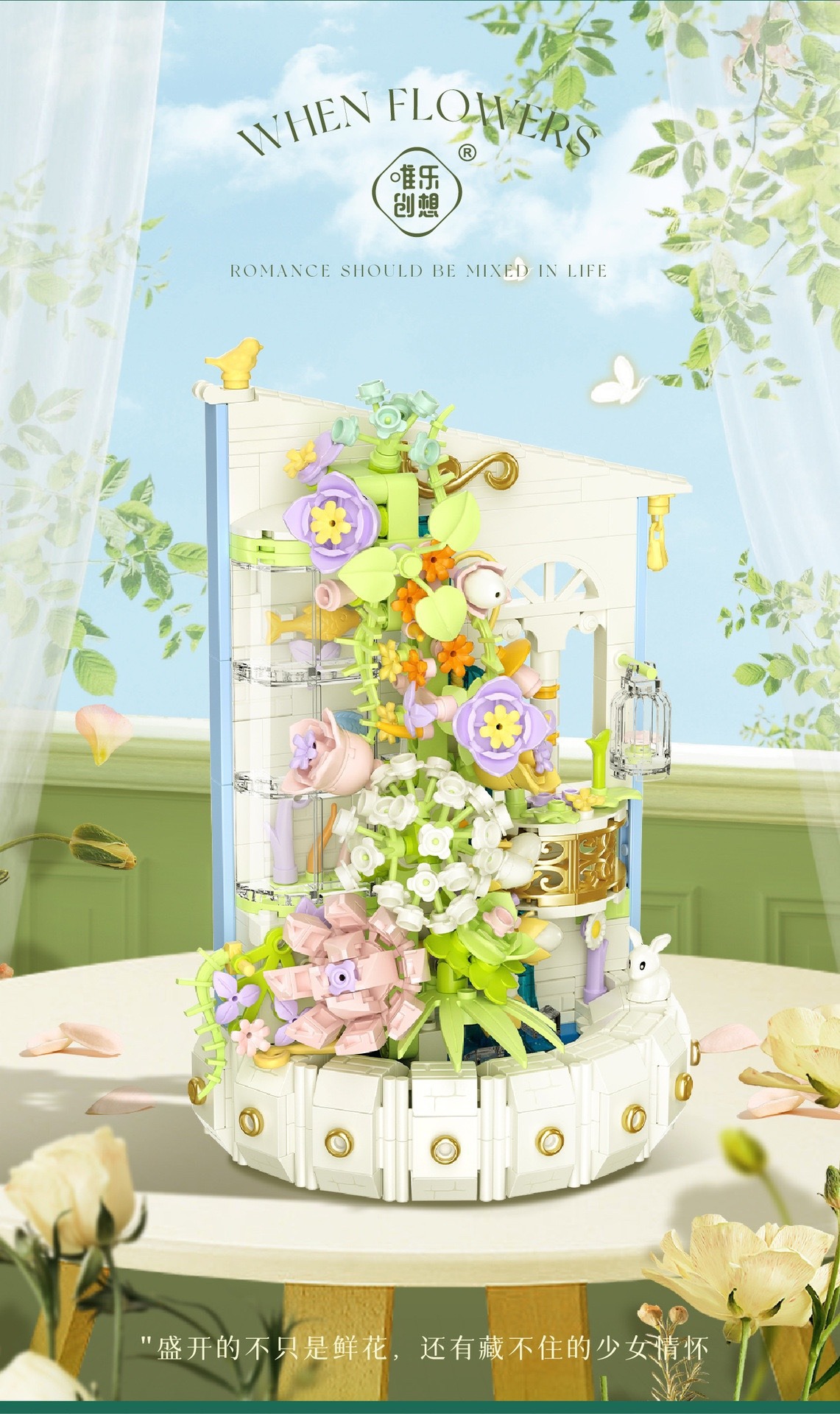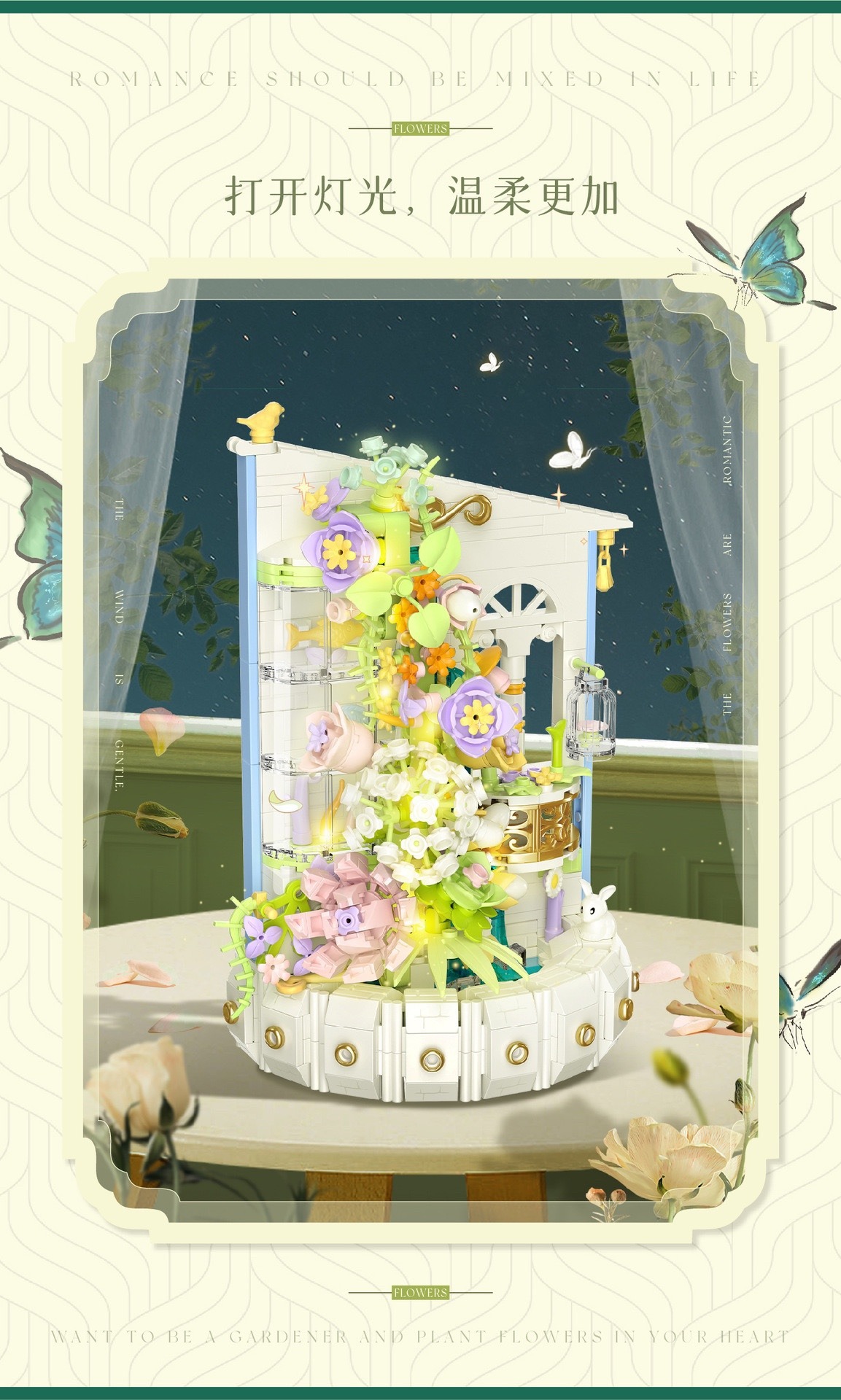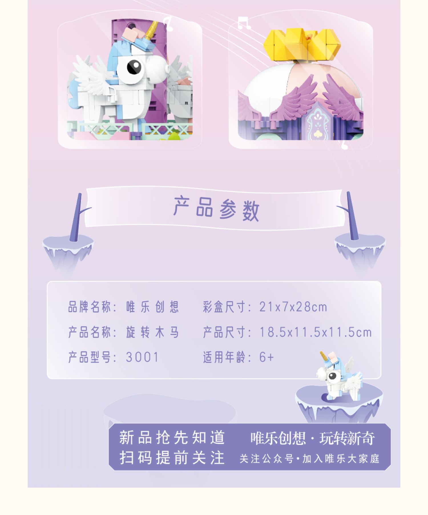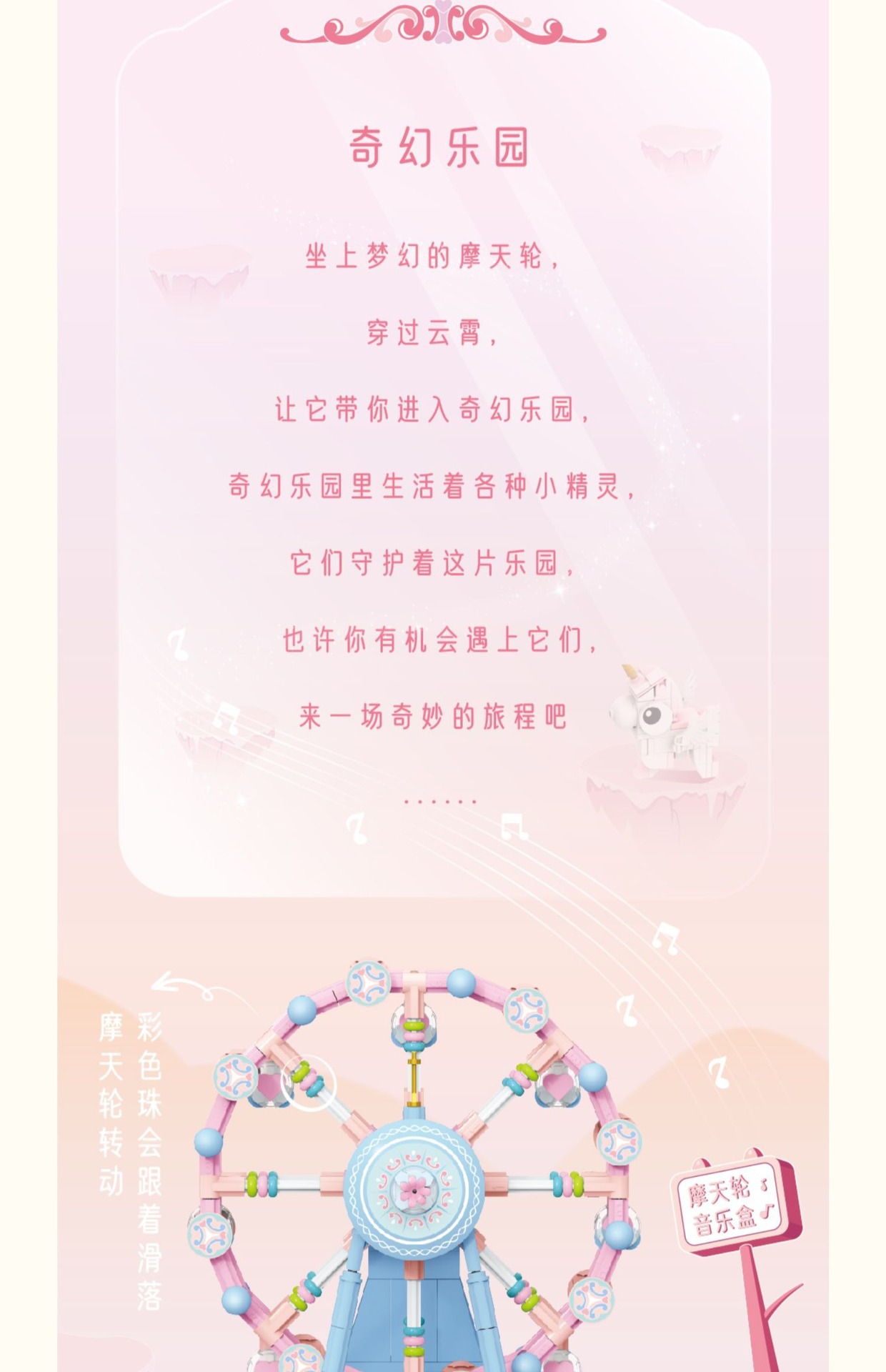 작은 입자 회전 목마 관람차 조립 된 건물 블록 장난감 모델 어린이 데스크탑 음악 상자 소녀 선물스토어 가기