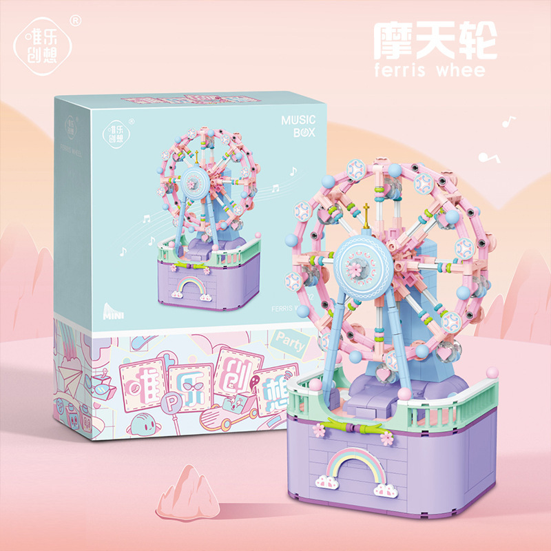 작은 입자 회전 목마 관람차 조립 된 건물 블록 장난감 모델 어린이 데스크탑 음악 상자 소녀 선물