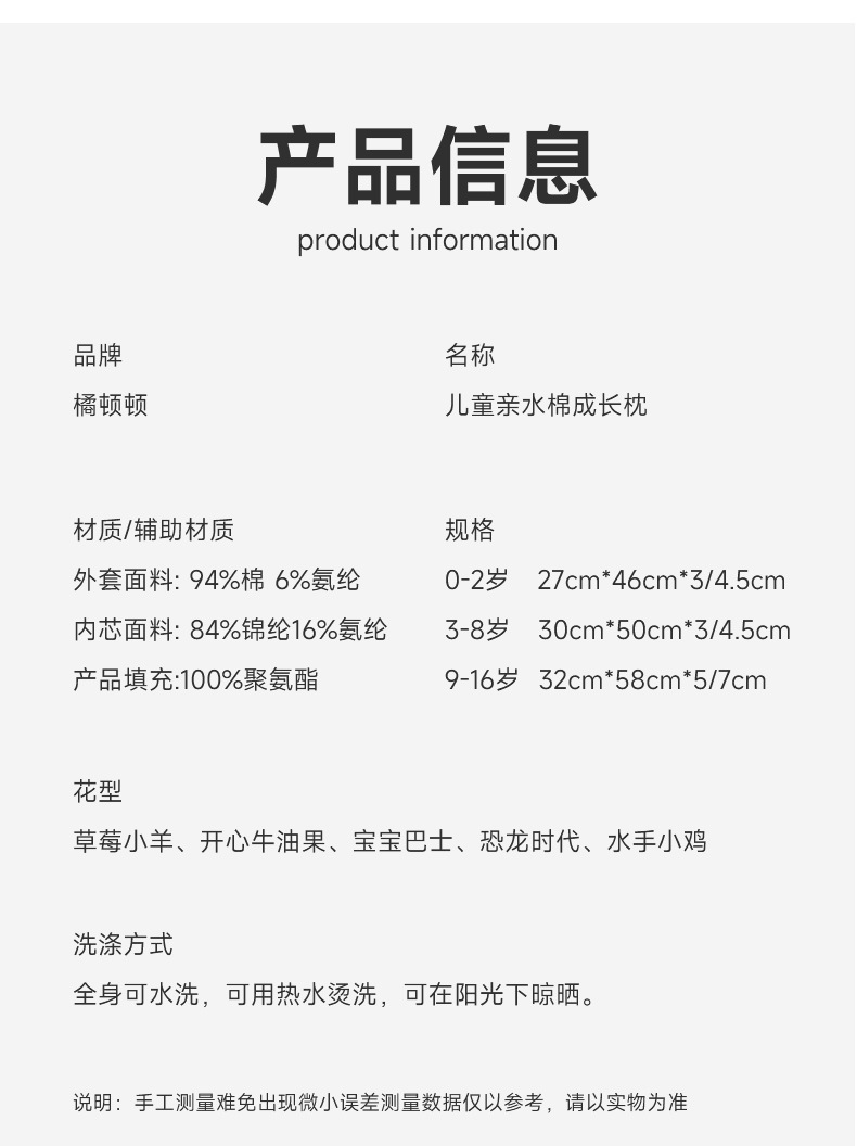 • 딸기 양고기 어린이 성장 메모리 폼 베개 30*50*3cm/개