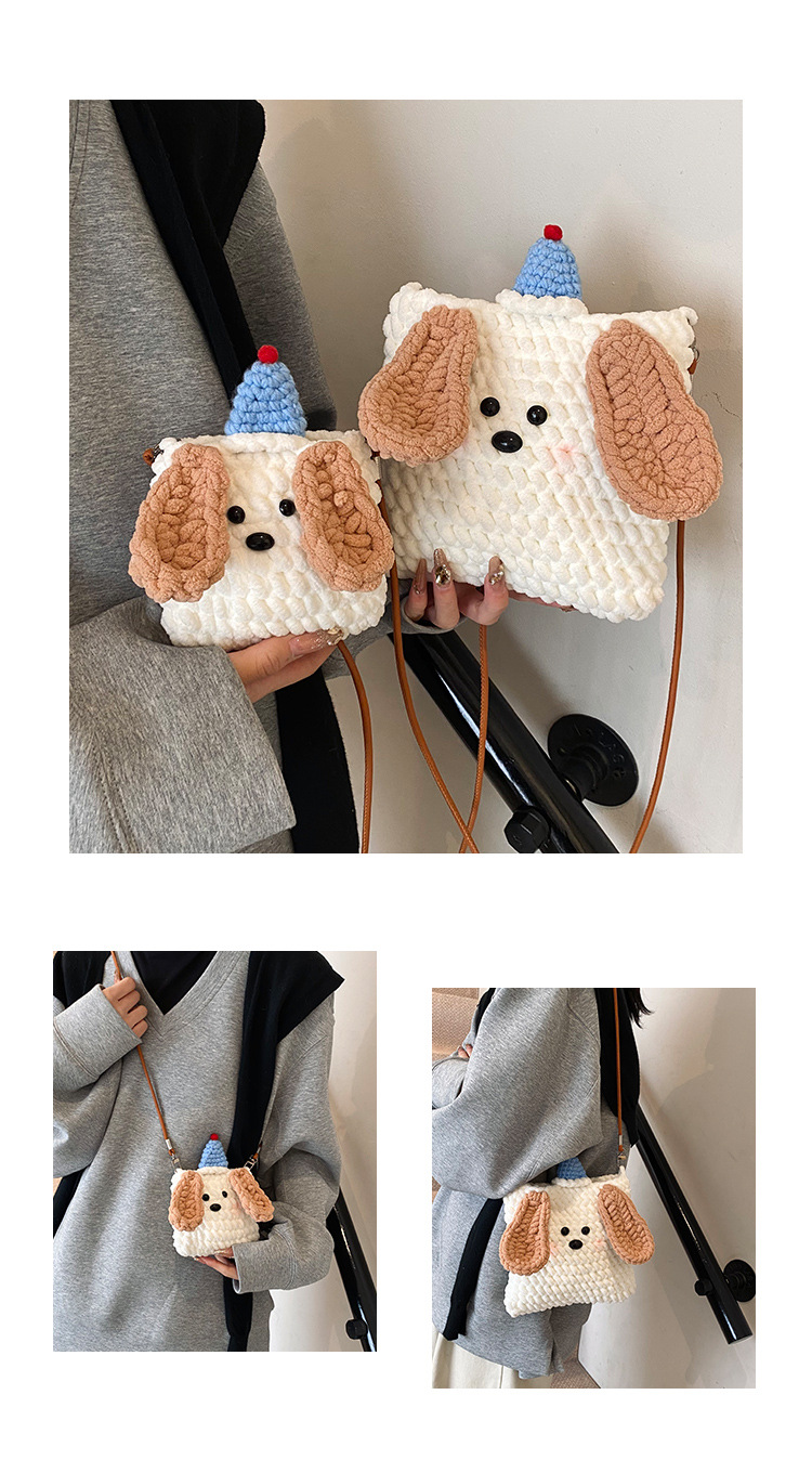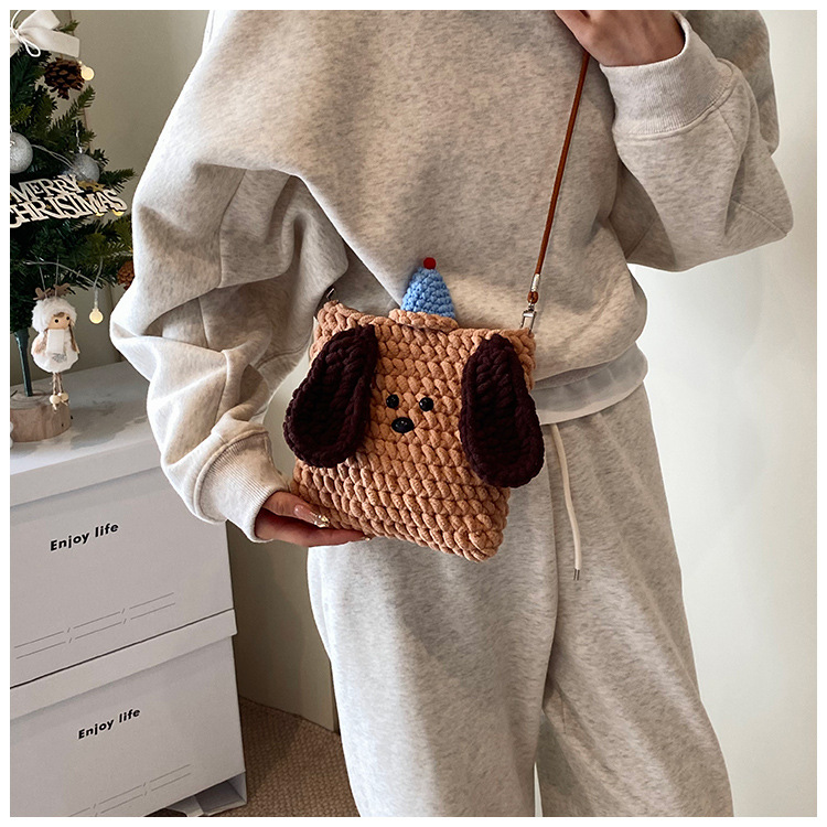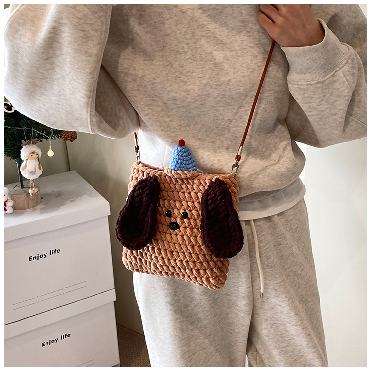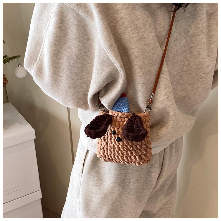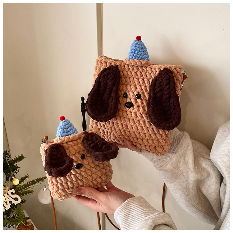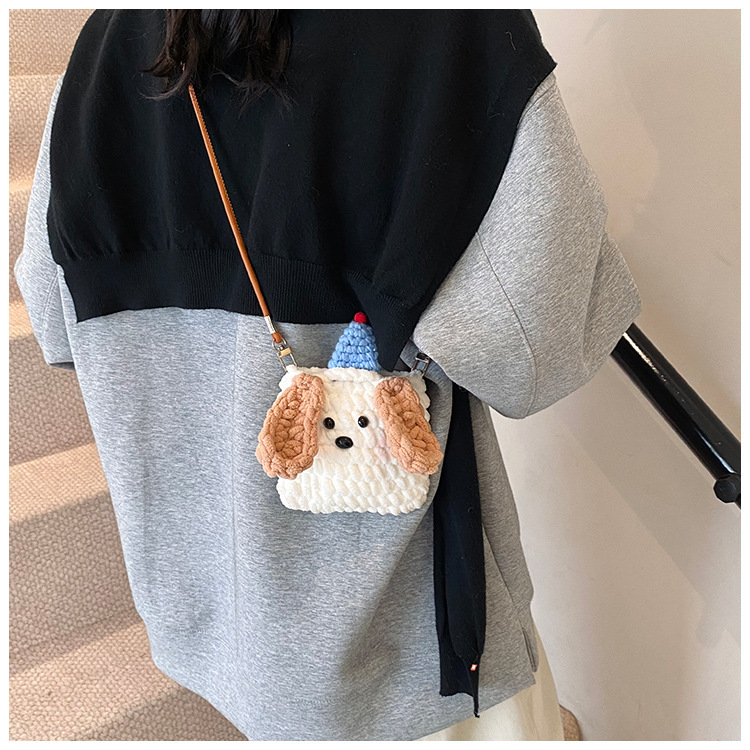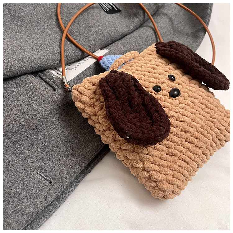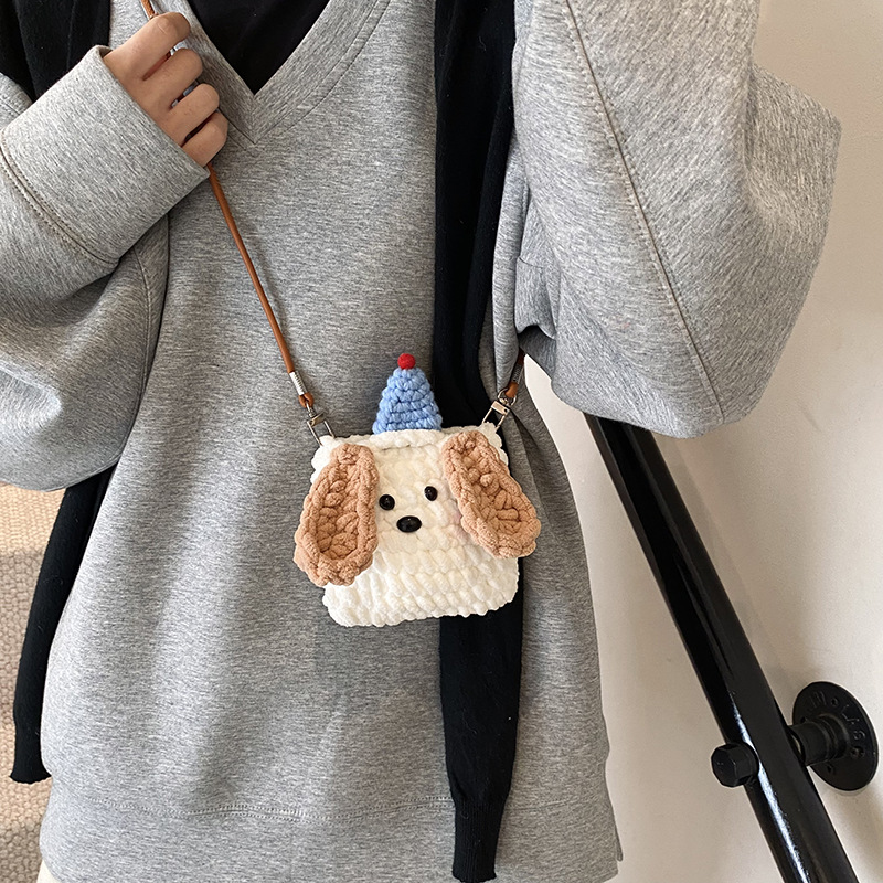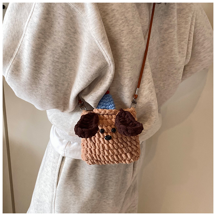 Xiaozhong 새로운 짠 가방 수제 DIY 완성 된 귀여운 강아지 전화 크로스 바디 가방 어린이 동전 지갑스토어 가기
