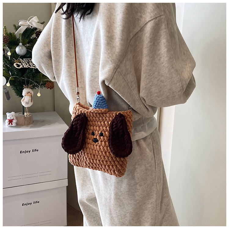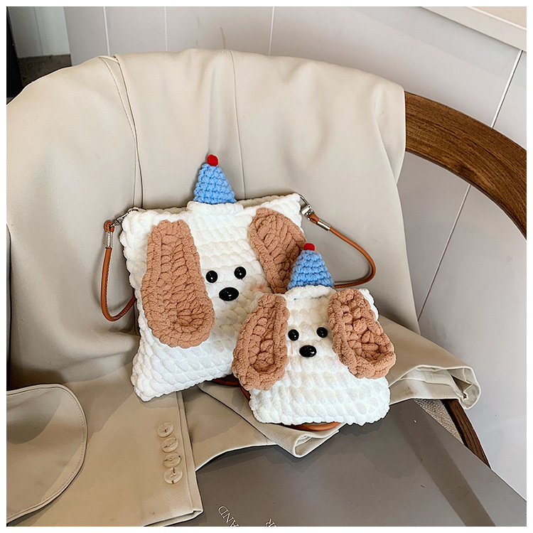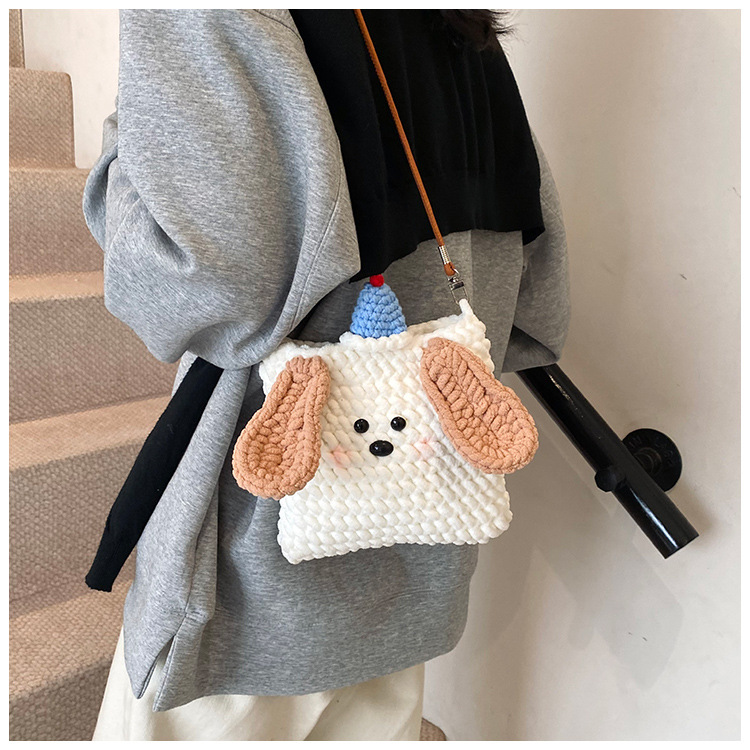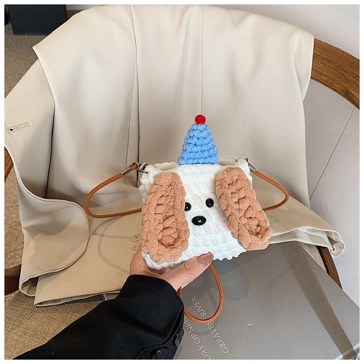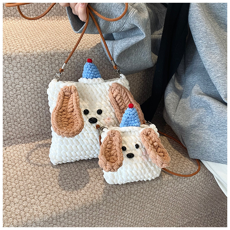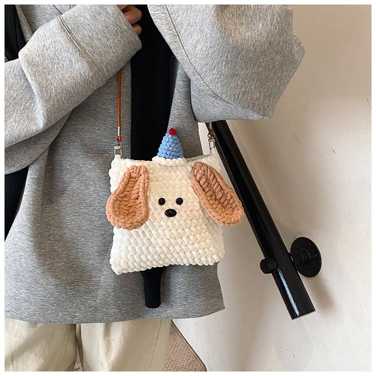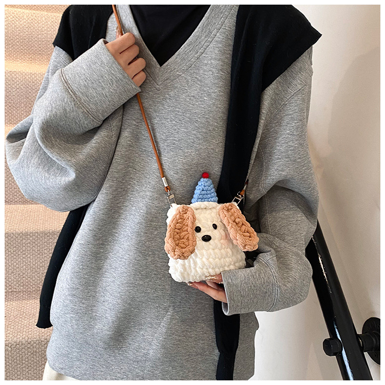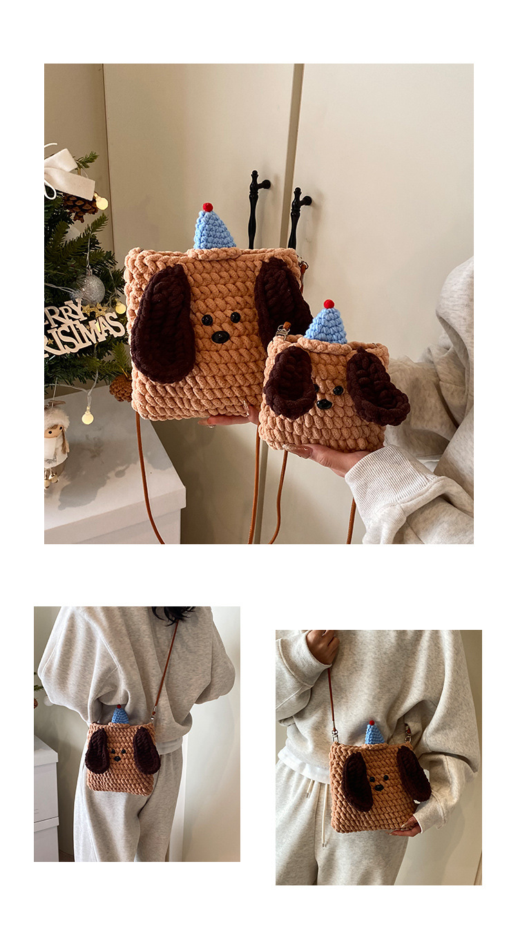 Xiaozhong 새로운 짠 가방 수제 DIY 완성 된 귀여운 강아지 전화 크로스 바디 가방 어린이 동전 지갑스토어 가기
