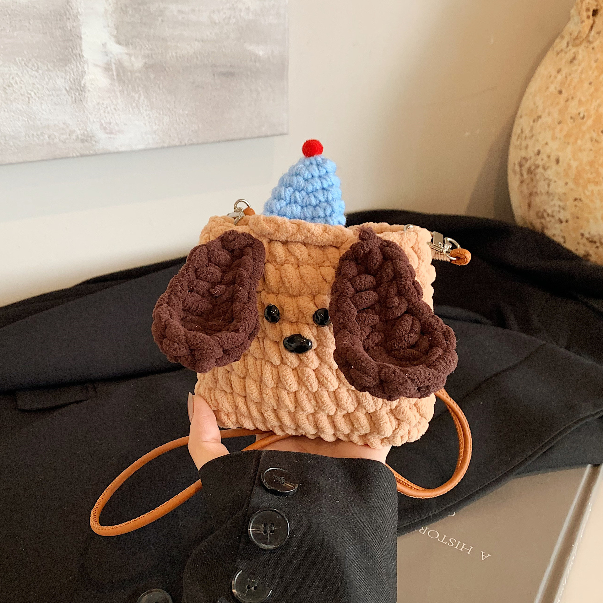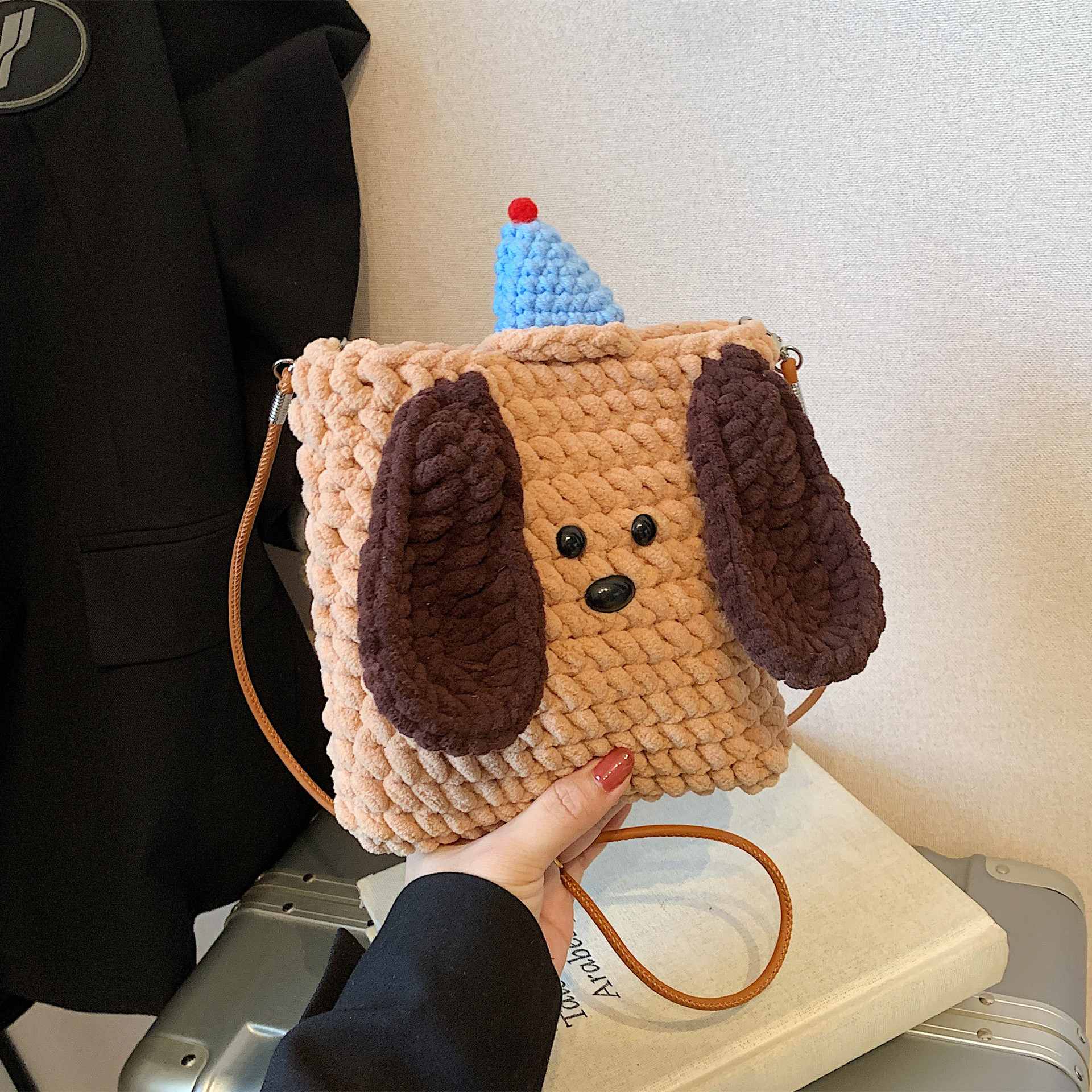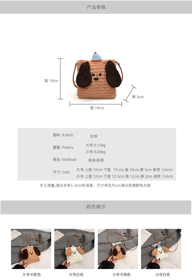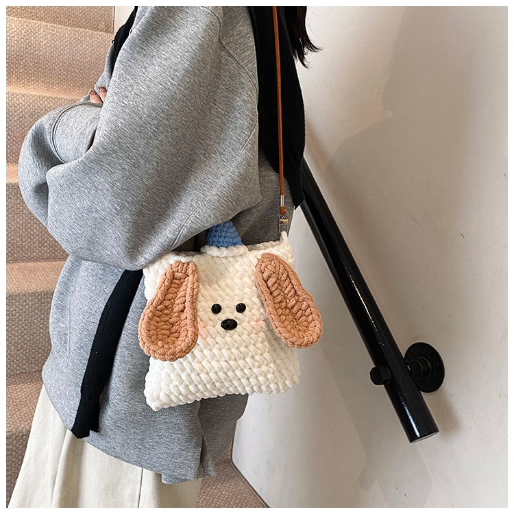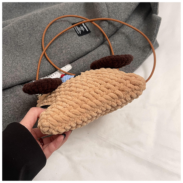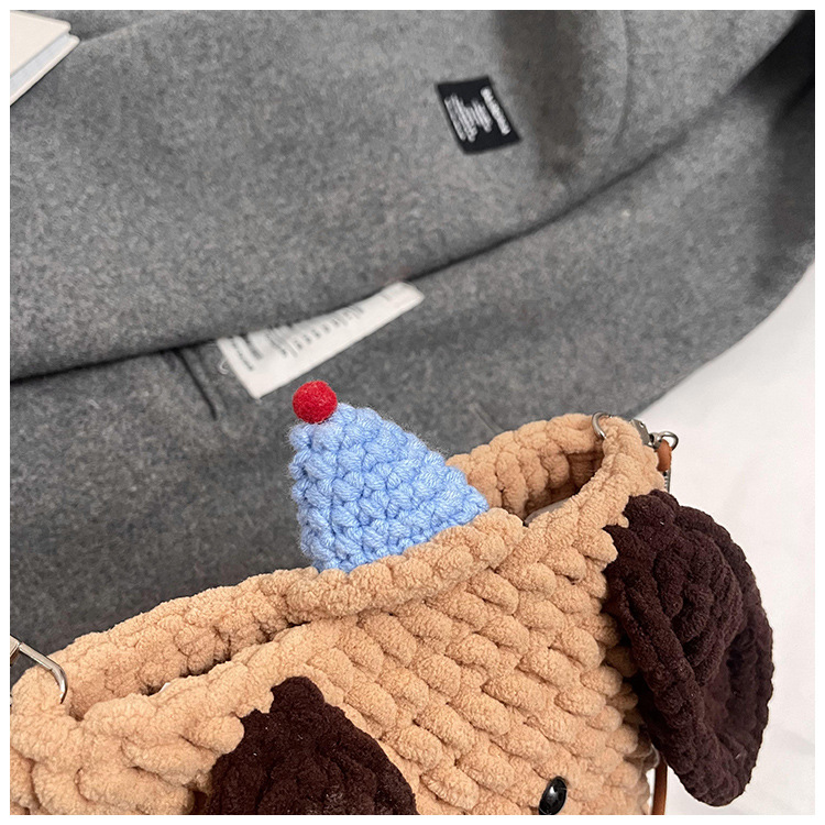 Xiaozhong 새로운 짠 가방 수제 DIY 완성 된 귀여운 강아지 전화 크로스 바디 가방 어린이 동전 지갑스토어 가기