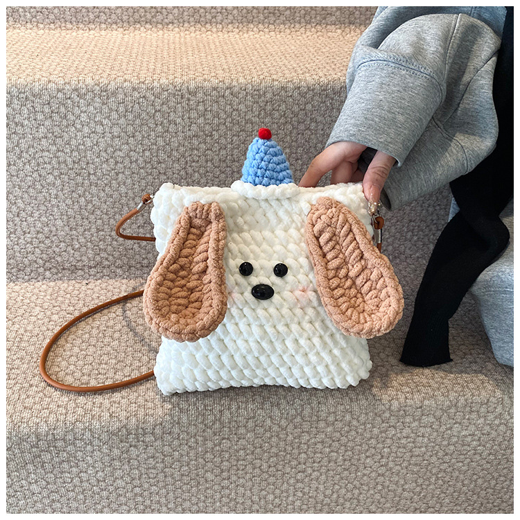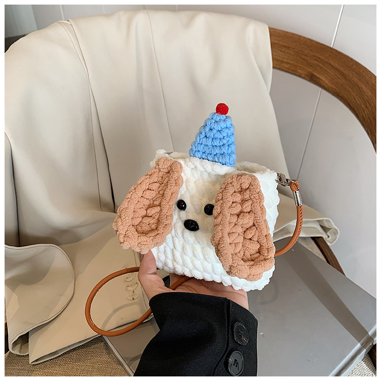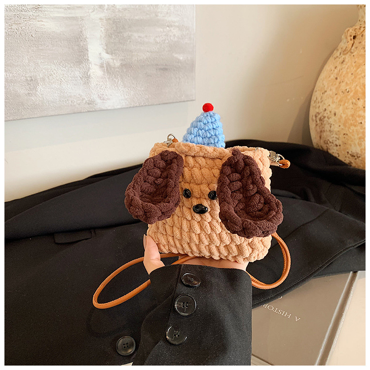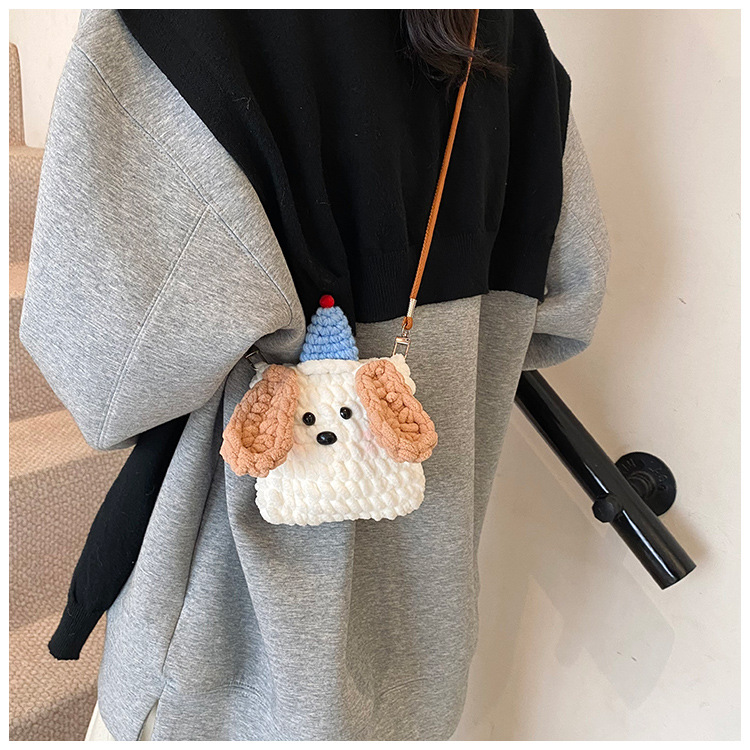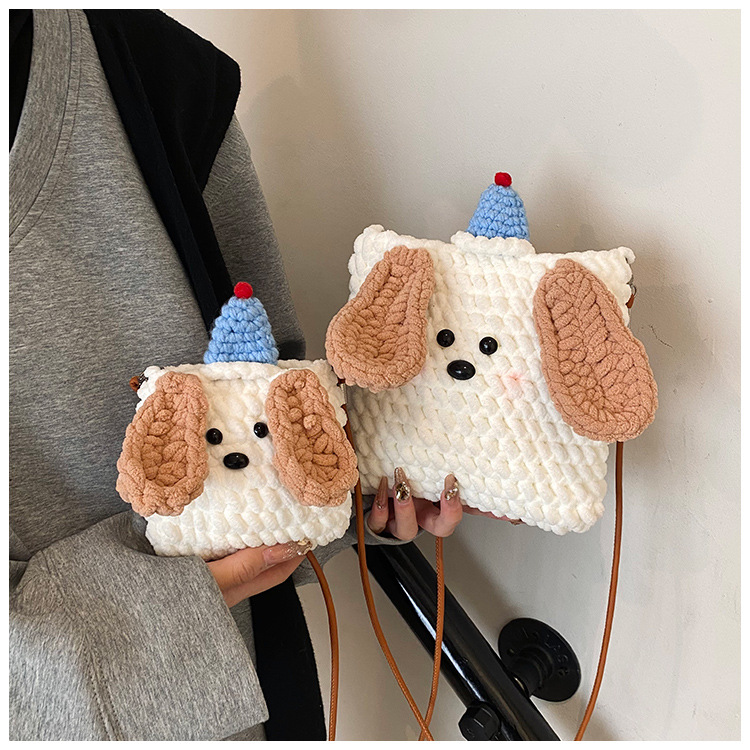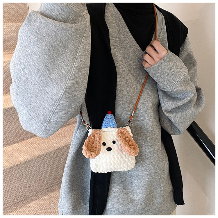 Xiaozhong 새로운 짠 가방 수제 DIY 완성 된 귀여운 강아지 전화 크로스 바디 가방 어린이 동전 지갑