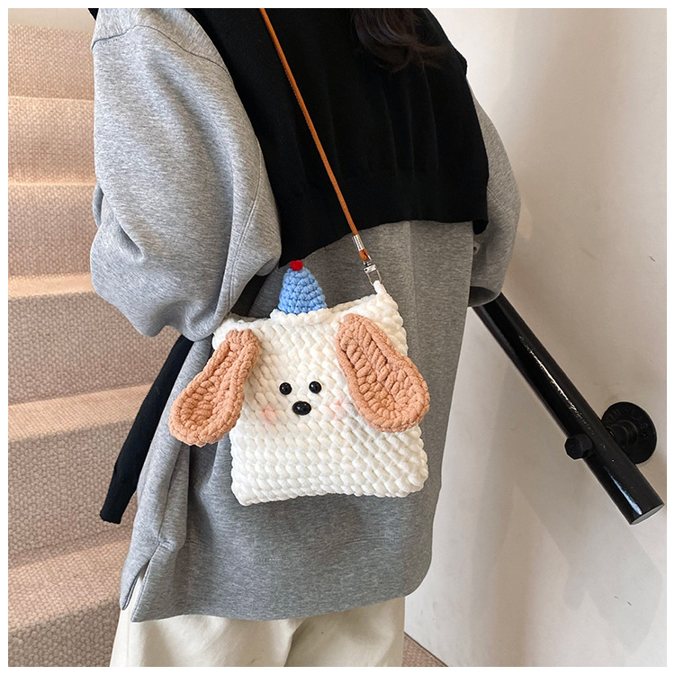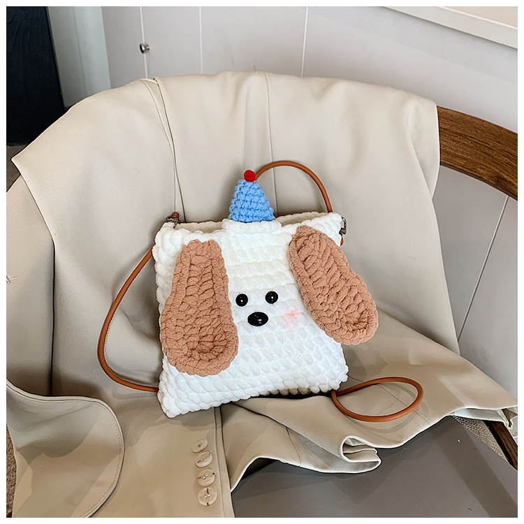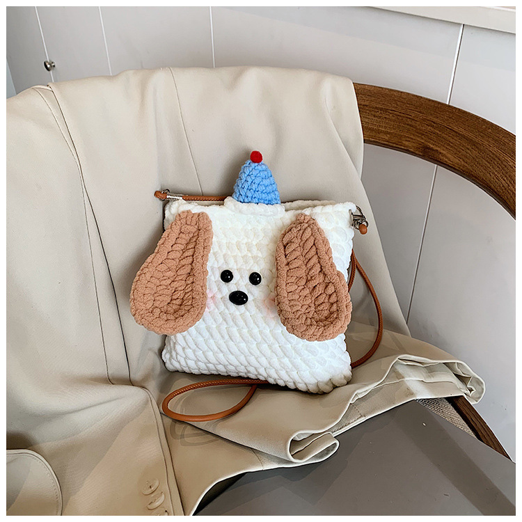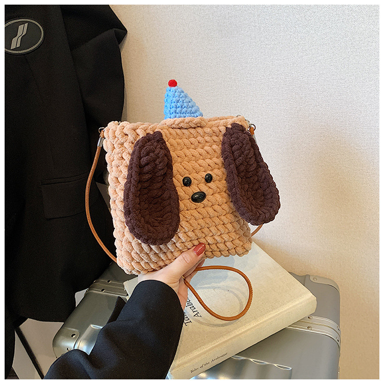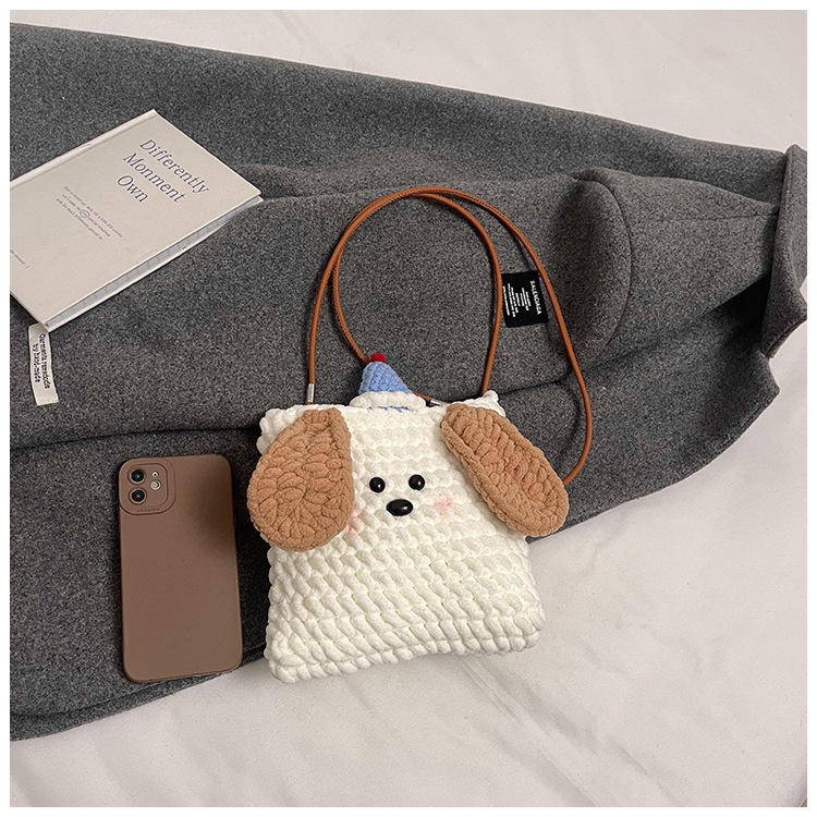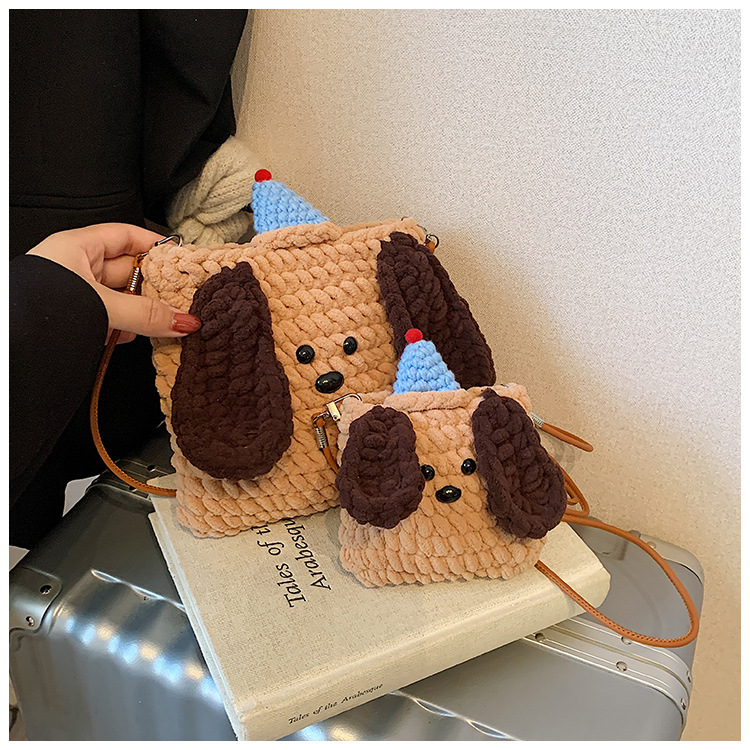 Xiaozhong 새로운 짠 가방 수제 DIY 완성 된 귀여운 강아지 전화 크로스 바디 가방 어린이 동전 지갑