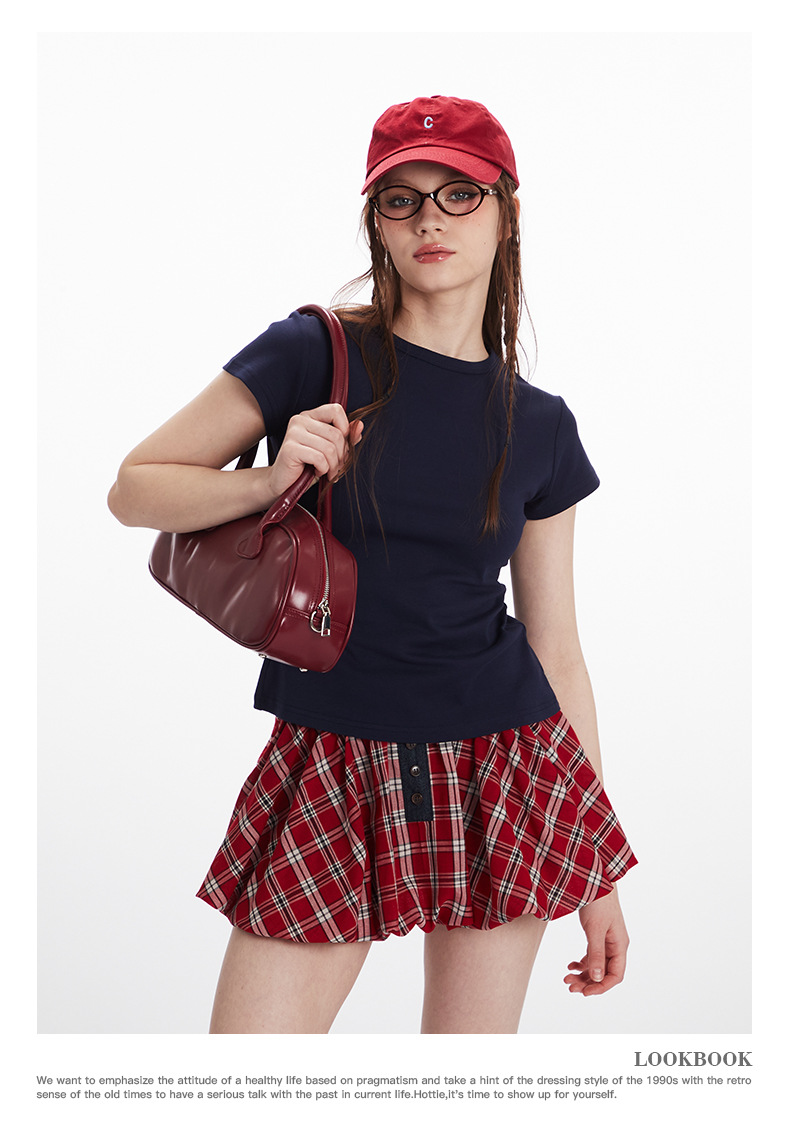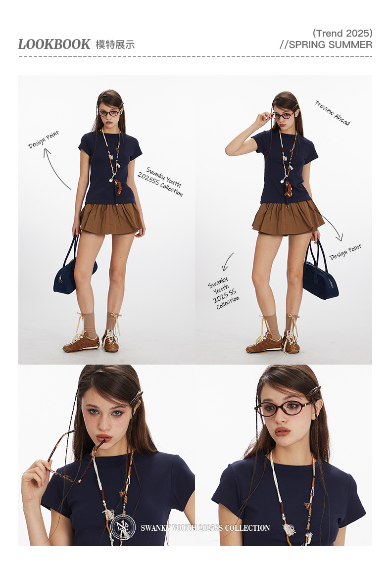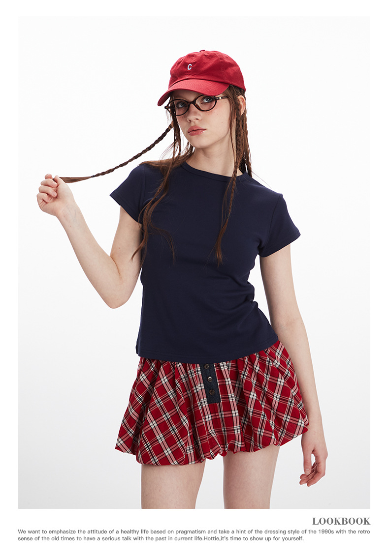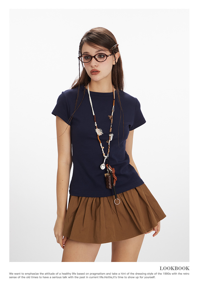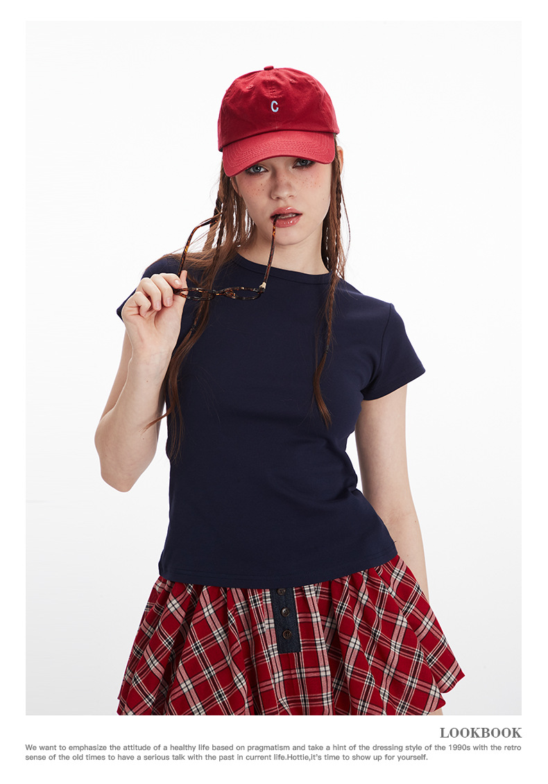 HeyHenry 2025 기본 솔리드 컬러 티셔츠 여성 반팔 슬림 피트 라운드 넥 짧은 오른쪽 어깨 탑 여름스토어 가기