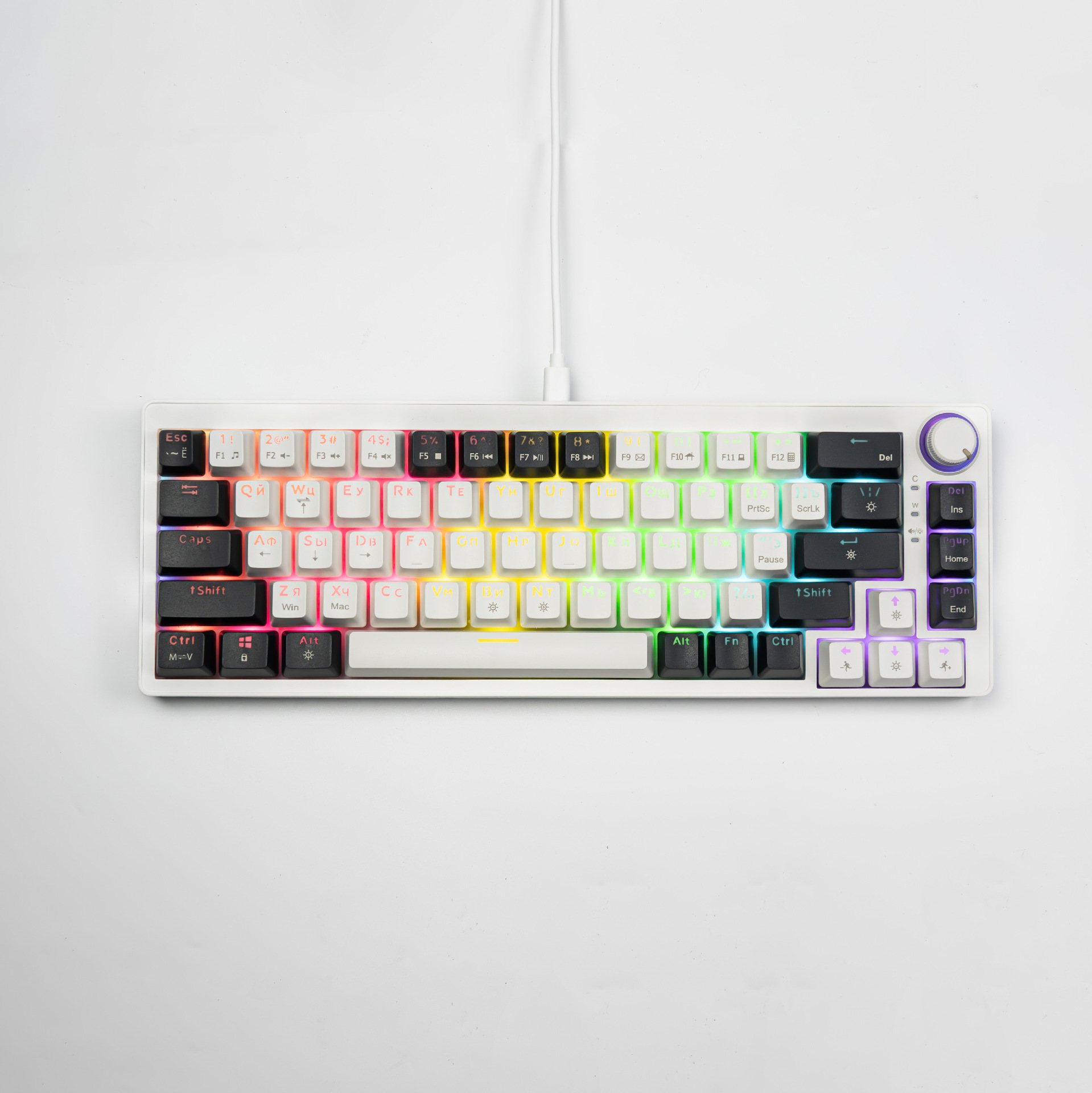 • 68키 2색 포르투갈어/화이트 나이트 크로우 [유선] 혼합 조명 - 사무실 무음 축
