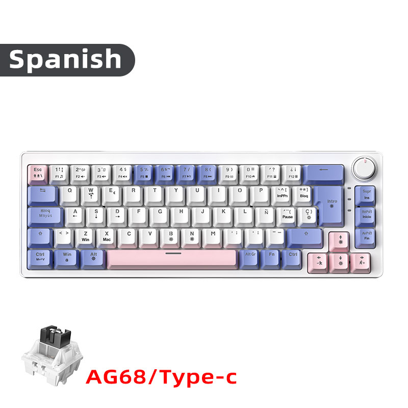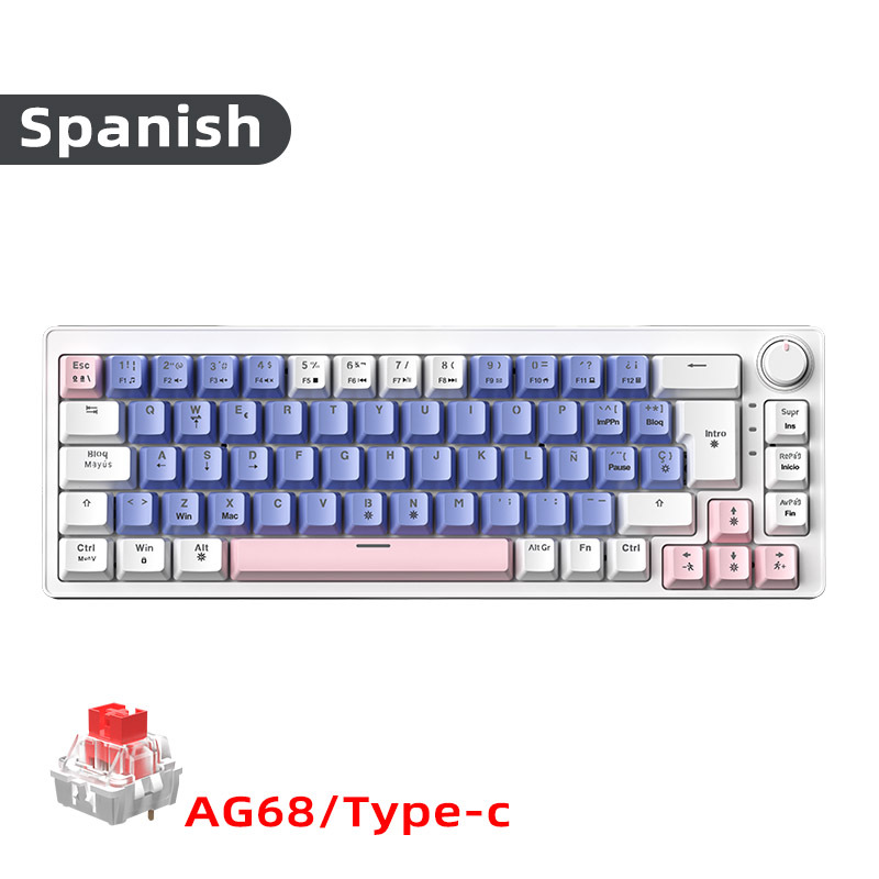 • 68키 2색 스페인어/보라색 및 흰색 [유선] 혼합 밝은 빨간색 축