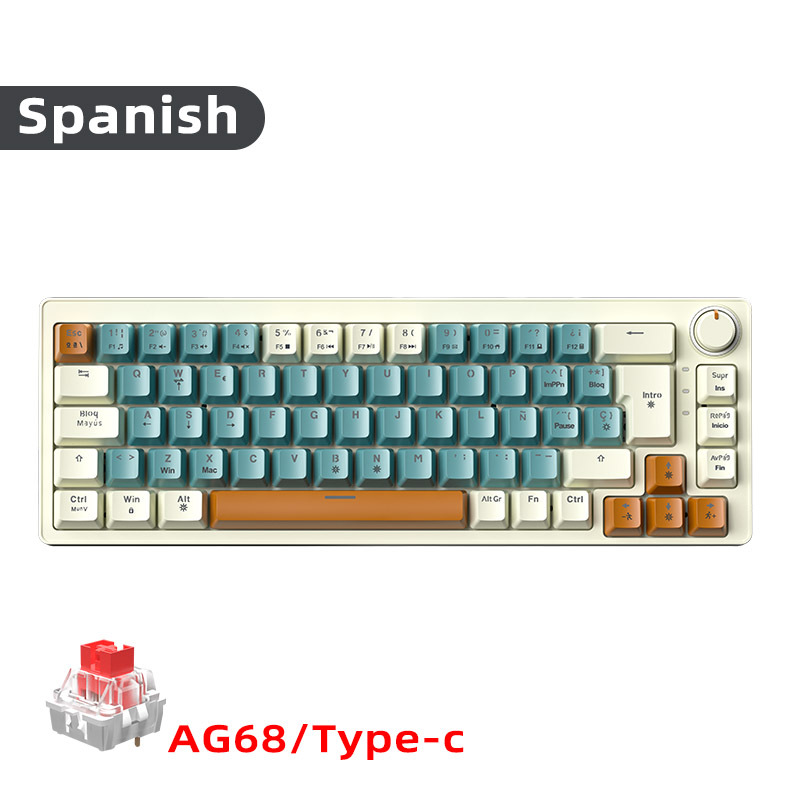 • 68키 2색 스페인어/청록색, 베이지색 및 흰색 [유선] 혼합 밝은 빨간색 축