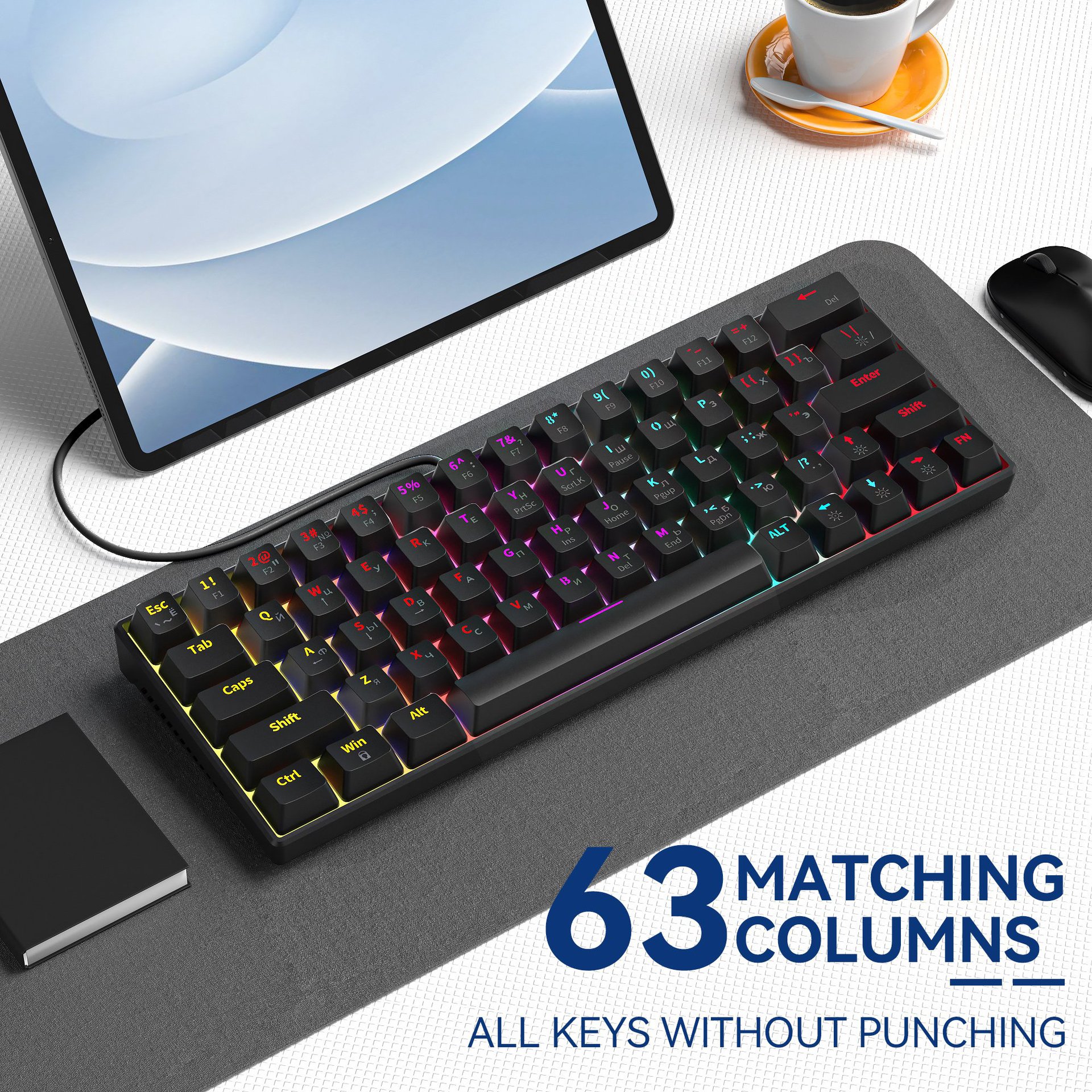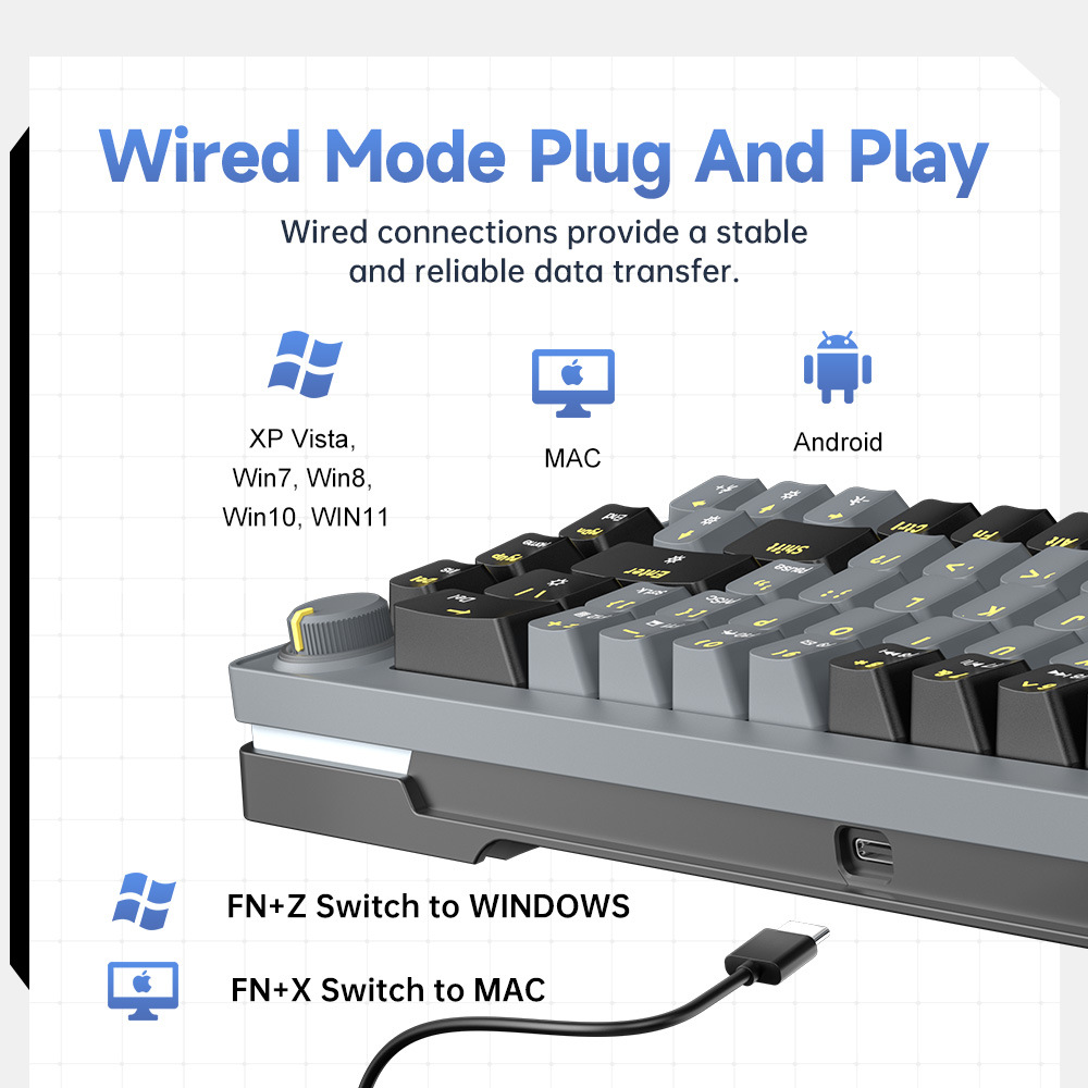 • 68키 2색 스페인어/히아신스 [유선] 혼합 조명 - 사무실 무음 축