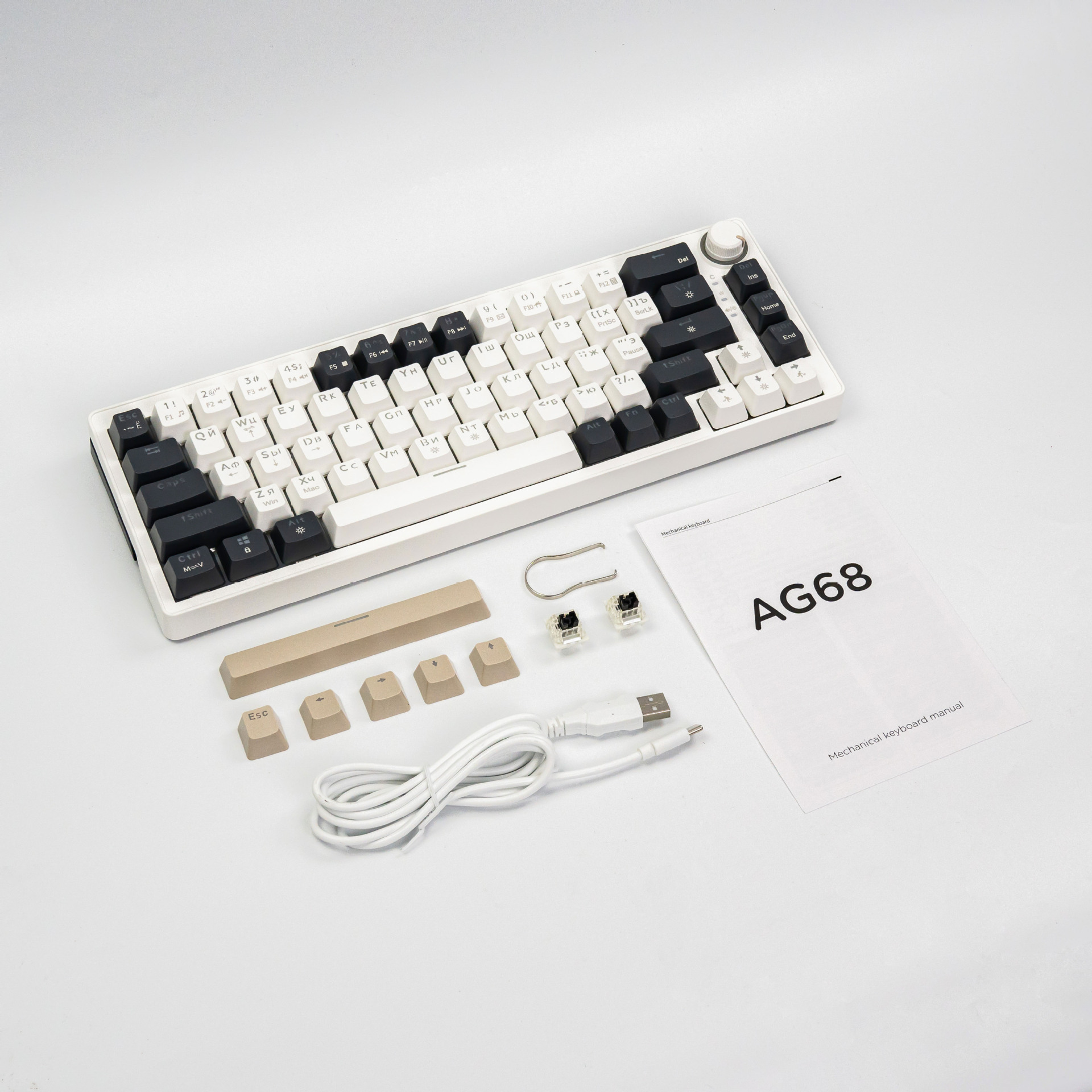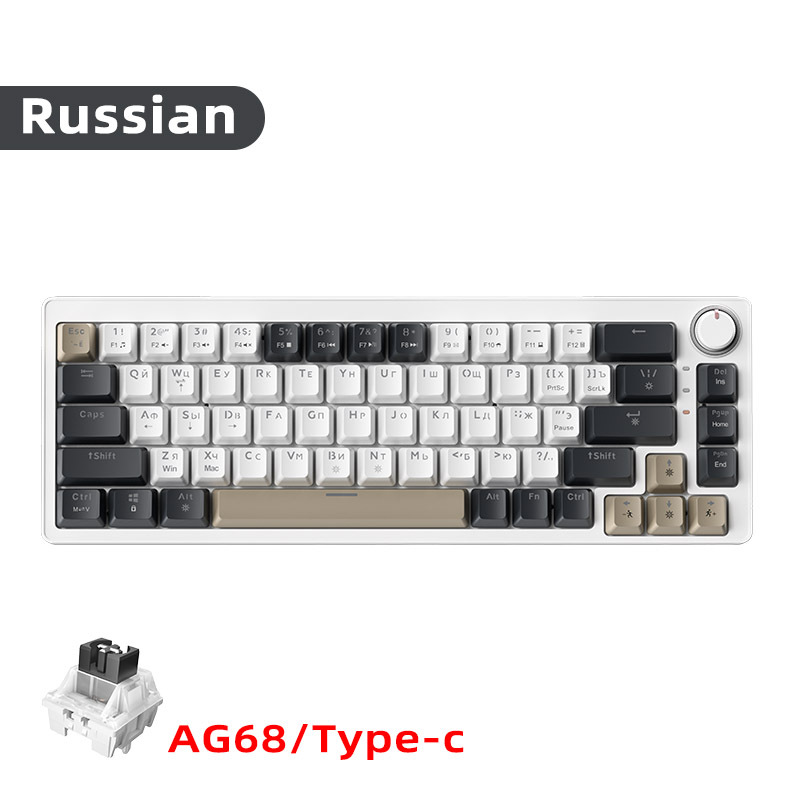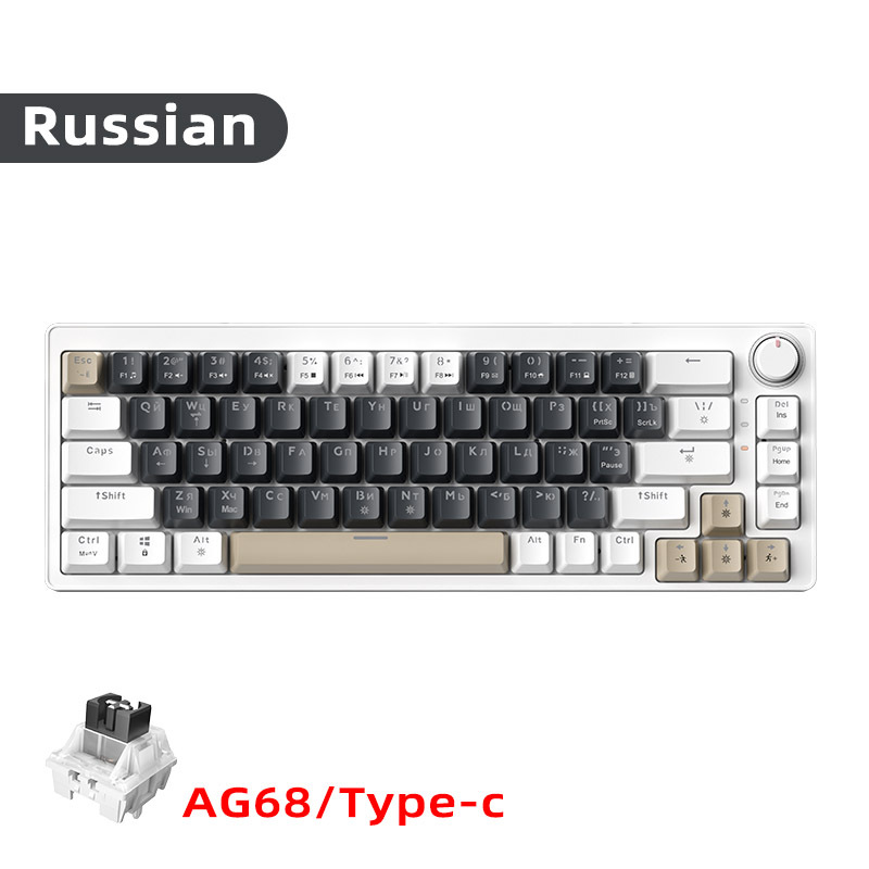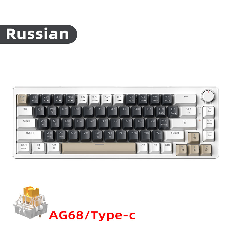 국경 간 러시아어 AG68 유선 기계식 키보드 가스켓 구조 러시아어 68 키 게임 무음 키보드