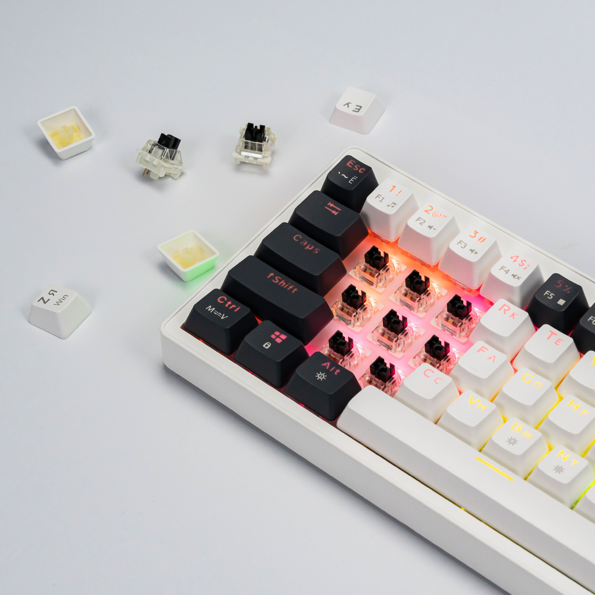 • 68키 2색 러시안/화이트 그레이 [유선] 혼합 연황색 축