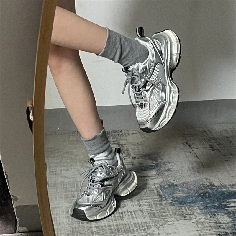 Zhao Lusi 같은 실버 회색 토레 신발 여성의 2025 가을 및 겨울 폭발 모든 경기 두꺼운 밑창 높이 증가 스포츠 캐주얼 신발스토어 가기