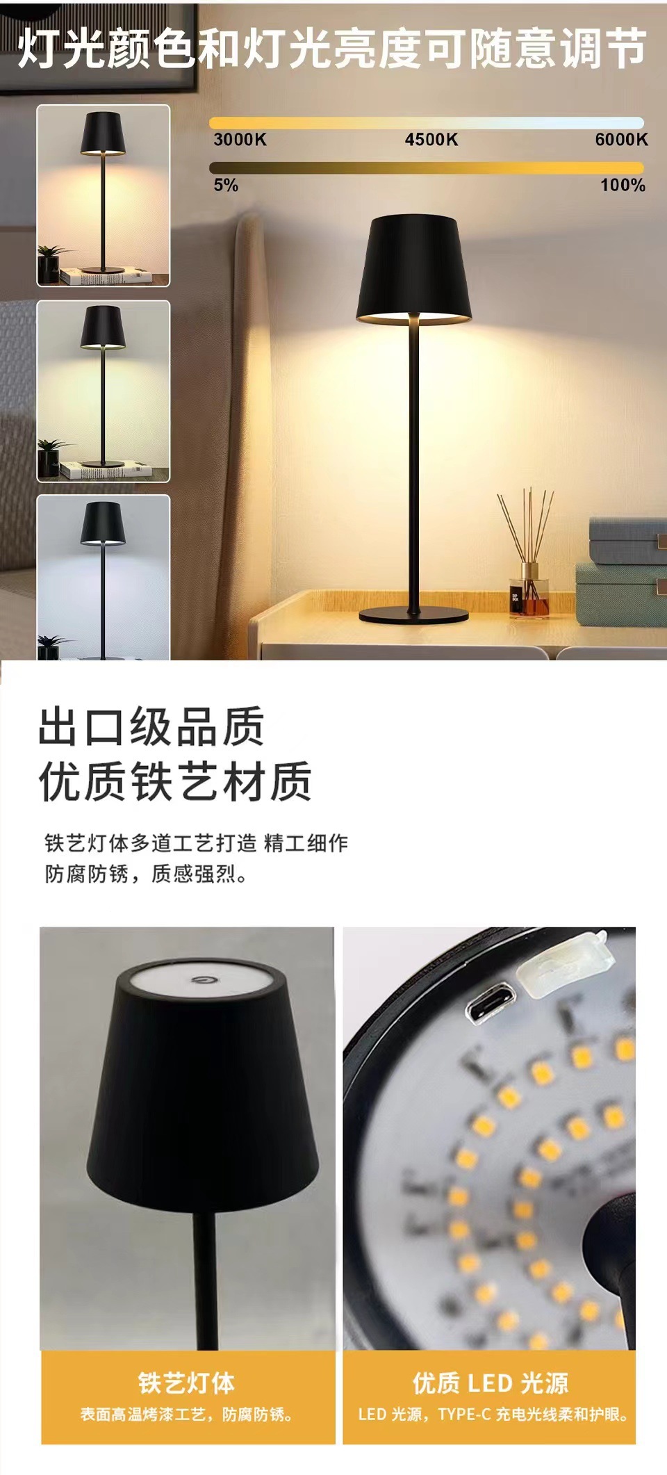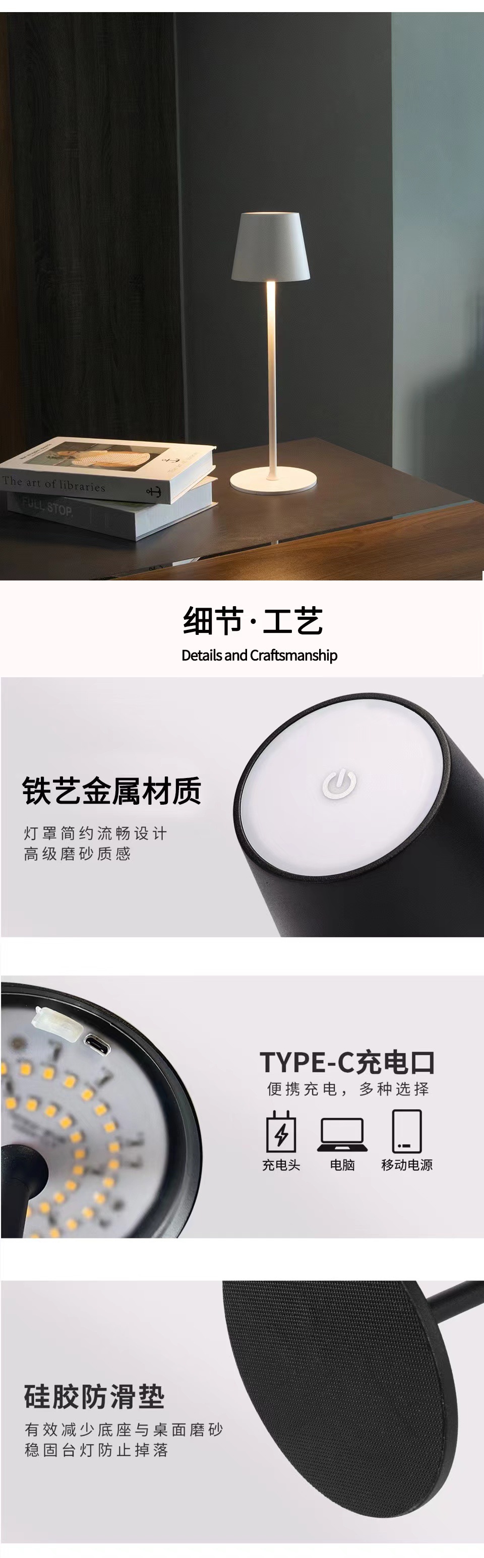 북유럽 충전식 철제 잔 테이블 램프 침실 머리맡 터치 크리에이티브 야간 조명 현대적인 미니멀리스트 거실 야간 조명