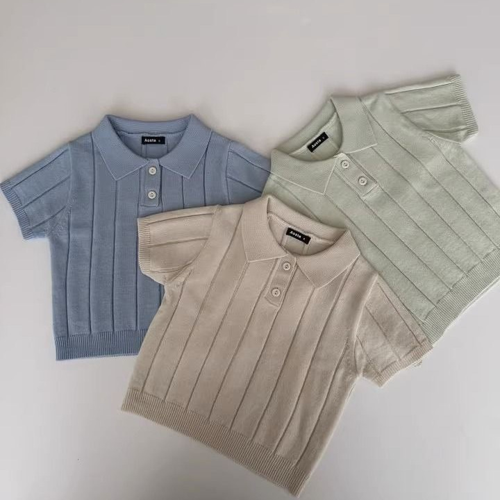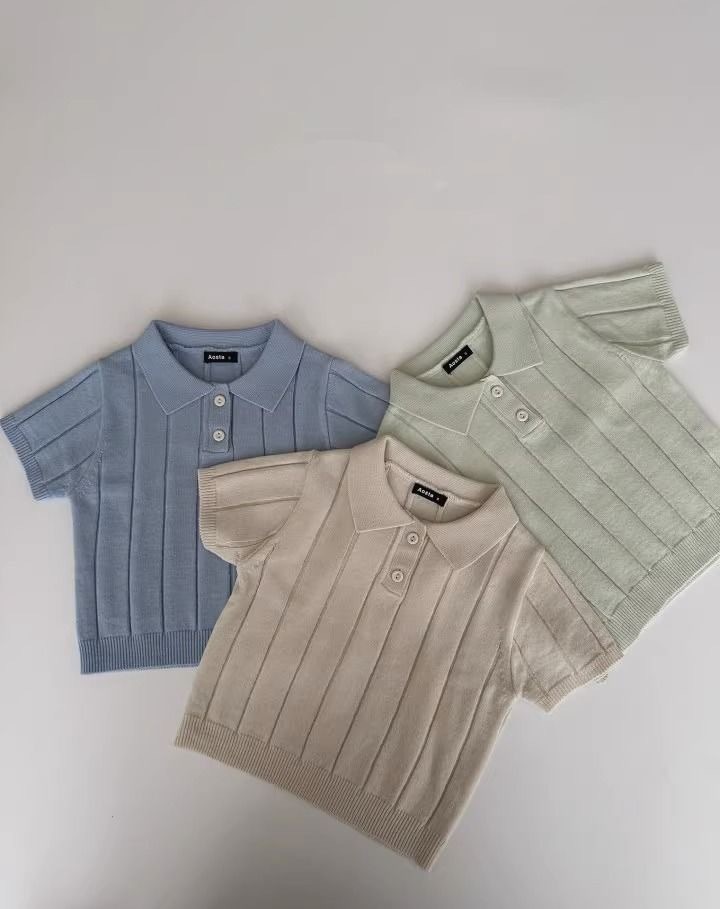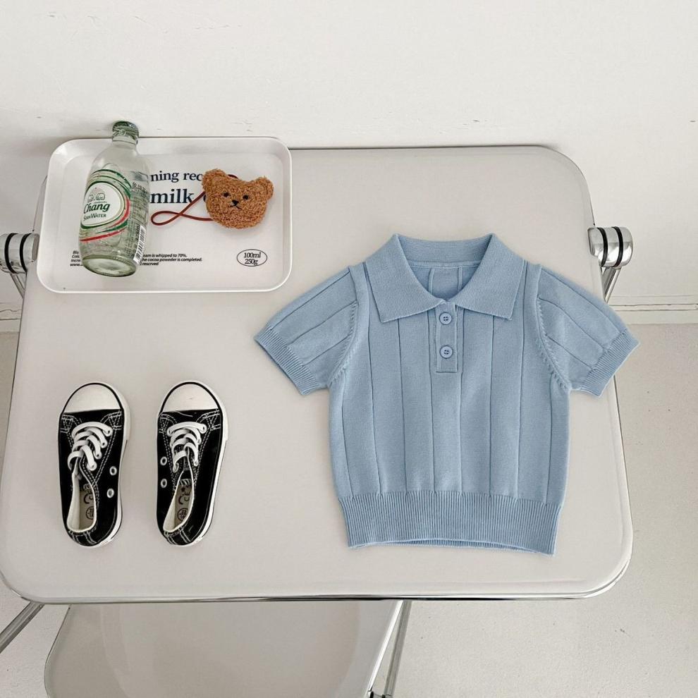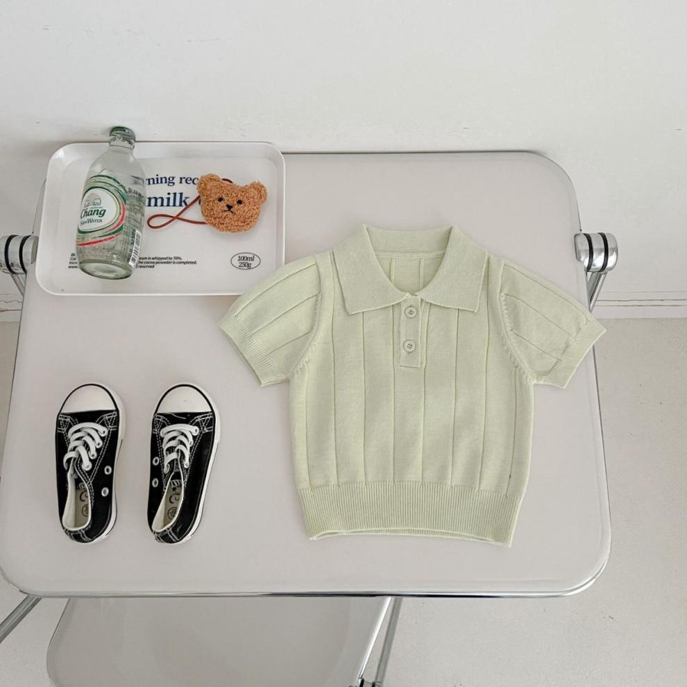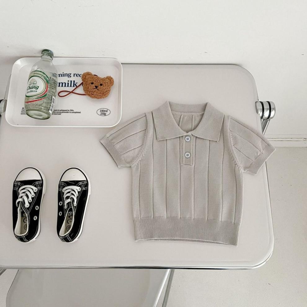 한국판 2024 봄 여름 유아용 아이스 실크 니트 얇은 여름 상의 카라 풀오버 다용도 반팔스토어 가기