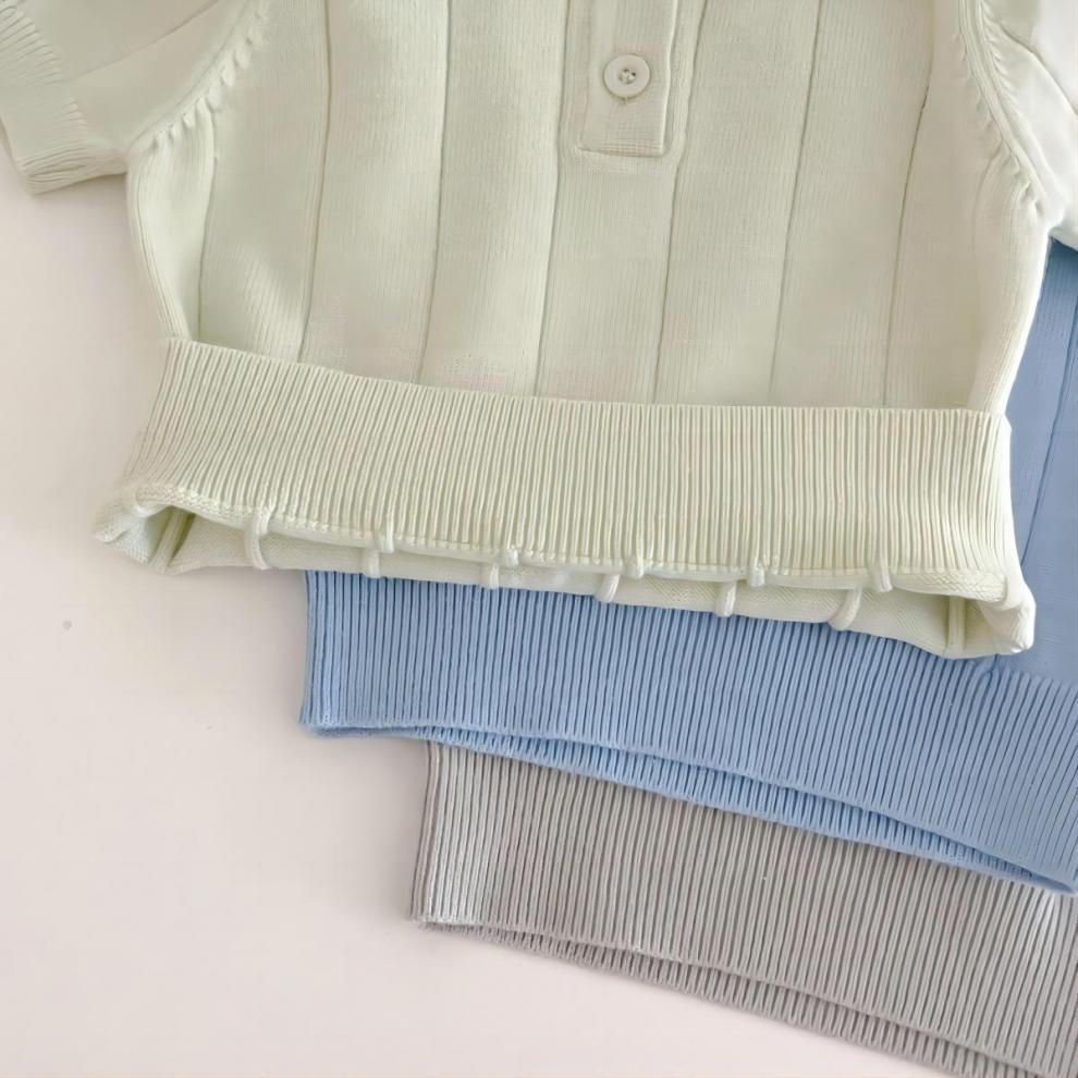 한국판 2024 봄 여름 유아용 아이스 실크 니트 얇은 여름 상의 카라 풀오버 다용도 반팔