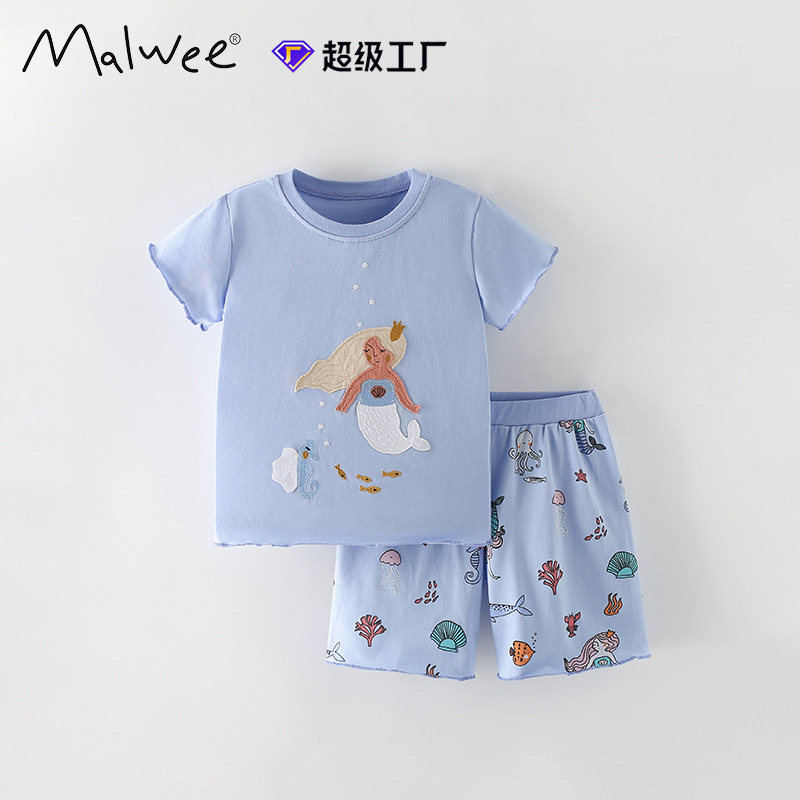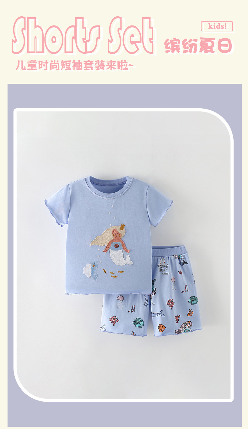 해외 아동복 세트 말위 여름 신상 유럽풍 아동 라운드넥 반팔 반바지 투피스 여아복스토어 가기