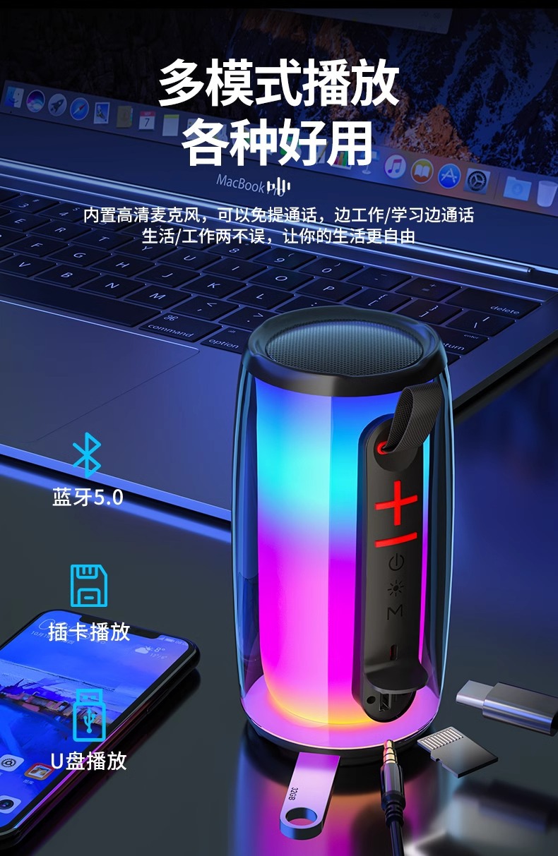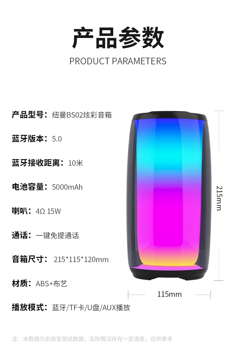뉴먼 BS02 블루투스 스피커 인터넷 축하 다채로운 빛 무선 사운드 높은 음질 서브 우퍼 홈 소형스토어 가기