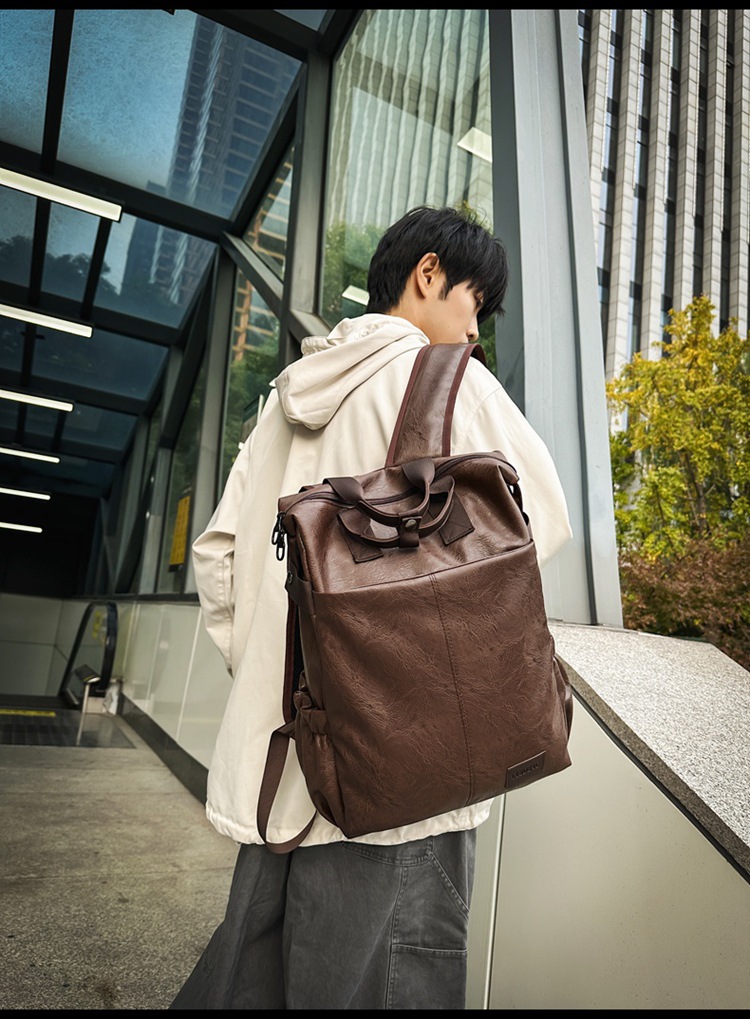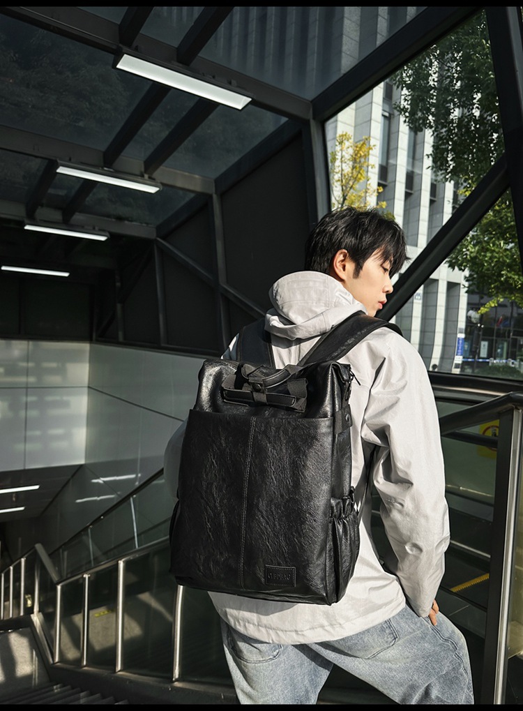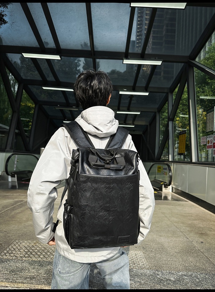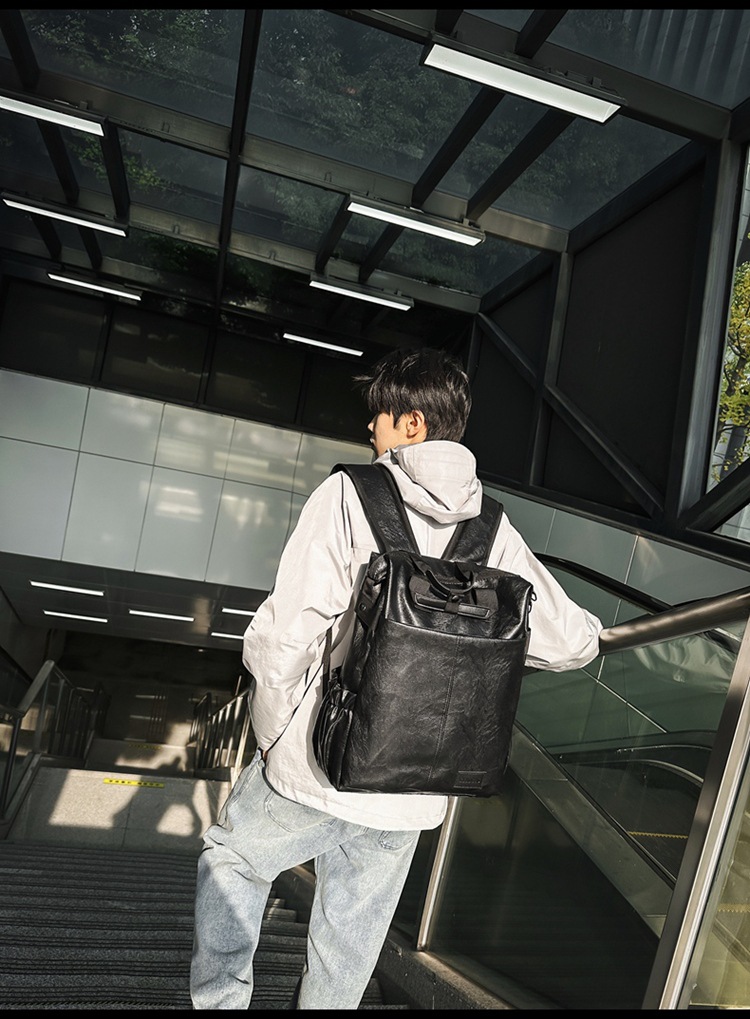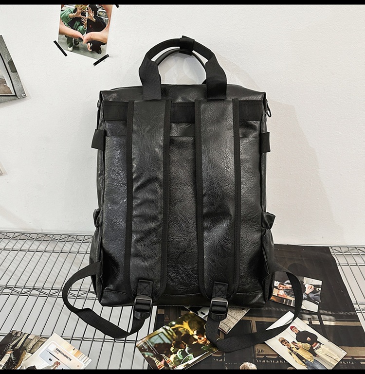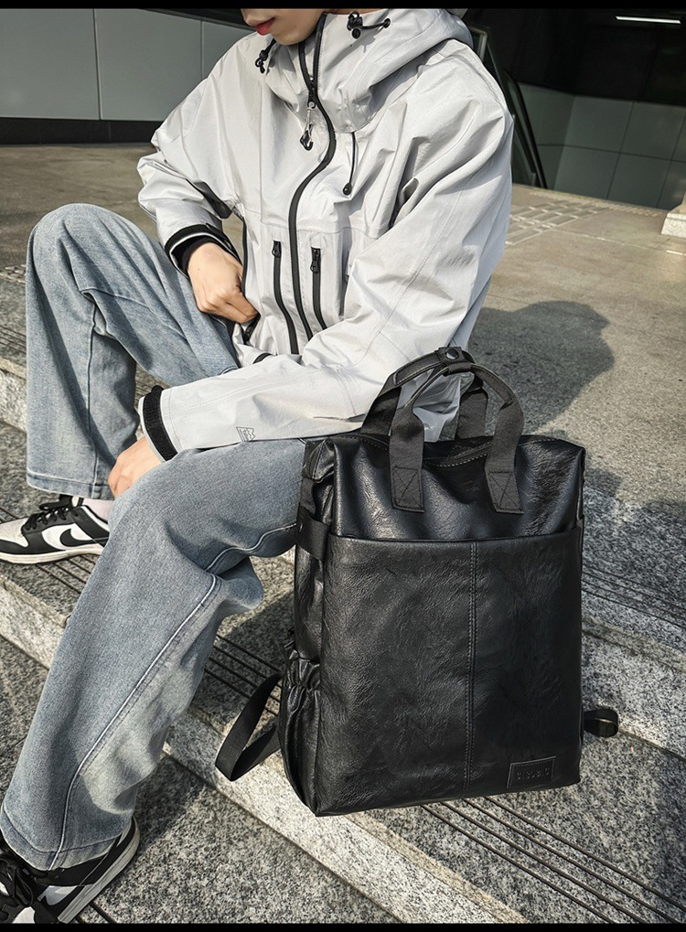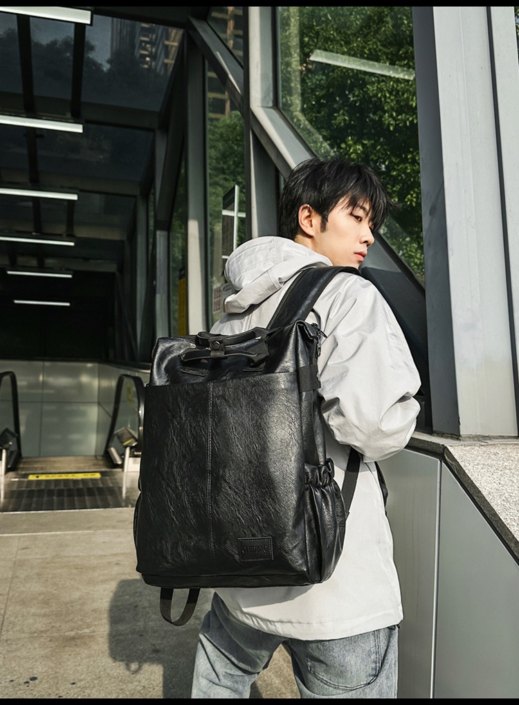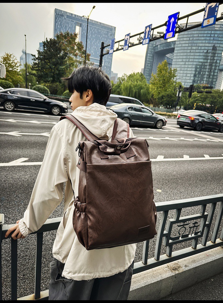 남자의 새로운 스타일 pu 가죽 배낭 유행 캐주얼 여행 휴대용 대학생 어깨 가방 대학 스타일 컴퓨터 학교 가방