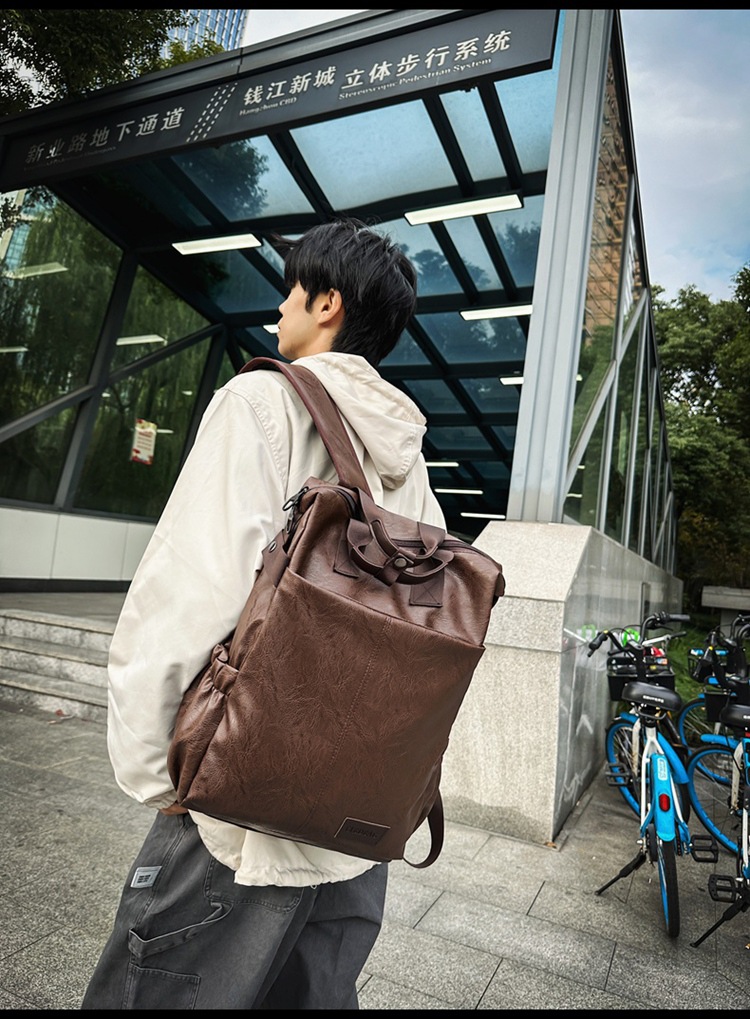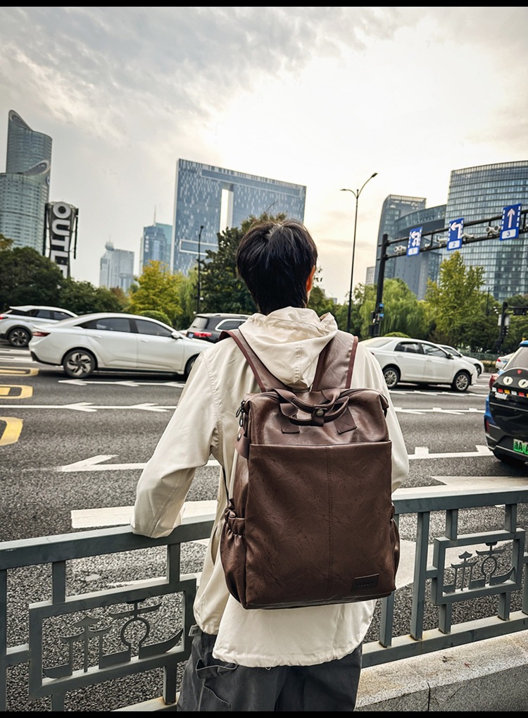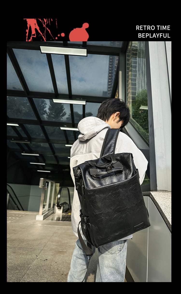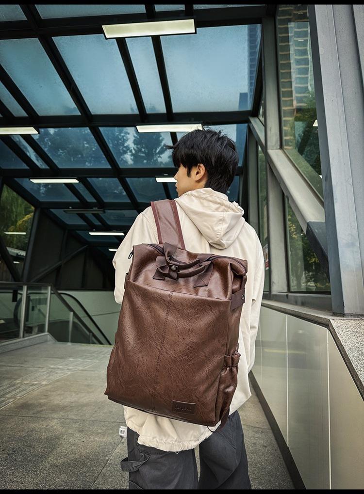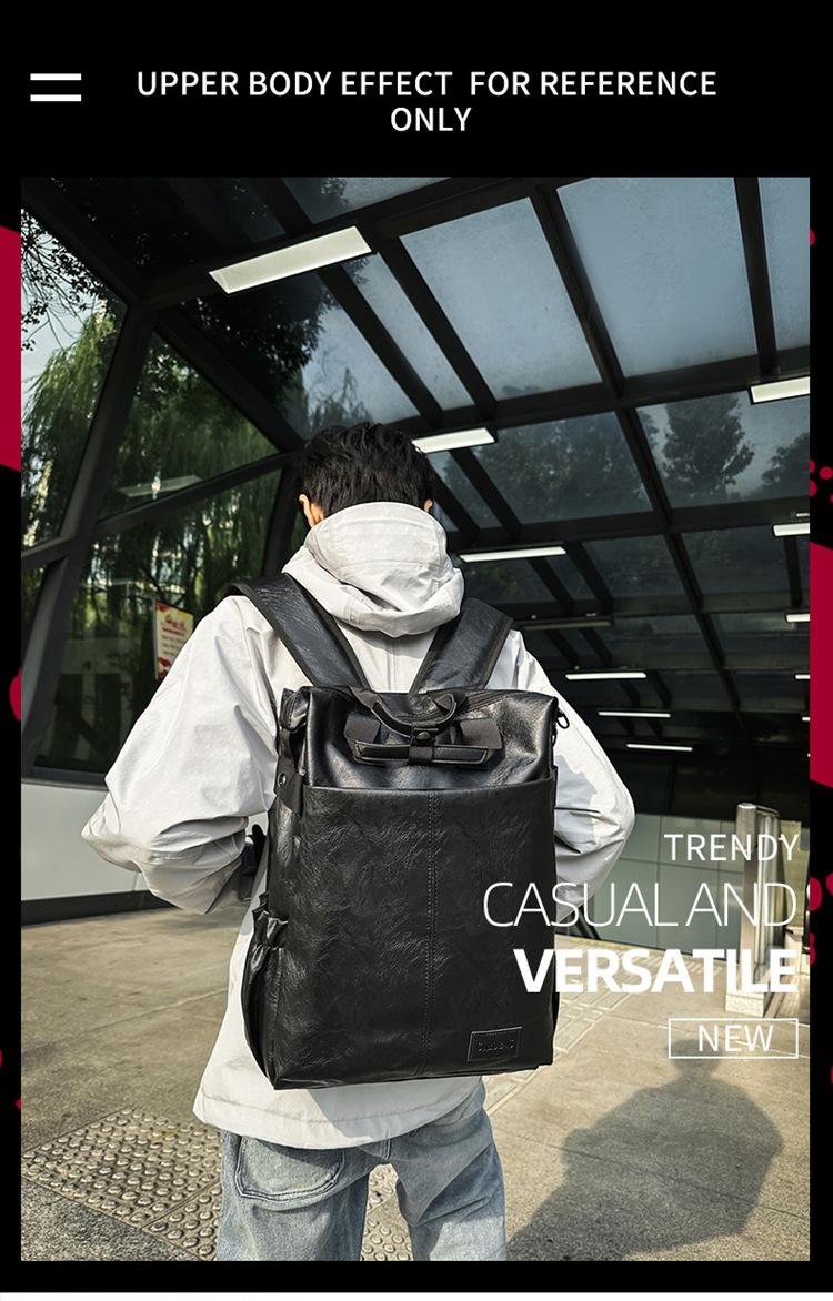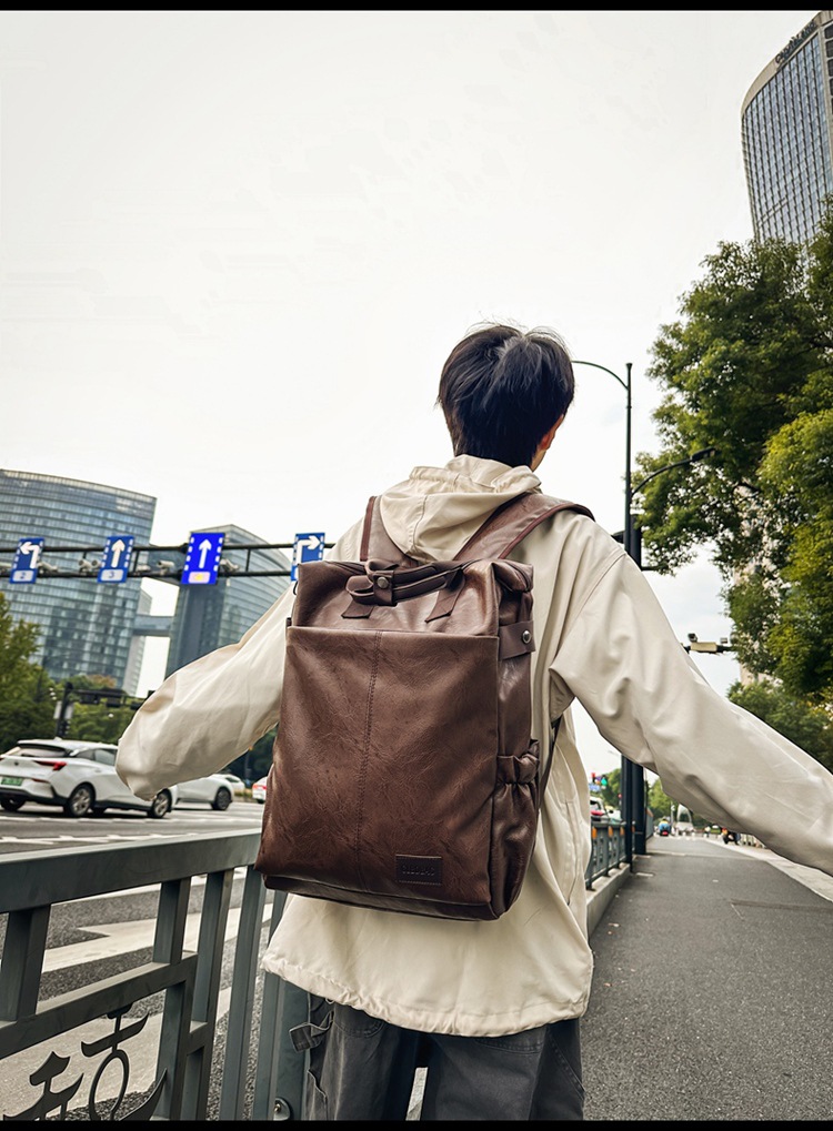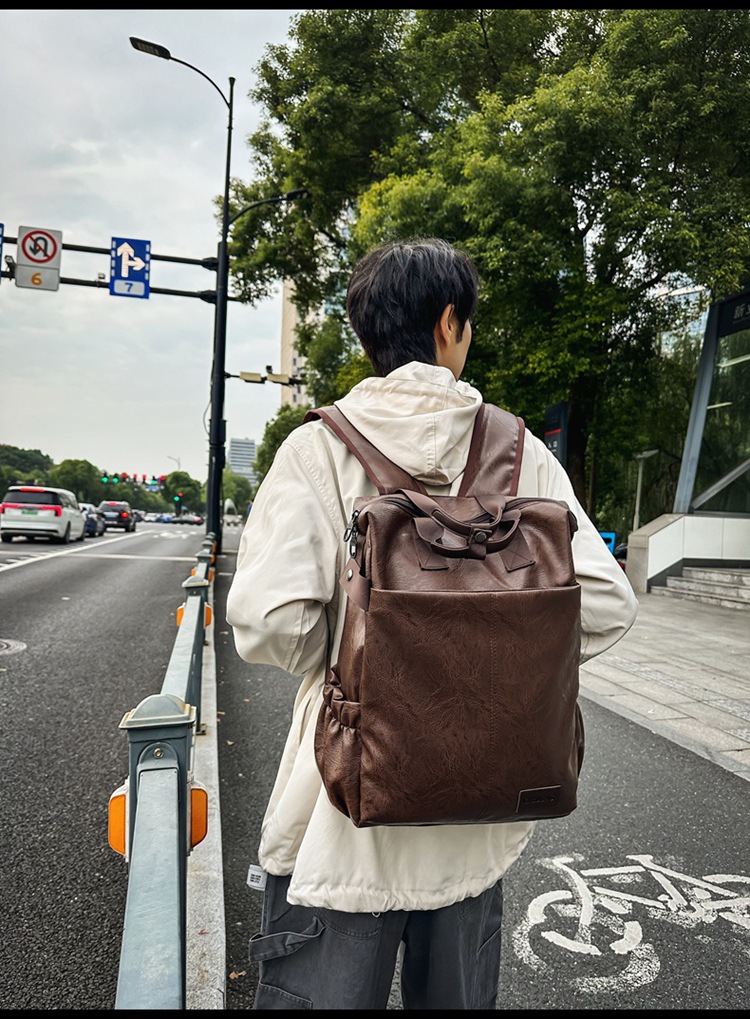 남자의 새로운 스타일 pu 가죽 배낭 유행 캐주얼 여행 휴대용 대학생 어깨 가방 대학 스타일 컴퓨터 학교 가방